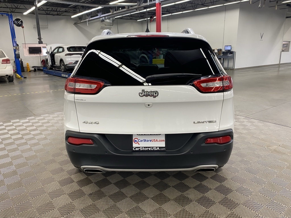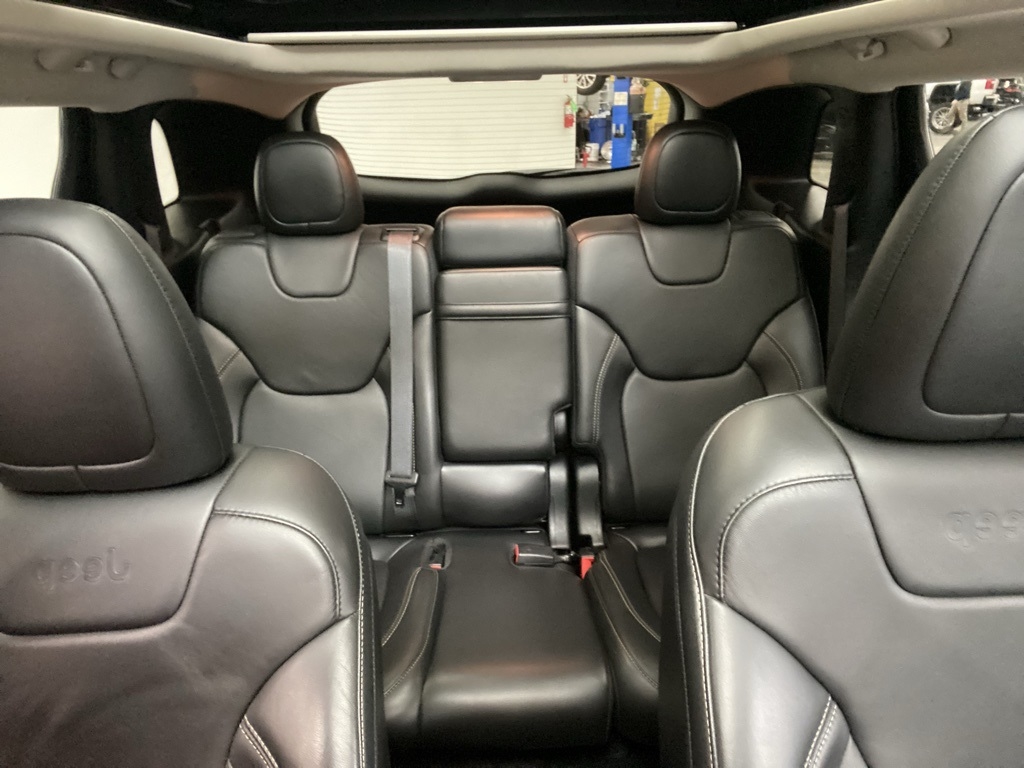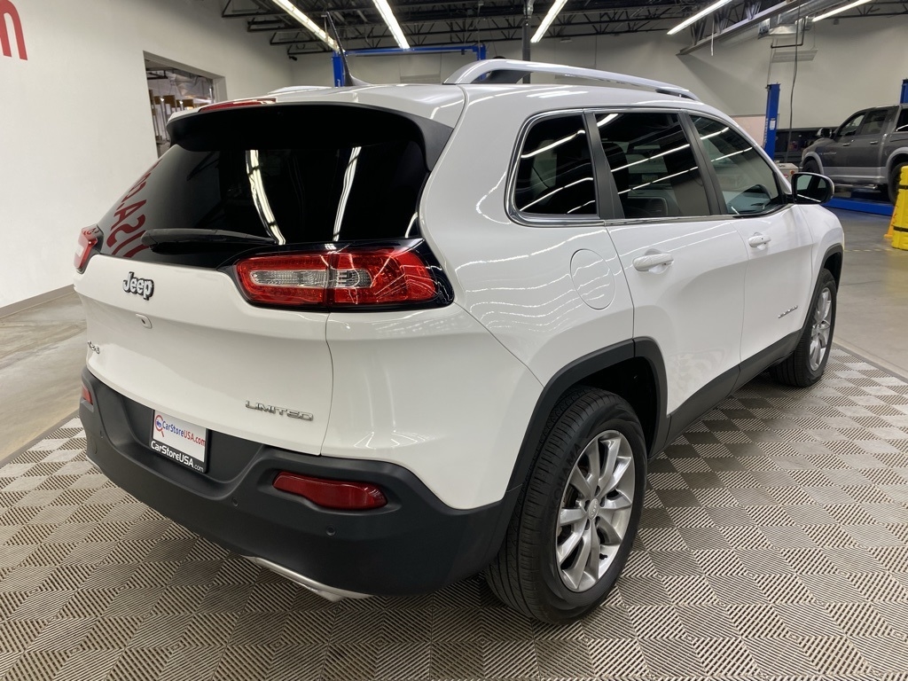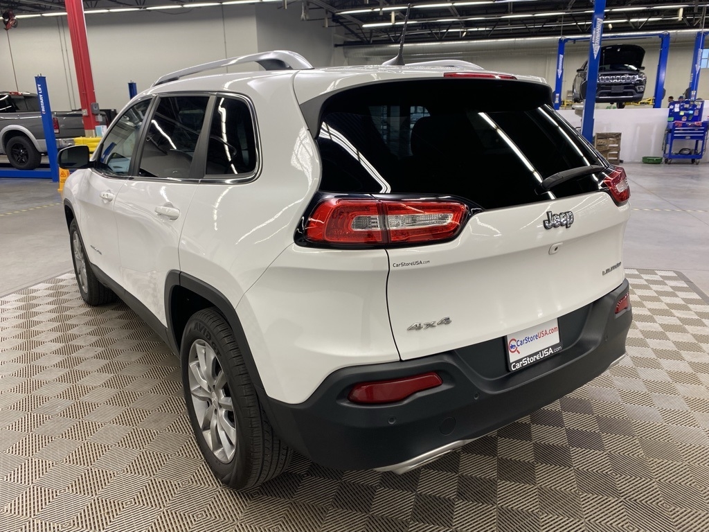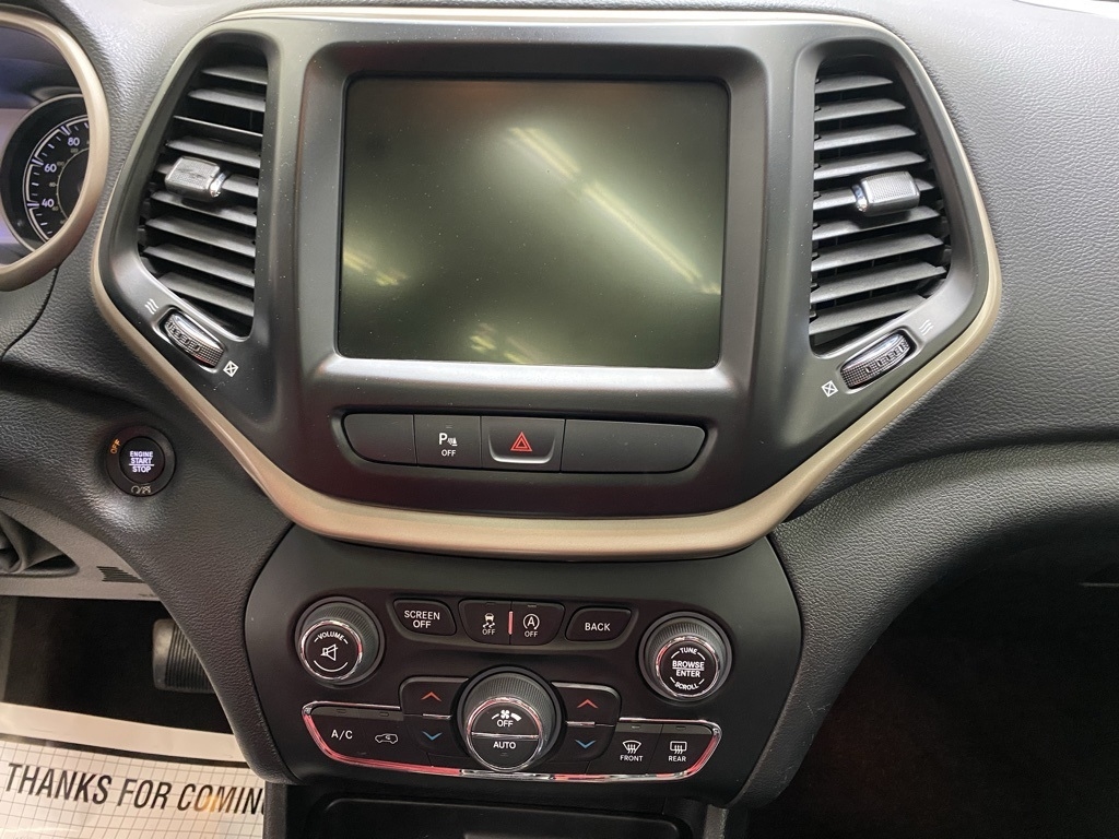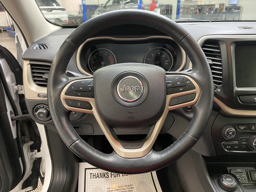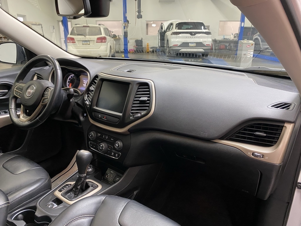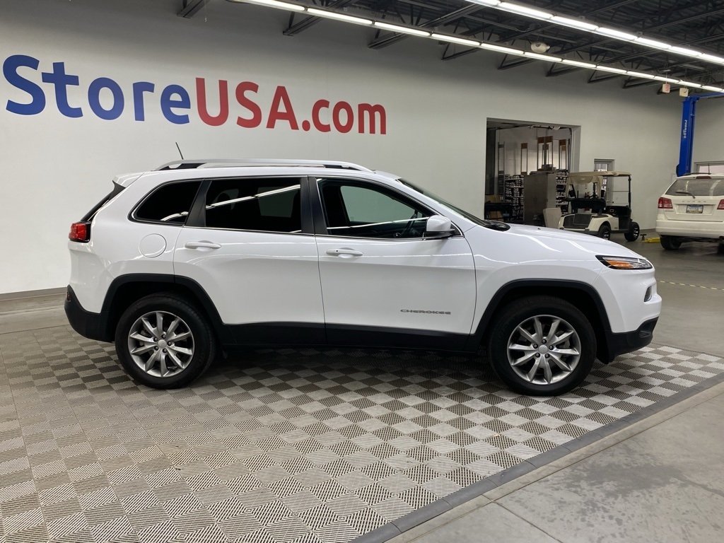 THIS VEHICLE IS EQUIPPED WITH THE FOLLOWING FEATURES AND OPTIONS Quick Order Package 26G, 3.734 Axle Ratio, 4-Wheel Disc Brakes, 6 Speakers, 600 Amp Maintenance Free Battery, 8.4" Touchscreen Display, ABS brakes, Active Grille Shutters, Air Conditioning, Alloy wheels, AM/FM radio: SiriusXM, Anti-whiplash front head restraints, Auto-dimming Rear-View mirror, Automatic temperature control, Auxiliary Transmission Oil Cooler, Brake assist, Bumpers: body-color, Compass, Delay-off headlights, Driver door bin, Driver vanity mirror, Dual front impact airbags, Dual front side impact airbags, Electronic Range Select, Electronic Stability Control, Emergency communication system: Uconnect Access, Engine Oil Cooler, Exterior Mirrors Courtesy Lamps, Exterior Mirrors w/Supplemental Signals, Four wheel independent suspension, Front anti-roll bar, Front Bucket Seats, Front Center Armrest, Front dual zone A/C, Front fog lights, Front License Plate Bracket, Front reading lights, Fully automatic headlights, Garage door transmitter, GPS Antenna Input, Heated door mirrors, Heated front seats, Heated steering wheel, High intensity discharge headlights: Bi-Xenon, Illuminated entry, Integrated Voice Command w/Bluetooth, Knee airbag, Leather Shift Knob, Leather Trimmed Bucket Seats, Low tire pressure warning, Normal Duty Suspension, Occupant sensing airbag, Outside temperature display, Overhead airbag, Overhead console, Panic alarm, ParkView Rear Back-Up Camera, Passenger door bin, Passenger vanity mirror, Power door mirrors, Power driver seat, Power Front/Fixed Rear Full Sunroof, Power Liftgate, Power steering, Power windows, Radio data system, Radio: Uconnect 3C w/8.4" Display, Rear anti-roll bar, Rear reading lights, Rear seat center armrest, Rear side impact airbag, Rear window defroster, Rear window wiper, Remote keyless entry, Roof rack: rails only, Security system, SiriusXM Satellite Radio, Speed control, Speed-sensing steering, Split folding rear seat, Spoiler, Steering wheel mounted audio controls, Tachometer, Telescoping steering wheel, Tilt steering wheel, Traction control, Trip computer, Turn signal indicator mirrors, Uconnect Access, Variably intermittent wipers, Voltmeter, and Wheels: 18" x 7" Painted Aluminum. Clean CARFAX. Bright White Clearcoat 2018 Jeep Cherokee Limited 4WD 9-Speed 948TE Automatic 3.2L V6