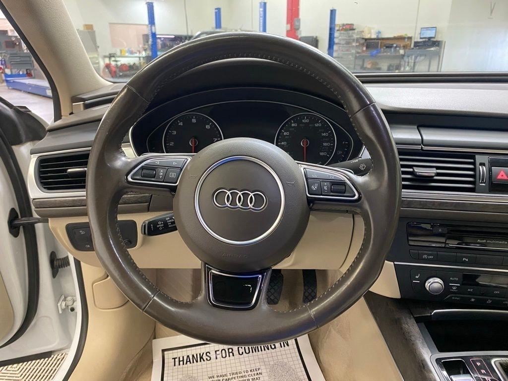 THIS VEHICLE IS EQUIPPED WITH THE FOLLOWING FEATURES AND OPTIONS 19" Sport Package (Black Cloth Headliner, Sport Suspension, and Wheels: 19" Audi Sport 10-Spoke Design), Audi MMI Navigation Plus Package (Audi Connect w/Online Services, Driver Information System, Radio: Audi MMI Navigation Plus w/MMI Touch, and USB Audi Music Interface), Cold Weather Package (Heated Rear Seats and Heated Round Multifunction Sport Steering Wheel), Premium Plus Package (4-Zone Automatic Climate Control, Audi Advanced Key, Audi Side Assist w/Pre Sense Rear, Bose Surround Sound System w/Subwoofer, Heated Auto-Dimming Power-Folding Exterior Mirrors, and Power Adjust Steering Column w/Memory), 10 Speakers, 4-Wheel Disc Brakes, ABS brakes, Achat Gray Fine Grain Birch Natural Wood Inlays, Air Conditioning, Alloy wheels, AM/FM radio: SiriusXM, Anti-whiplash front head restraints, Audi Guard All-Weather Floor Mats (Set of 4), Audi Guard Cargo Mat, Audi Guard Wheel Lock Kit, Auto-dimming door mirrors, Auto-dimming Rear-View mirror, Automatic temperature control, Brake assist, Bumpers: body-color, CD player, Compass, Delay-off headlights, Driver door bin, Driver vanity mirror, Dual front impact airbags, Dual front side impact airbags, Electronic Stability Control, Exterior Parking Camera Rear, Four wheel independent suspension, Front anti-roll bar, Front Bucket Seats, Front Center Armrest w/Storage, Front dual zone A/C, Front fog lights, Front reading lights, Garage door transmitter, Genuine wood console insert, Genuine wood dashboard insert, Genuine wood door panel insert, Heated door mirrors, Heated Front Comfort Seats, Heated front seats, High intensity discharge headlights: Xenon plus, HVAC memory, Illuminated entry, Knee airbag, Leather Seating Surfaces, Leather Shift Knob, Leather steering wheel, Low tire pressure warning, Memory seat, Occupant sensing airbag, Outside temperature display, Overhead airbag, Panic alarm, Passenger door bin, Passenger vanity mirror, Power door mirrors, Power driver seat, Power moonroof, Power passenger seat, Power steering, Power windows, Radio data system, Radio: Audi Concert 1 CD w/SiriusXM Satellite, Rain sensing wipers, Rear air conditioning, Rear anti-roll bar, Rear fog lights, Rear reading lights, Rear seat center armrest, Rear window defroster, Remote keyless entry, Security system, Speed control, Speed-sensing steering, Speed-Sensitive Wipers, Split folding rear seat, Steering wheel mounted audio controls, Tachometer, Telescoping steering wheel, Tilt steering wheel, Traction control, Trip computer, Turn signal indicator mirrors, Variably intermittent wipers, and Wheels: 18" 10-V-Spoke Design. Clean CARFAX. Glacier White 2017 Audi A6 2.0T Premium Plus quattro quattro 8-Speed Automatic with Tiptronic 2.0L 4-Cylinder TFSI