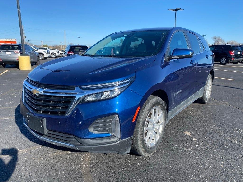THIS VEHICLE IS EQUIPPED WITH THE FOLLOWING FEATURES AND OPTIONS Driver Convenience Package (3-Spoke Leather-Wrapped Steering Wheel, Dual Zone Automatic Climate Control, Heated Driver & Front Passenger Seats, Rear Power Liftgate, and Remote Start), Preferred Equipment Group 2FL, 17" Aluminum Wheels, 2 Rear USB Charging-Only Ports, 2 USB Ports & Auxiliary Input Jack, 2-Way Power Driver Lumbar Control Seat Adjuster, 3.50 Final Drive Axle Ratio, 4-Wheel Disc Brakes, 6 Speaker Audio System Feature, 6 Speakers, 8-Way Power Driver Seat Adjuster, ABS brakes, Air Conditioning, Alloy wheels, AM/FM radio: SiriusXM, Auto High-beam Headlights, Bluetooth® For Phone, Brake assist, Bumpers: body-color, Compass, Delay-off headlights, Driver door bin, Driver vanity mirror, Dual front impact airbags, Dual front side impact airbags, Electronic Stability Control, Emergency communication system: OnStar and Chevrolet connected services capable, Four wheel independent suspension, Front anti-roll bar, Front Bucket Seats, Front Center Armrest, Front Passenger 4-Way Manual Seat Adjuster, Front reading lights, Fully automatic headlights, Heated door mirrors, Illuminated entry, Low tire pressure warning, Occupant sensing airbag, Outside temperature display, Overhead airbag, Overhead console, Panic alarm, Passenger door bin, Passenger vanity mirror, Power door mirrors, Power driver seat, Power steering, Power windows, Premium audio system: Chevrolet Infotainment 3, Premium Cloth Seat Trim, Radio data system, Radio: Chevrolet Infotainment 3 System w/AM/FM, Rear anti-roll bar, Rear reading lights, Rear seat center armrest, Rear window defroster, Rear window wiper, Remote keyless entry, Security system, SiriusXM Radio, Speed control, Speed-sensing steering, Split folding rear seat, Spoiler, Steering wheel mounted audio controls, Tachometer, Telescoping steering wheel, Tilt steering wheel, Traction control, Trip computer, Variably intermittent wipers, and Wireless Apple CarPlay/Wireless Android Auto. Clean CARFAX. Blue Glow Metallic 2022 Chevrolet Equinox LT FWD 6-Speed Automatic Electronic with Overdrive 1.5L DOHC
