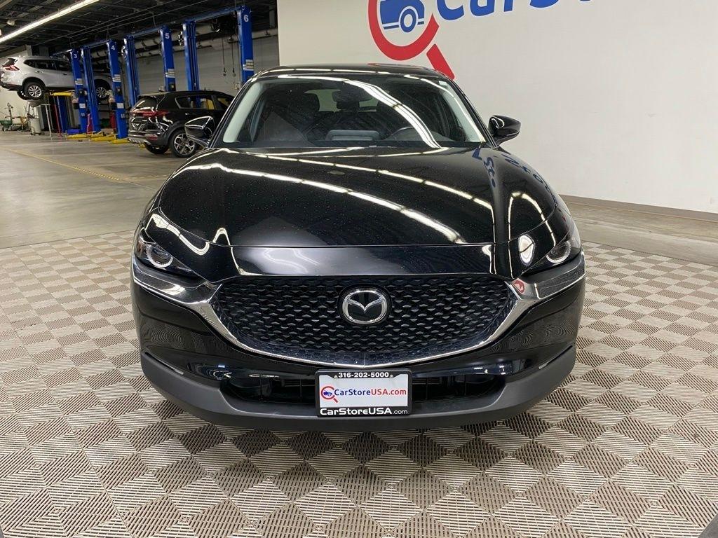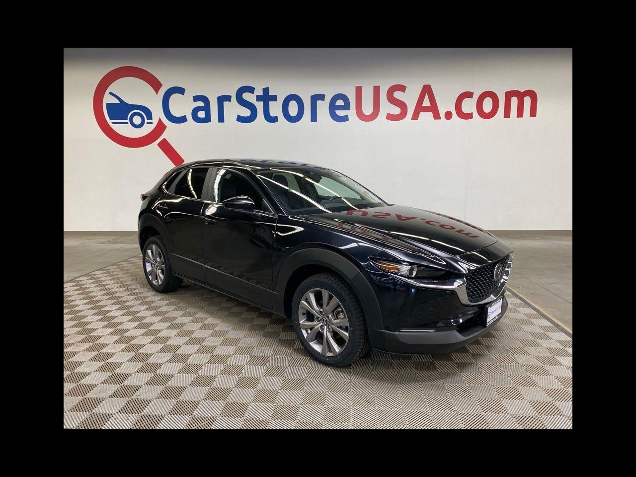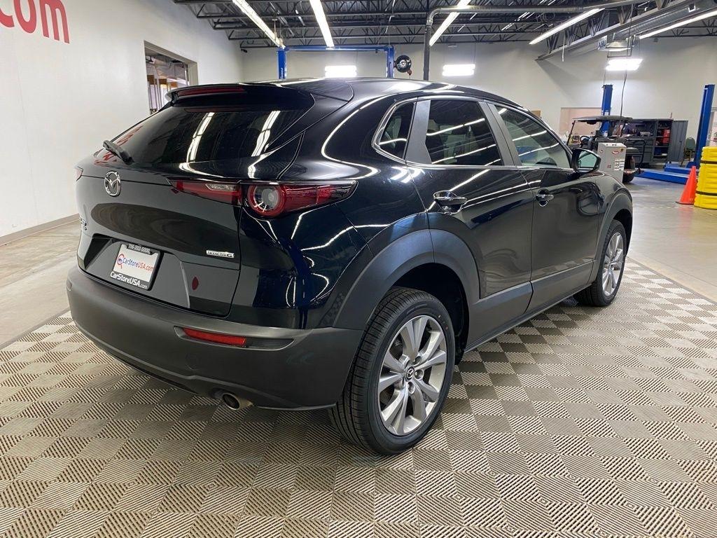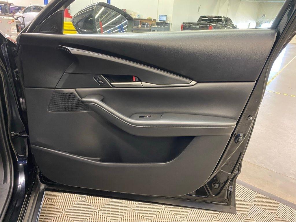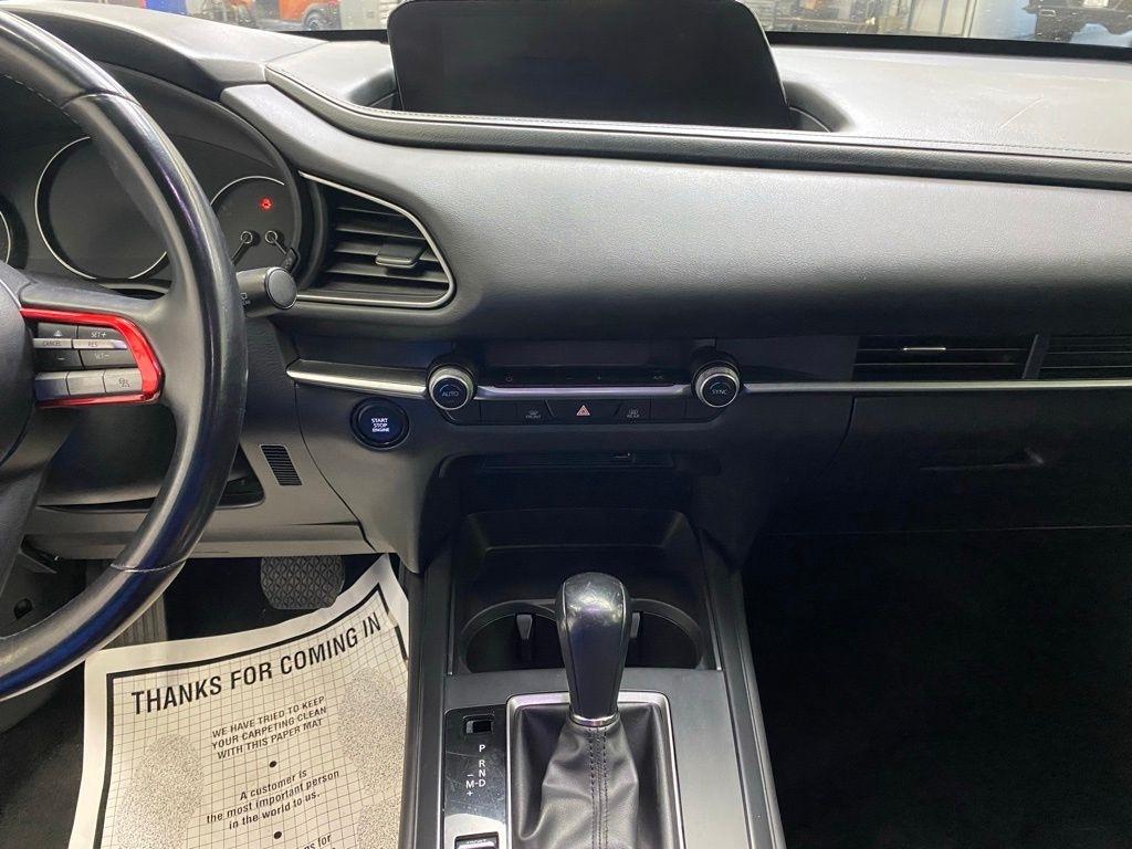 THIS VEHICLE IS EQUIPPED WITH THE FOLLOWING FEATURES AND OPTIONS Select Package, 18" x 7J Alloy Wheels, 3.850 Axle Ratio, 4-Wheel Disc Brakes, 8 Speakers, ABS brakes, Air Conditioning, Alloy wheels, AM/FM radio, AppLink/Apple CarPlay and Android Auto, Auto High-beam Headlights, Automatic temperature control, Brake assist, Bumpers: body-color, Compass, Delay-off headlights, Driver door bin, Driver vanity mirror, Dual front impact airbags, Dual front side impact airbags, Electronic Stability Control, Emergency communication system: MAZDA CONNECT, Exterior Parking Camera Rear, Front anti-roll bar, Front Bucket Seats, Front Center Armrest, Front dual zone A/C, Front reading lights, Front wheel independent suspension, Fully automatic headlights, Illuminated entry, Knee airbag, Leather Shift Knob, Leather steering wheel, Leatherette Seat Trim, Low tire pressure warning, MAZDA CONNECT Infotainment System Voice Command, Occupant sensing airbag, Outside temperature display, Overhead airbag, Panic alarm, Passenger door bin, Passenger vanity mirror, Power door mirrors, Power steering, Power windows, Radio data system, Radio: AM/FM Audio System, Rain sensing wipers, Rear seat center armrest, Rear window defroster, Rear window wiper, Remote keyless entry, Speed control, Speed-sensing steering, Split folding rear seat, Spoiler, Steering wheel mounted audio controls, Tachometer, Telescoping steering wheel, Tilt steering wheel, Traction control, Trip computer, Turn signal indicator mirrors, and Variably intermittent wipers. Jet Black Mica 2021 Mazda CX-30 Select AWD 6-Speed Automatic I4