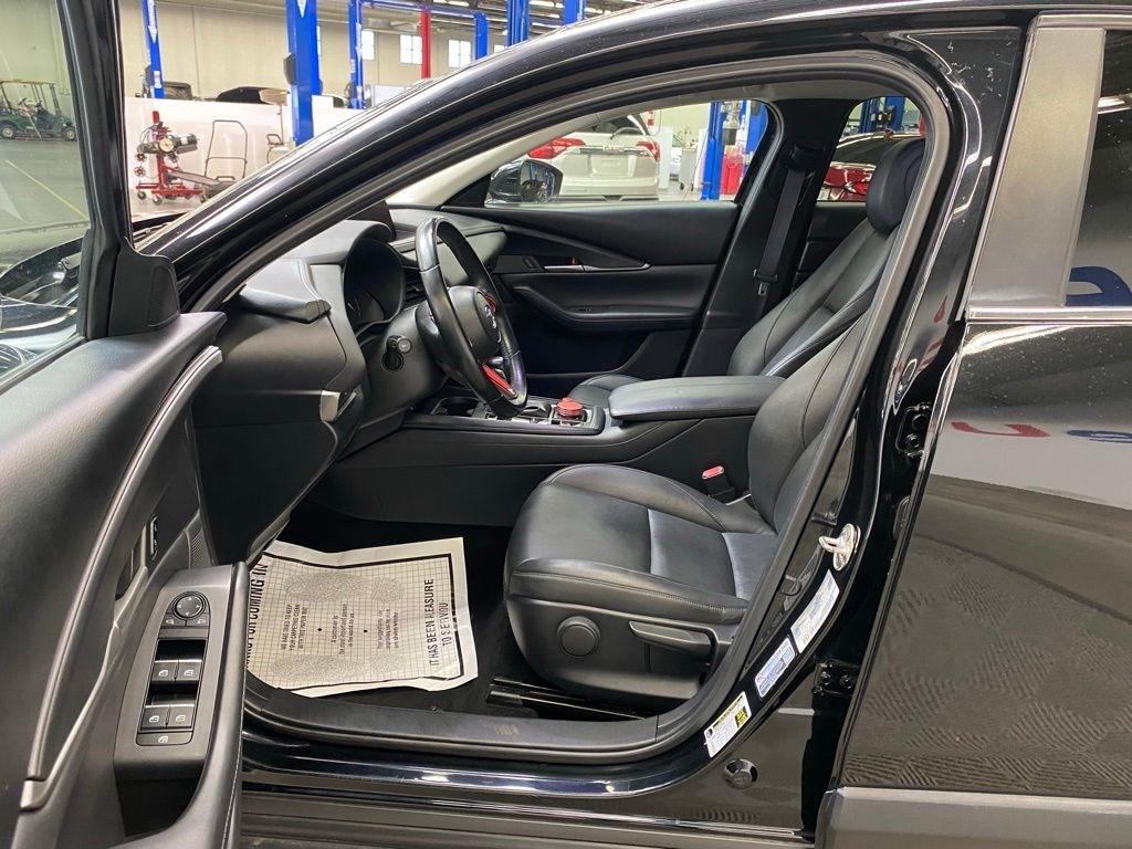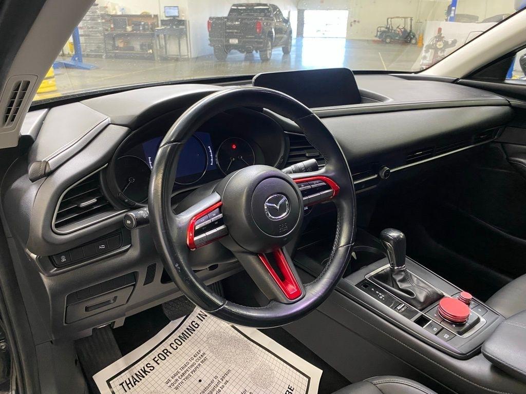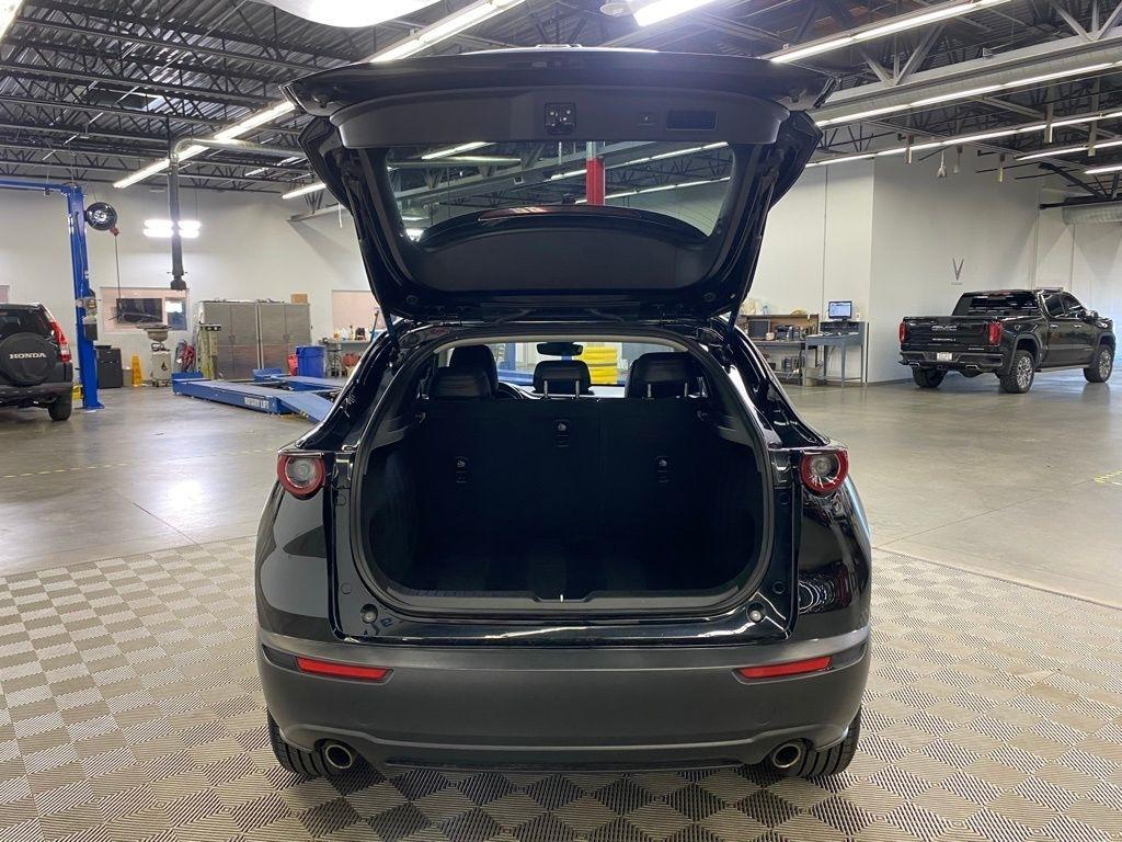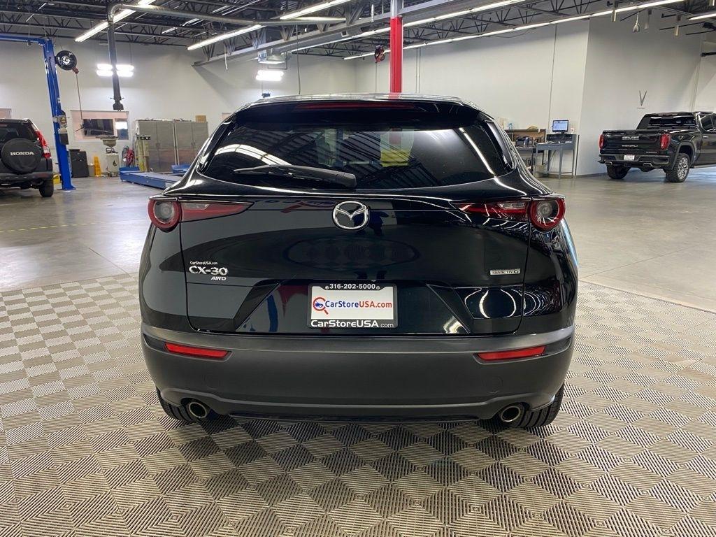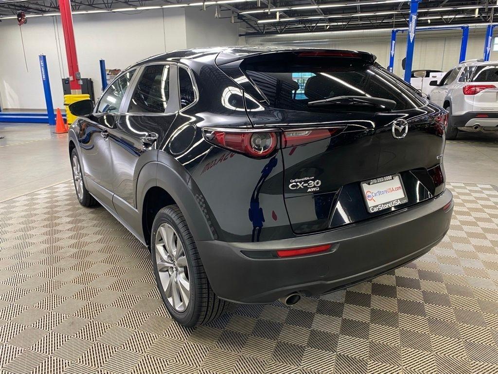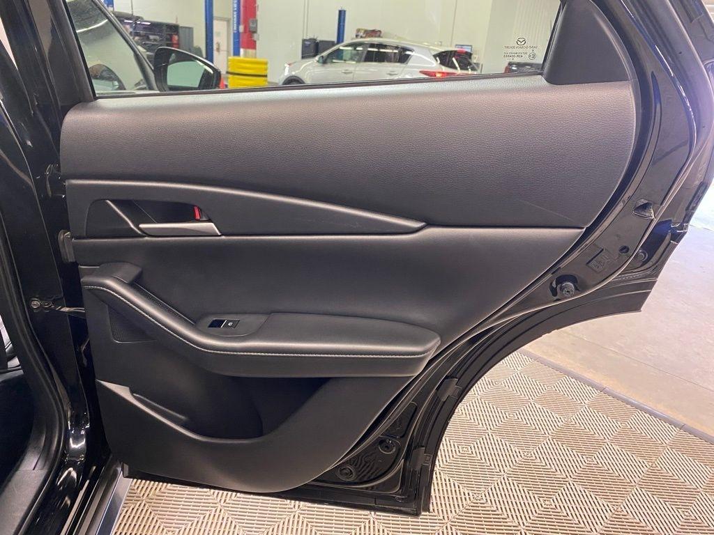 THIS VEHICLE IS EQUIPPED WITH THE FOLLOWING FEATURES AND OPTIONS Select Package, 18" x 7J Alloy Wheels, 3.850 Axle Ratio, 4-Wheel Disc Brakes, 8 Speakers, ABS brakes, Air Conditioning, Alloy wheels, AM/FM radio, AppLink/Apple CarPlay and Android Auto, Auto High-beam Headlights, Automatic temperature control, Brake assist, Bumpers: body-color, Compass, Delay-off headlights, Driver door bin, Driver vanity mirror, Dual front impact airbags, Dual front side impact airbags, Electronic Stability Control, Emergency communication system: MAZDA CONNECT, Exterior Parking Camera Rear, Front anti-roll bar, Front Bucket Seats, Front Center Armrest, Front dual zone A/C, Front reading lights, Front wheel independent suspension, Fully automatic headlights, Illuminated entry, Knee airbag, Leather Shift Knob, Leather steering wheel, Leatherette Seat Trim, Low tire pressure warning, MAZDA CONNECT Infotainment System Voice Command, Occupant sensing airbag, Outside temperature display, Overhead airbag, Panic alarm, Passenger door bin, Passenger vanity mirror, Power door mirrors, Power steering, Power windows, Radio data system, Radio: AM/FM Audio System, Rain sensing wipers, Rear seat center armrest, Rear window defroster, Rear window wiper, Remote keyless entry, Speed control, Speed-sensing steering, Split folding rear seat, Spoiler, Steering wheel mounted audio controls, Tachometer, Telescoping steering wheel, Tilt steering wheel, Traction control, Trip computer, Turn signal indicator mirrors, and Variably intermittent wipers. Jet Black Mica 2021 Mazda CX-30 Select AWD 6-Speed Automatic I4