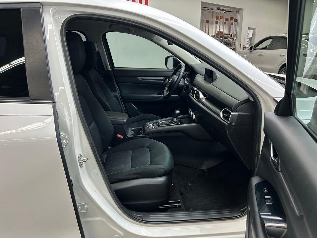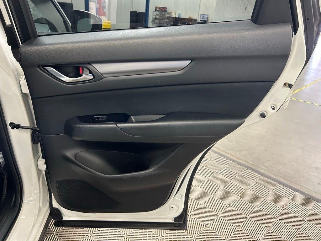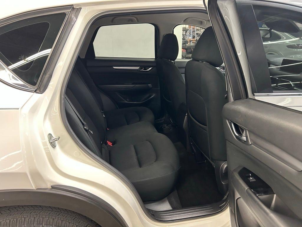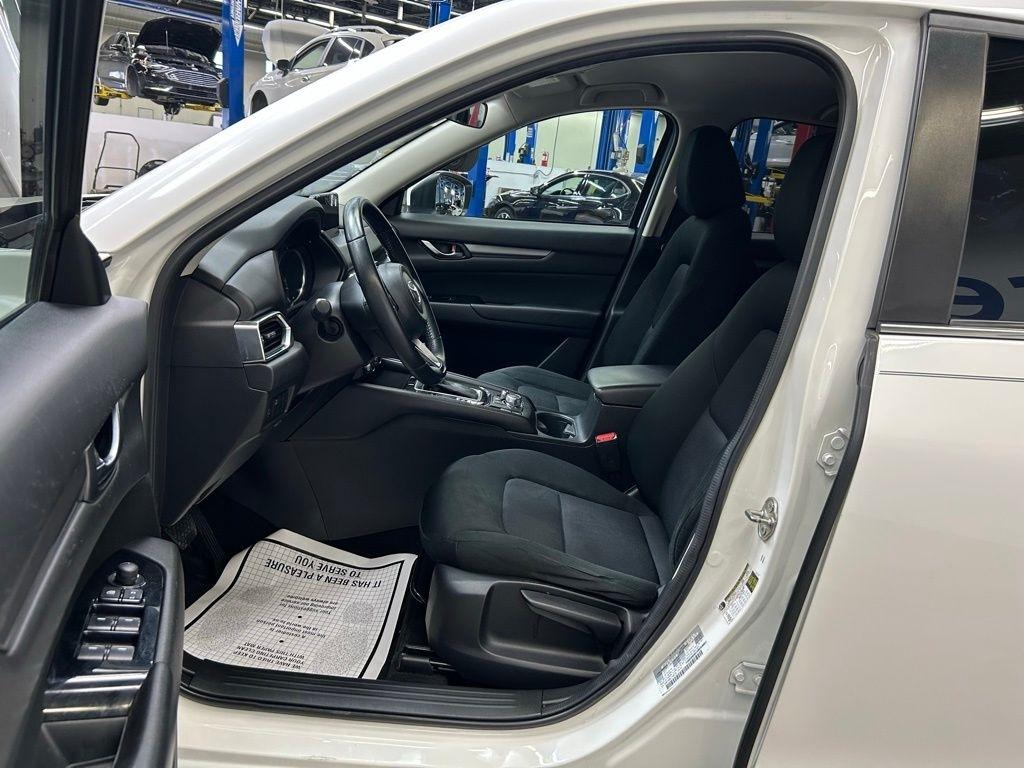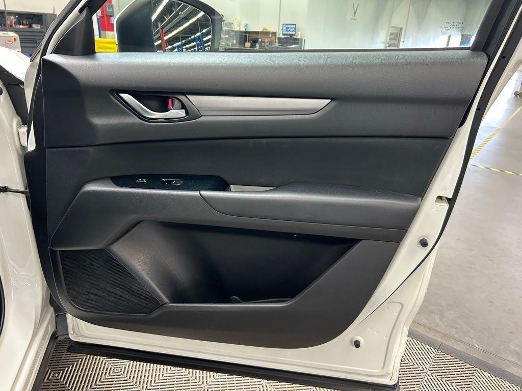 THIS VEHICLE IS EQUIPPED WITH THE FOLLOWING FEATURES AND OPTIONS 17 x 7J Aluminum Alloy Wheels, 4 Speakers, 4-Wheel Disc Brakes, 4.325 Axle Ratio, ABS brakes, Air Conditioning, Alloy wheels, AM/FM radio, Brake assist, Bumpers: body-color, Cloth Seat Trim, Delay-off headlights, Driver door bin, Driver vanity mirror, Dual front impact airbags, Dual front side impact airbags, Electronic Stability Control, Emergency communication system, Exterior Parking Camera Rear, Four wheel independent suspension, Front anti-roll bar, Front Bucket Seats, Front Center Armrest, Front reading lights, Illuminated entry, Leather Shift Knob, Low tire pressure warning, Occupant sensing airbag, Outside temperature display, Overhead airbag, Overhead console, Panic alarm, Passenger door bin, Passenger vanity mirror, Power door mirrors, Power steering, Power windows, Radio data system, Radio: AM/FM/HD Audio System, Rear anti-roll bar, Rear reading lights, Rear window defroster, Rear window wiper, Remote keyless entry, Slowflake White Pearl Mica Paint, Speed control, Speed-sensing steering, Split folding rear seat, Spoiler, Sport Shape Front Seats, Steering wheel mounted audio controls, Tachometer, Telescoping steering wheel, Tilt steering wheel, Traction control, Trip computer, Turn signal indicator mirrors, and Variably intermittent wipers. Snowflake White Pearl Mica 2018 Mazda CX-5 Sport FWD 6-Speed Automatic SKYACTIV® 2.5L 4-Cylinder DOHC 16V