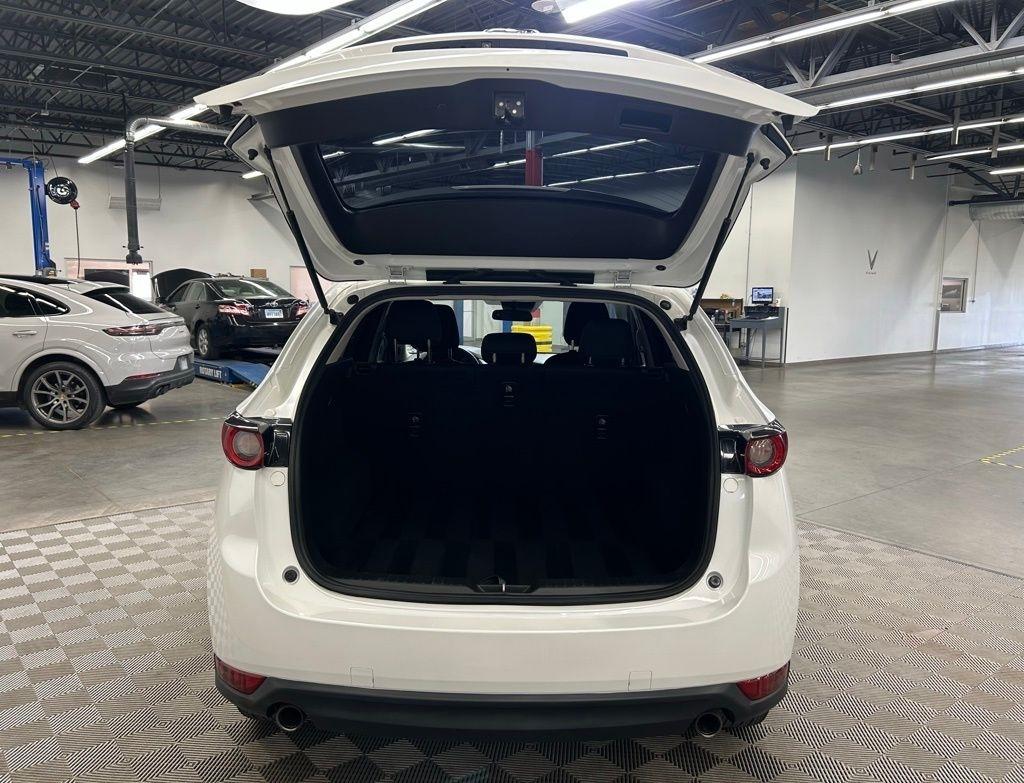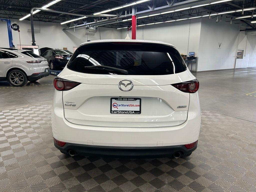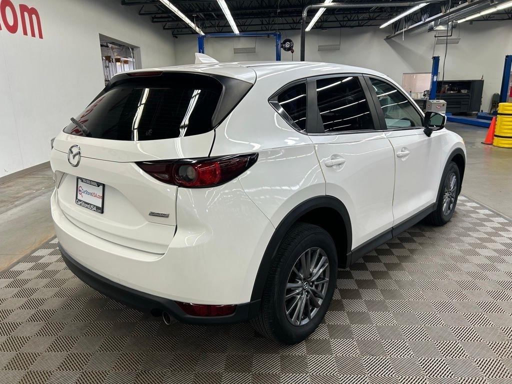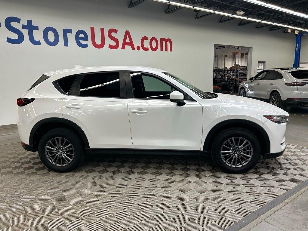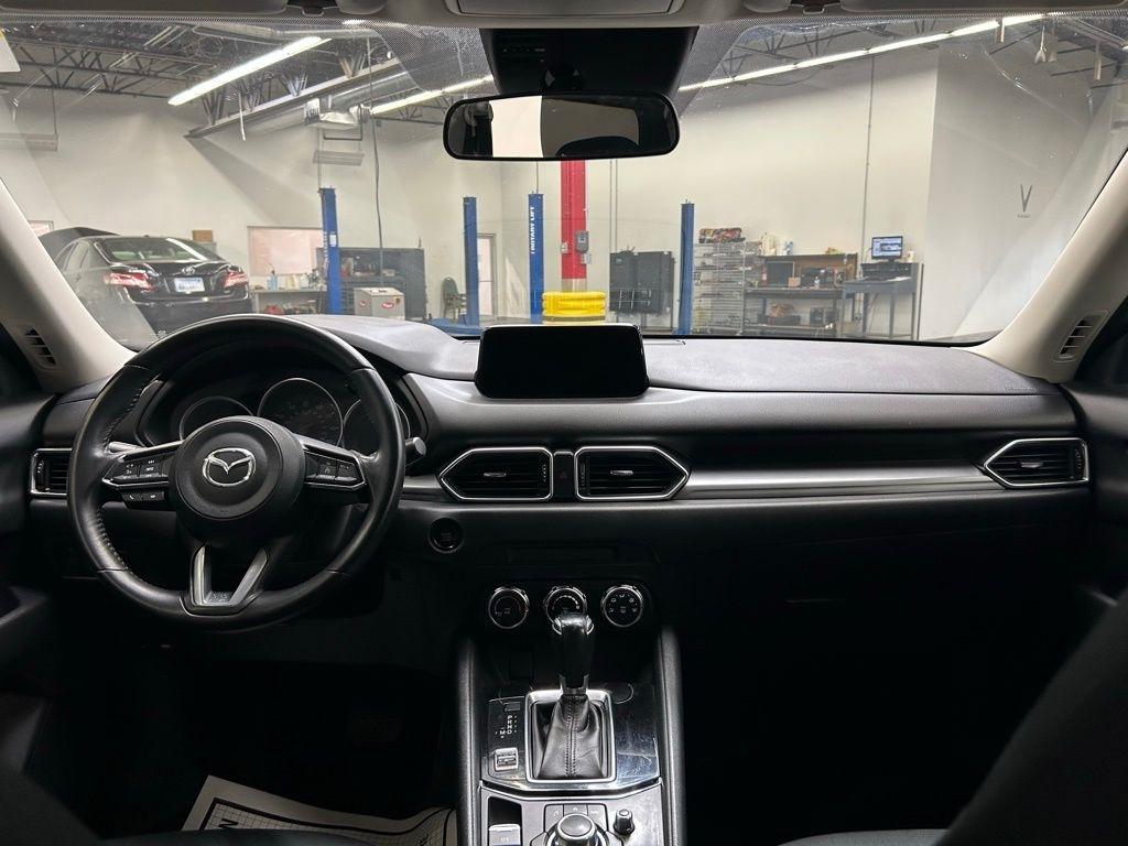 THIS VEHICLE IS EQUIPPED WITH THE FOLLOWING FEATURES AND OPTIONS 17 x 7J Aluminum Alloy Wheels, 4 Speakers, 4-Wheel Disc Brakes, 4.325 Axle Ratio, ABS brakes, Air Conditioning, Alloy wheels, AM/FM radio, Brake assist, Bumpers: body-color, Cloth Seat Trim, Delay-off headlights, Driver door bin, Driver vanity mirror, Dual front impact airbags, Dual front side impact airbags, Electronic Stability Control, Emergency communication system, Exterior Parking Camera Rear, Four wheel independent suspension, Front anti-roll bar, Front Bucket Seats, Front Center Armrest, Front reading lights, Illuminated entry, Leather Shift Knob, Low tire pressure warning, Occupant sensing airbag, Outside temperature display, Overhead airbag, Overhead console, Panic alarm, Passenger door bin, Passenger vanity mirror, Power door mirrors, Power steering, Power windows, Radio data system, Radio: AM/FM/HD Audio System, Rear anti-roll bar, Rear reading lights, Rear window defroster, Rear window wiper, Remote keyless entry, Slowflake White Pearl Mica Paint, Speed control, Speed-sensing steering, Split folding rear seat, Spoiler, Sport Shape Front Seats, Steering wheel mounted audio controls, Tachometer, Telescoping steering wheel, Tilt steering wheel, Traction control, Trip computer, Turn signal indicator mirrors, and Variably intermittent wipers. Snowflake White Pearl Mica 2018 Mazda CX-5 Sport FWD 6-Speed Automatic SKYACTIV® 2.5L 4-Cylinder DOHC 16V