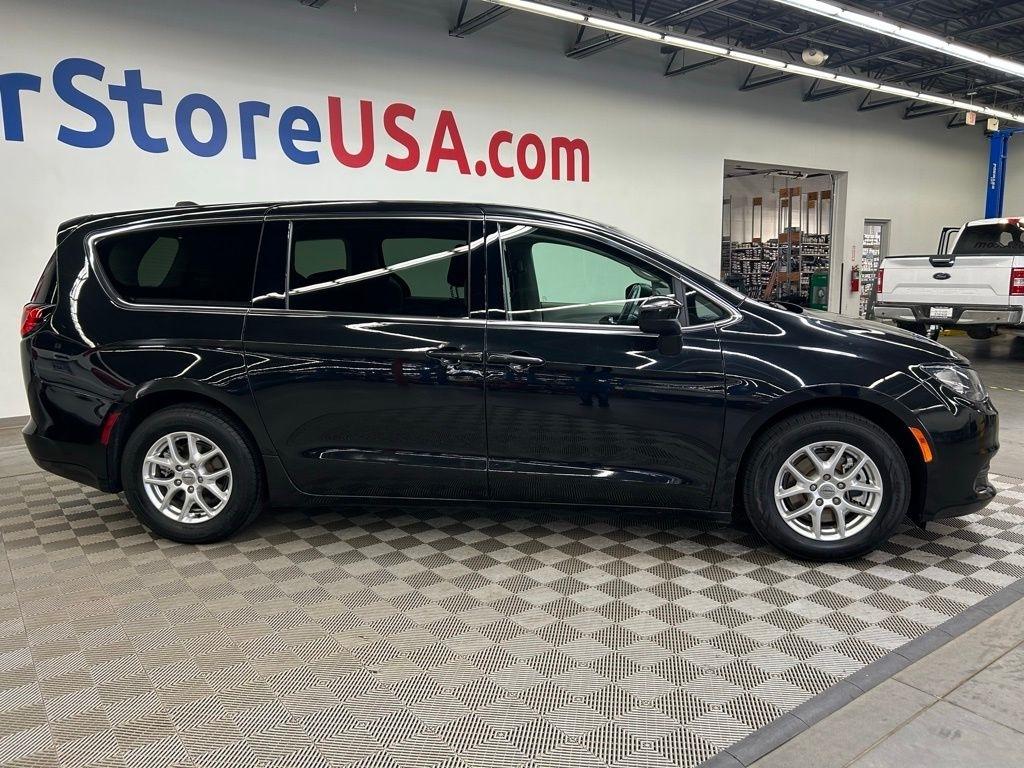 THIS VEHICLE IS EQUIPPED WITH THE FOLLOWING FEATURES AND OPTIONS Quick Order Package 27E, 17" x 7" Aluminum Wheels, 3.25 Axle Ratio, 3rd row seats: split-bench, 4-Wheel Disc Brakes, 6 Speakers, ABS brakes, Air Conditioning, Alloy wheels, AM/FM radio: SiriusXM, Apple CarPlay/Android Auto, Automatic temperature control, Black Seats, Brake assist, Bumpers: body-color, Cloth Bucket Seats, Compass, Delay-off headlights, Door auto-latch, Driver door bin, Driver vanity mirror, Driver's Seat Mounted Armrest, Dual front impact airbags, Dual front side impact airbags, Electronic Stability Control, Four wheel independent suspension, Front anti-roll bar, Front Bucket Seats, Front dual zone A/C, Front reading lights, Fully automatic headlights, Heated door mirrors, Heated front seats, Heated steering wheel, Illuminated entry, Knee airbag, Low tire pressure warning, Occupant sensing airbag, Outside temperature display, Overhead airbag, Overhead console, Panic alarm, ParkView Rear Back-Up Camera, Passenger door bin, Passenger seat mounted armrest, Passenger vanity mirror, Power door mirrors, Power driver seat, Power Liftgate, Power steering, Power windows, Radio data system, Radio: Uconnect 5 w/7" Display, Rear air conditioning, Rear window defroster, Rear window wiper, Reclining 3rd row seat, Remote keyless entry, Security system, Speed control, Split folding rear seat, Spoiler, Steering wheel mounted audio controls, Tachometer, Telescoping steering wheel, Tilt steering wheel, Touring Suspension, Traction control, Trip computer, Variably intermittent wipers, and Voltmeter. Clean CARFAX. Brilliant Black Crystal Pearlcoat 2022 Chrysler Voyager LX FWD 9-Speed 948TE Automatic 3.6L V6 24V VVT