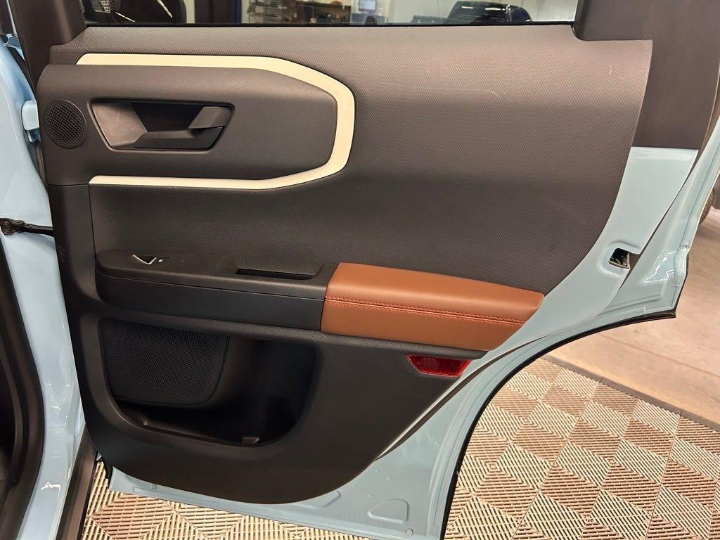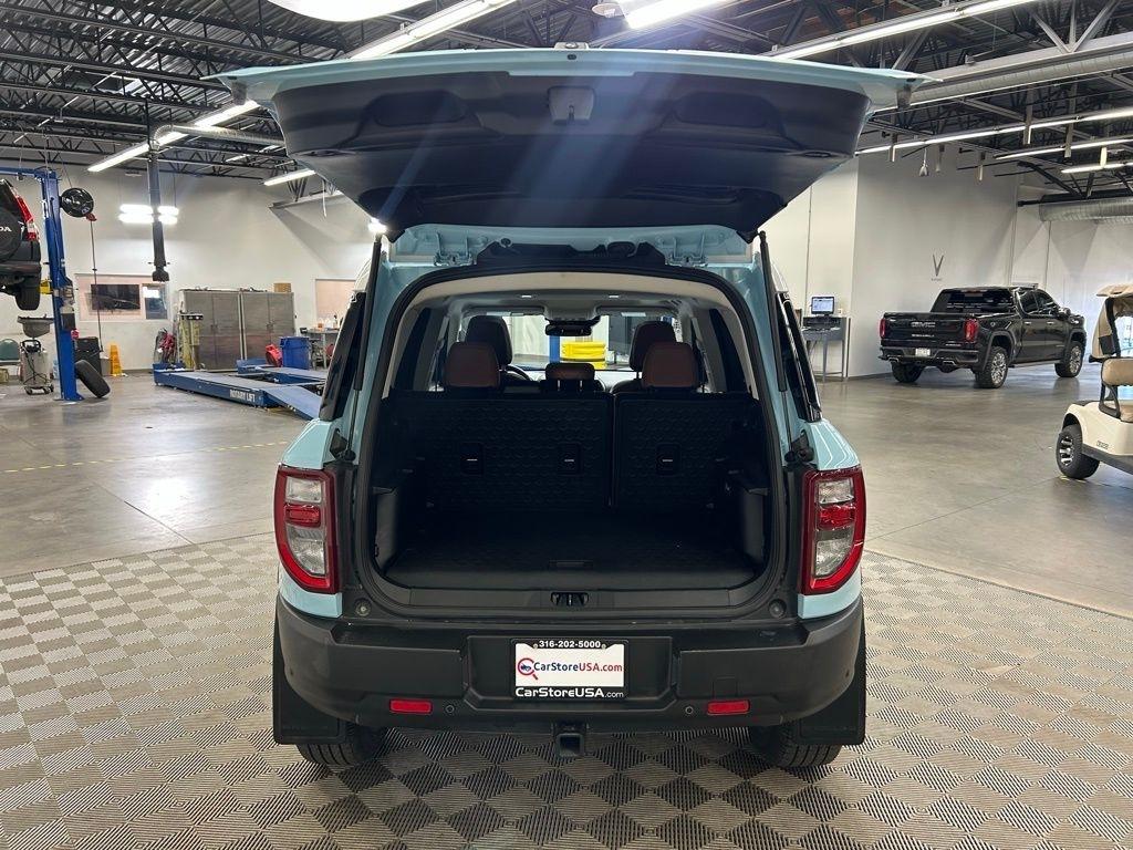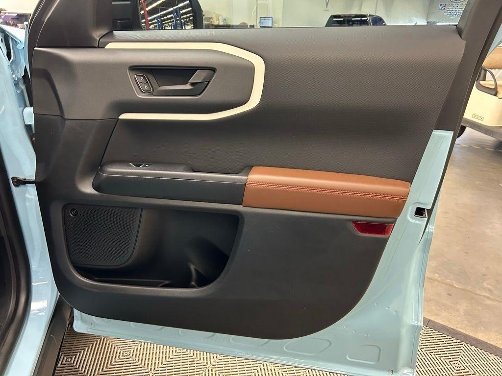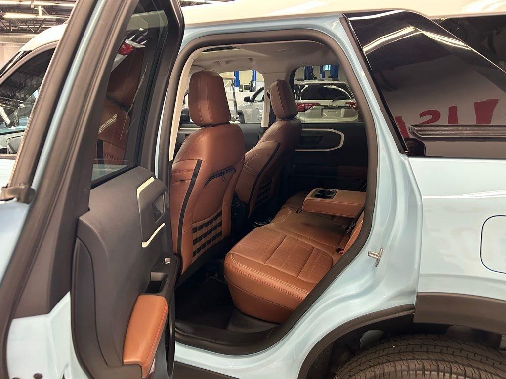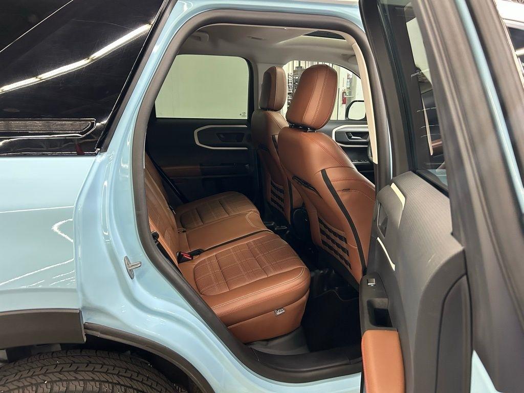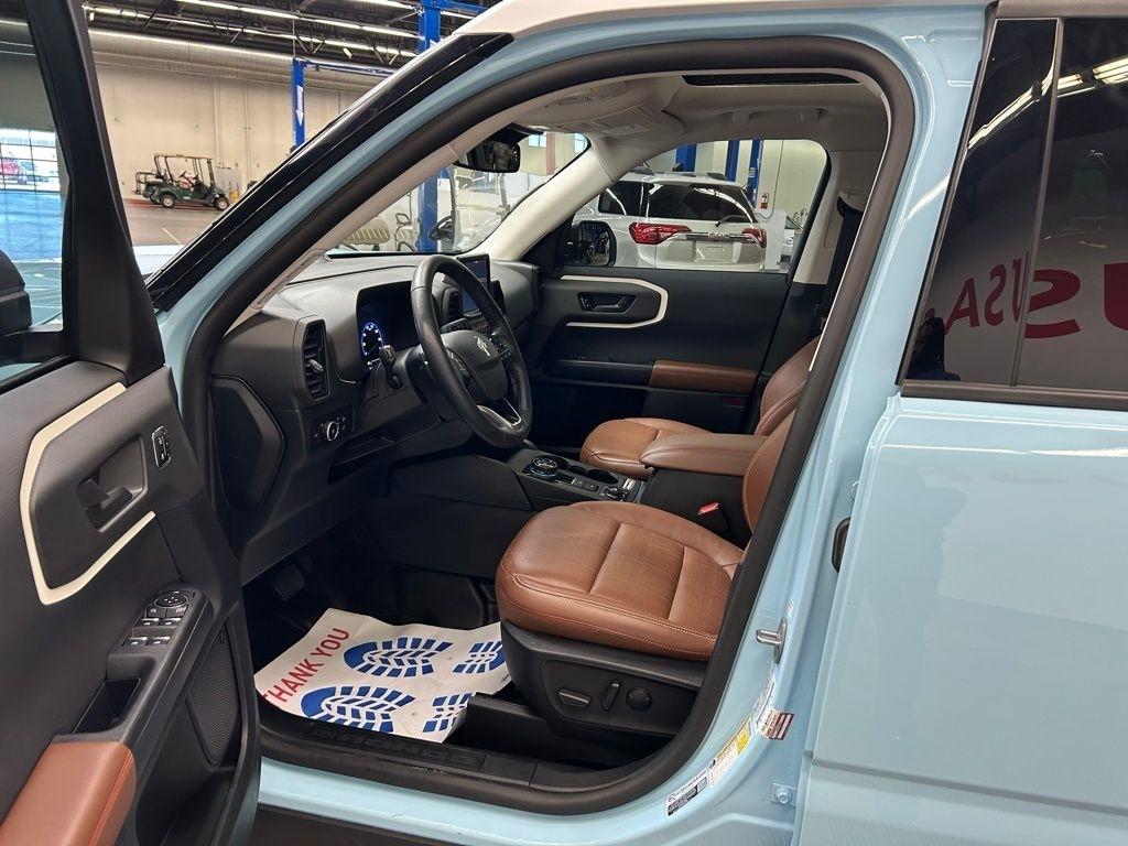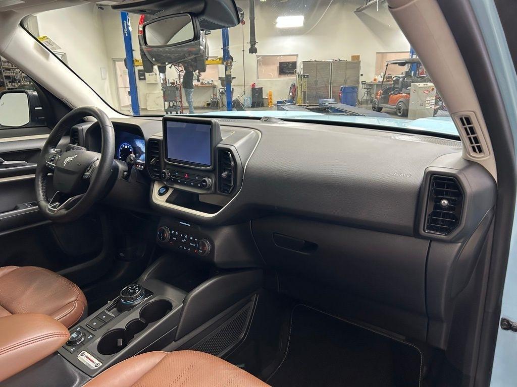 CARFAX One-Owner. THIS VEHICLE IS EQUIPPED WITH THE FOLLOWING FEATURES AND OPTIONS Equipment Group 410A, 10 Speakers, 3.80 Axle Ratio, 4-Wheel Disc Brakes, ABS brakes, Air Conditioning, Alloy wheels, AM/FM radio: SiriusXM, AM/FM Stereo, Auto High-beam Headlights, Auto-dimming Rear-View mirror, Automatic temperature control, Brake assist, Cargo Management System, Compass, Delay-off headlights, Driver door bin, Driver vanity mirror, Dual front impact airbags, Dual front side impact airbags, Electronic Stability Control, Emergency communication system: SYNC 3 911 Assist, Four wheel independent suspension, Front & Rear Floor Liners w/Carpet Mats, Front & Rear Splash Guards, Front anti-roll bar, Front Bucket Seats, Front Center Armrest, Front dual zone A/C, Front fog lights, Front License Plate Bracket, Front reading lights, Fully automatic headlights, Garage door transmitter, Heated door mirrors, Heated front seats, Heated steering wheel, Illuminated entry, Knee airbag, Low tire pressure warning, Lthr-Trimmed/Vinyl Htd Sport Contour Bucket Seats, Memory seat, Navigation System, Occupant sensing airbag, Outside temperature display, Overhead airbag, Overhead console, Panic alarm, Passenger door bin, Passenger vanity mirror, Power door mirrors, Power driver seat, Power moonroof, Power passenger seat, Power steering, Power windows, Radio data system, Rear anti-roll bar, Rear Parking Sensors, Rear reading lights, Rear seat center armrest, Rear window defroster, Rear window wiper, Remote keyless entry, Security system, SiriusXM, Speed control, Speed-sensing steering, Speed-Sensitive Wipers, Split folding rear seat, Steering wheel mounted audio controls, SYNC 3 Communications & Entertainment System, SYNC 3/Apple CarPlay/Android Auto, Tachometer, Telescoping steering wheel, Tilt steering wheel, Traction control, Trip computer, Variably intermittent wipers, and Wheels: 17" Oxford White-Painted Aluminum. Blue 2023 Ford Bronco Sport Heritage Limited 4WD 8-Speed Automatic EcoBoost 2.0L I4 GTDi DOHC Turbocharged VCT