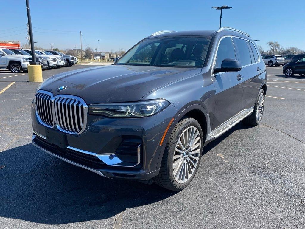 THIS VEHICLE IS EQUIPPED WITH THE FOLLOWING FEATURES AND OPTIONS Cold Weather Package (5-Zone Automatic Climate Control, Front & Rear Heated Seats, and Heated Front Seats Armrests & Steering Wheel), Driving Assistance Professional Package (Active Driving Assistant Pro and Extended Traffic Jam Assistant), Executive Package (Gesture Control, Glass Controls, harman/kardon Surround Sound System, Head-Up Display, Heated & Cooled Cup Holders, Panoramic Sky Lounge LED Roof, Rear Electric Side Window Shades, Remote Engine Start, and Soft-Close Automatic Doors), Parking Assistance Package (Drive Recorder, Parking Assistant Plus, Rear-View Camera, and Surround View w/3D View), 10 Speakers, 3.64 Axle Ratio, 3rd row seats: split-bench, 4-Wheel Disc Brakes, ABS brakes, Air Conditioning, Alloy wheels, Aluminum Running Boards, AM/FM radio: SiriusXM, AM/FM Stereo, Apple CarPlay Compatibility, Auto High-beam Headlights, Auto tilt-away steering wheel, Auto-dimming door mirrors, Auto-dimming Rear-View mirror, Auto-leveling suspension, Automatic temperature control, Brake assist, Bumpers: body-color, Compass, Delay-off headlights, Driver door bin, Driver vanity mirror, Dual front impact airbags, Dual front side impact airbags, Electronic Stability Control, Emergency communication system: BMW Assist eCall, Exterior Parking Camera Rear, Four wheel independent suspension, Front anti-roll bar, Front Bucket Seats, Front Center Armrest, Front dual zone A/C, Front fog lights, Front reading lights, Fully automatic headlights, Garage door transmitter, Genuine wood console insert, Genuine wood dashboard insert, Genuine wood door panel insert, Head restraints memory, Heated door mirrors, Heated Front Seats, Heated front seats, Hi-Fi Sound System, Illuminated entry, Knee airbag, Leather Dashboard, Leather Shift Knob, Low tire pressure warning, Lumbar Support, Memory seat, Multi-Contour Seats, Navigation System, Occupant sensing airbag, Outside temperature display, Overhead airbag, Panic alarm, Passenger door bin, Passenger vanity mirror, Power adjustable front head restraints, Power door mirrors, Power driver seat, Power Front Seats, Power moonroof, Power passenger seat, Power steering, Power windows, Radio data system, Rain sensing wipers, Rear air conditioning, Rear anti-roll bar, Rear dual zone A/C, Rear reading lights, Rear seat center armrest, Rear window defroster, Rear window wiper, Rear-Seat Entertainment Professional, Reclining 3rd row seat, Remote keyless entry, Roof rack: rails only, Security system, SensaTec Upholstery, SiriusXM Satellite Radio, Speed control, Speed-sensing steering, Speed-Sensitive Wipers, Split folding rear seat, Spoiler, Sport Seats, Sport steering wheel, Steering wheel memory, Steering wheel mounted audio controls, Tachometer, Telescoping steering wheel, Tilt steering wheel, Traction control, Trailer Hitch - 7,500 lb Towing Limit, Trip computer, Turn signal indicator mirrors, Variably intermittent wipers, Wheels: 21" x 9.5" Y-Spoke Bi-Color (Style 753), and Wheels: 22" x 9.5" Fr & 22" x 10.5" Rr Multi-Spoke. Clean CARFAX. Arctic Gray Metallic 2020 BMW X7 xDrive40i AWD 8-Speed Automatic 3.0L I6 DOHC 24V