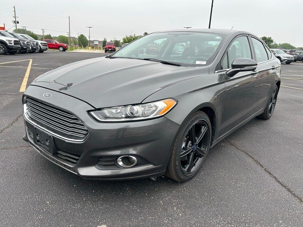 THIS VEHICLE IS EQUIPPED WITH THE FOLLOWING FEATURES AND OPTIONS Appearance Package (18" Premium Painted Aluminum Wheels, EcoCloth Front Bucket Seats, Fog Lamps, Leather-Wrapped Steering Wheel, and Rear Spoiler), Equipment Group 201A, SE MyFord Touch Technology Package (10 Speakers, Dual Zone Electronic Automatic Temperature Control, Reverse Sensing System, and SYNC w/MyFord Touch), 17" Painted Aluminum Wheels, 4-Wheel Disc Brakes, 6 Speakers, ABS brakes, Air Conditioning, Alloy wheels, AM/FM radio: SiriusXM, Brake assist, Bumpers: body-color, CD player, Cloth Front Bucket Seats, Compass, Delay-off headlights, Driver door bin, Driver vanity mirror, Dual front impact airbags, Dual front side impact airbags, Electronic Stability Control, Emergency communication system: 911 Assist, Exterior Parking Camera Rear, Four wheel independent suspension, Front anti-roll bar, Front Bucket Seats, Front Center Armrest, Front License Plate Bracket, Front reading lights, Fully automatic headlights, Heated door mirrors, Illuminated entry, Knee airbag, Low tire pressure warning, Occupant sensing airbag, Outside temperature display, Overhead airbag, Overhead console, Panic alarm, Passenger door bin, Passenger vanity mirror, Power door mirrors, Power driver seat, Power passenger seat, Power steering, Power windows, Radio data system, Radio: AM/FM Stereo/MP3/Single-CD, Rear anti-roll bar, Rear reading lights, Rear seat center armrest, Rear window defroster, Remote keyless entry, Security system, SiriusXM Radio, Speed control, Speed-sensing steering, Speed-Sensitive Wipers, Split folding rear seat, Steering wheel mounted audio controls, SYNC Communications & Entertainment System, Tachometer, Telescoping steering wheel, Tilt steering wheel, Traction control, Trip computer, Turn signal indicator mirrors, and Variably intermittent wipers. Magnetic 2016 Ford Fusion SE FWD 6-Speed Automatic 1.5L EcoBoost