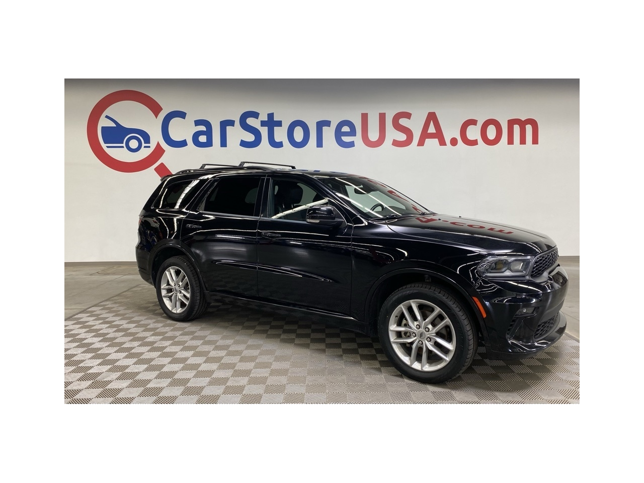 CARFAX One-Owner. THIS VEHICLE IS EQUIPPED WITH THE FOLLOWING FEATURES AND OPTIONS Quick Order Package 2BG GT Plus (1-Year Trial (Registration Required), 10.1" Touchscreen Display, 115V Auxiliary Power Outlet, 180 Amp Alternator, 4G LTE Wi-Fi Hot Spot, 7 & 4 Pin Wiring Harness, Adaptive Cruise Control w/Stop, Apple CarPlay, Auto-Dimming Exterior Driver Mirror, Black Roof Rails, Class IV Receiver Hitch, Connected Travel & Traffic Services, Disassociated Touchscreen Display, Dual Remote USB Port - Charge Only, Exterior Mirrors w/Heating Element, Exterior Mirrors w/Memory, Exterior Mirrors w/Supplemental Signals, Floor Console w/Leather Armrest, Full Speed Forward Collision Warning Plus, Gloss Black Exterior Mirrors, Google Android Auto, GPS Antenna Input, GPS Navigation, HD Radio, Heated Second Row Seats, Heavy-Duty Engine Cooling, Integrated Center Stack Radio, Integrated Roof Rail Crossbars, Integrated Voice Command w/Bluetooth, Leather Trimmed Bucket Seats, Leather Wrapped Door Panels, LED Auxiliary Low Beam & Turn Signal, Power 6x9 Multi-Function Foldaway Mirrors, Power 8-Way Driver Memory 8-Way Passenger Seats, Power Driver/Passenger 4-Way Lumbar Adjust, Power Sunroof, Power Tilt & Telescopic Steering Column, Premium LED Fog Lamps, Radio: Uconnect 5 Nav w/10.1" Display, Radio/Driver Seat/Mirrors Memory, Rear Load Leveling Suspension, Red Accent Stitching, SiriusXM Guardian - Included Trial (B), SiriusXM w/360L, Trailer Brake Control, USB Host Flip, and Ventilated Front Seats), 3.45 Rear Axle Ratio, 3rd row seats: split-bench, 4-Wheel Disc Brakes, 6 Speakers, ABS brakes, Air Conditioning, Alloy wheels, AM/FM radio: SiriusXM, Apple CarPlay/Android Auto, Auto-dimming Rear-View mirror, Automatic temperature control, Brake assist, Bumpers: body-color, Cloth Bucket Seats w/Shift Insert, Compass, Delay-off headlights, Driver door bin, Driver vanity mirror, Dual front impact airbags, Dual front side impact airbags, Electronic Stability Control, Four wheel independent suspension, Front anti-roll bar, Front Bucket Seats, Front Center Armrest w/Storage, Front dual zone A/C, Front License Plate Bracket, Front reading lights, Fully automatic headlights, Garage door transmitter, Heated door mirrors, Heated front seats, Heated steering wheel, Illuminated entry, Knee airbag, Leather steering wheel, Low tire pressure warning, Manufacturer's Statement of Origin, Occupant sensing airbag, Outside temperature display, Overhead airbag, Overhead console, Panic alarm, ParkView Rear Back-Up Camera, Passenger door bin, Passenger vanity mirror, Power door mirrors, Power driver seat, Power Liftgate, Power steering, Power windows, Radio data system, Radio: Uconnect 4 w/8.4" Display, Rear air conditioning, Rear anti-roll bar, Rear reading lights, Rear seat center armrest, Rear window defroster, Rear window wiper, Remote keyless entry, SiriusXM Radio Service, SiriusXM Satellite Radio, Speed control, Speed-sensing steering, Speed-Sensitive Wipers, Split folding rear seat, Spoiler, Sport steering wheel, Steering wheel mounted audio controls, Tachometer, Telescoping steering wheel, Tilt steering wheel, Traction control, Trip computer, Variably intermittent wipers, Voltmeter, and Wheels: 20" x 8.0" Fine Silver. Clean CARFAX. DB Black Crystal Clearcoat 2023 Dodge Durango GT Plus AWD 8-Speed Automatic 3.6L V6 24V VVT