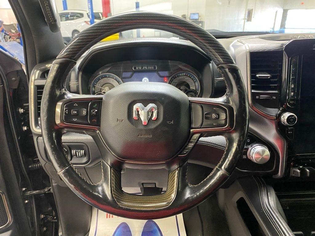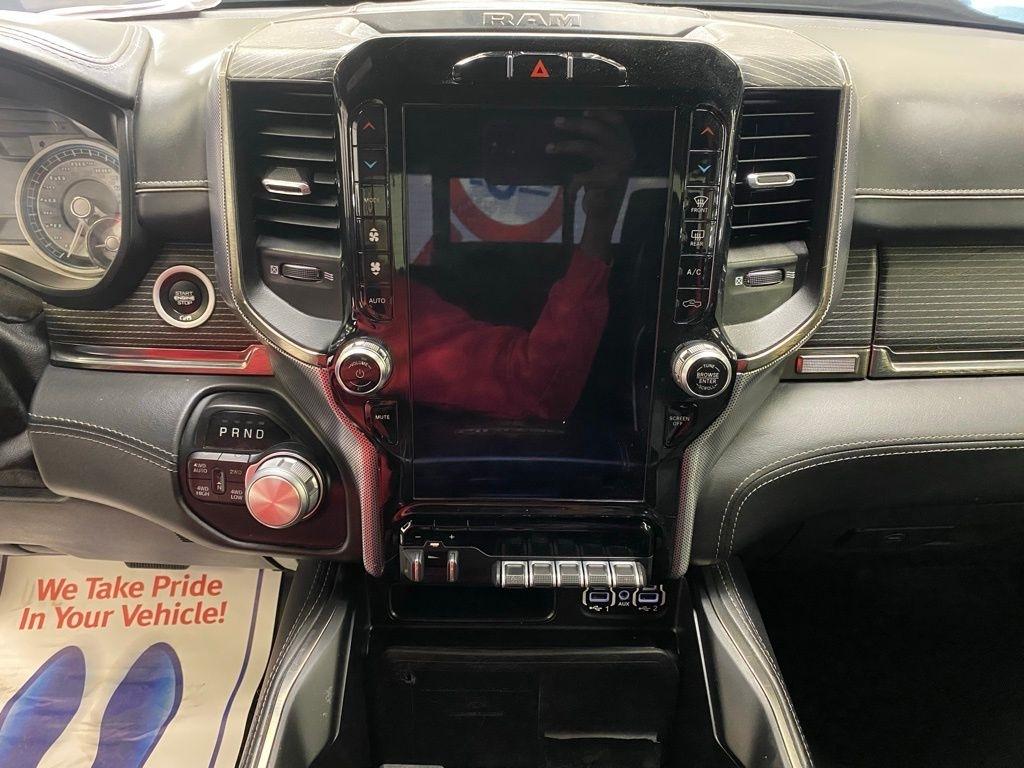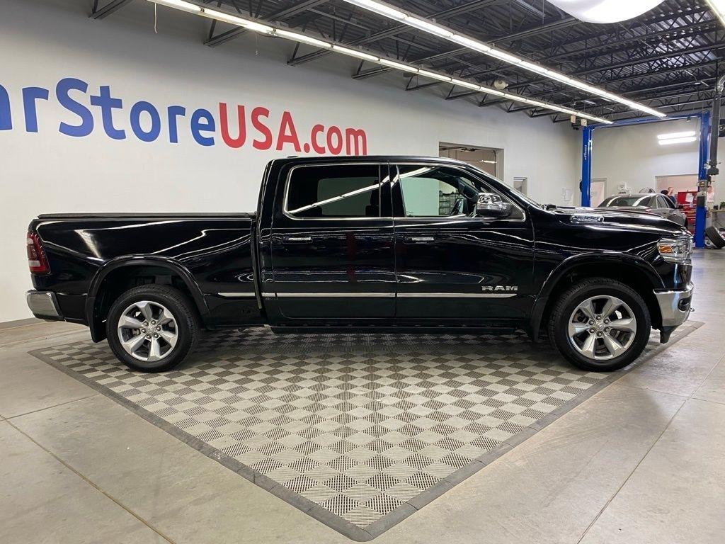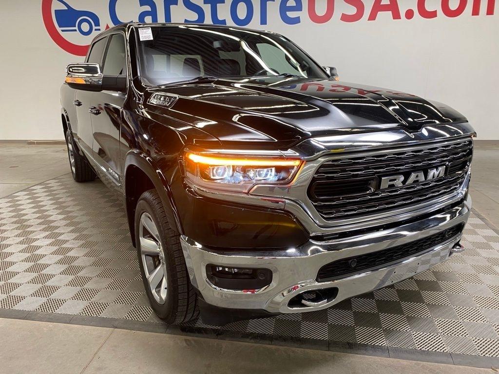 CARFAX One-Owner. THIS VEHICLE IS EQUIPPED WITH THE FOLLOWING FEATURES AND OPTIONS Protection Group, Quick Order Package 25M Limited, 10 Speakers, 3.21 Rear Axle Ratio, 33 Gallon Fuel Tank, 4-Wheel Disc Brakes, 48V Belt Starter Generator, ABS brakes, Adjustable pedals, Air Conditioning, Alloy wheels, AM/FM radio: SiriusXM with 360L, Apple CarPlay/Android Auto, Audio memory, Auto High-beam Headlights, Auto-dimming door mirrors, Auto-dimming Rear-View mirror, Auto-leveling suspension, Automatic temperature control, Bodyside moldings, Brake assist, Bumpers: chrome, Compass, Delay-off headlights, Driver door bin, Driver vanity mirror, Dual front impact airbags, Dual front side impact airbags, Electronic Stability Control, Emergency communication system: SiriusXM Guardian, Front anti-roll bar, Front Bucket Seats, Front Center Armrest w/Storage, Front dual zone A/C, Front fog lights, Front reading lights, Front wheel independent suspension, Fully automatic headlights, Garage door transmitter, Genuine wood console insert, Genuine wood dashboard insert, Genuine wood door panel insert, Heated door mirrors, Heated front seats, Heated rear seats, Heated steering wheel, Illuminated entry, Leather steering wheel, Low tire pressure warning, Manufacturer's Statement of Origin, Memory seat, Navigation System, Occupant sensing airbag, Outside temperature display, Overhead airbag, Overhead console, Panic alarm, ParkView Rear Back-Up Camera, Passenger door bin, Passenger vanity mirror, Pedal memory, Power door mirrors, Power driver seat, Power passenger seat, Power steering, Power windows, Premium Leather Trimmed Bucket Seats, Radio data system, Radio: Uconnect 12 w/Navigation, Rain sensing wipers, Rear anti-roll bar, Rear seat center armrest, Rear step bumper, Rear window defroster, Remote keyless entry, Security system, Speed control, Split folding rear seat, Steering wheel mounted audio controls, Tachometer, Telescoping steering wheel, Tilt steering wheel, Traction control, Trailer Brake Control, Trip computer, Turn signal indicator mirrors, Variably intermittent wipers, Ventilated front seats, Voltmeter, and Wheels: 20" x 9" Polished w/Inserts. Diamond Black Crystal Pearlcoat 2020 Ram 1500 Limited 4WD 8-Speed Automatic HEMI 5.7L V8 Multi Displacement VVT