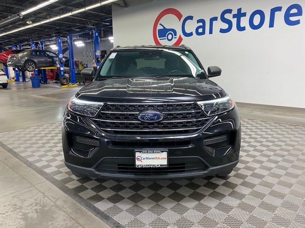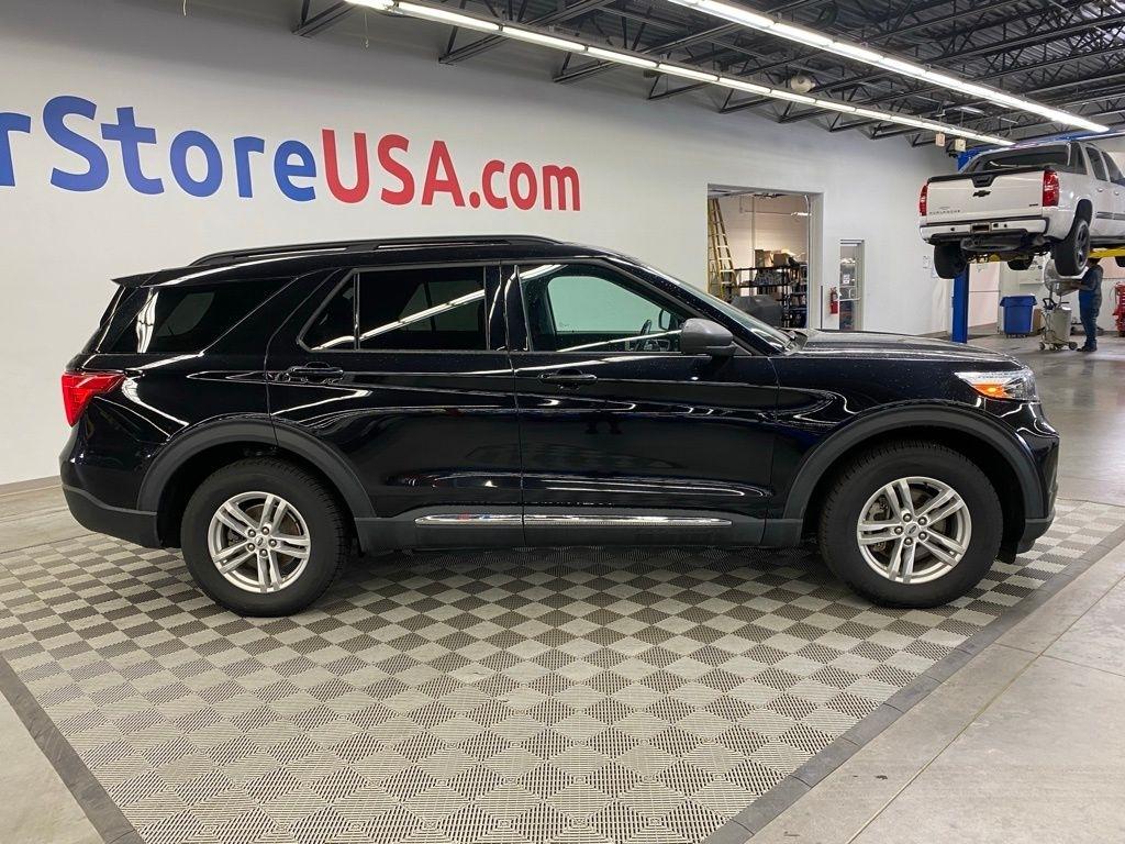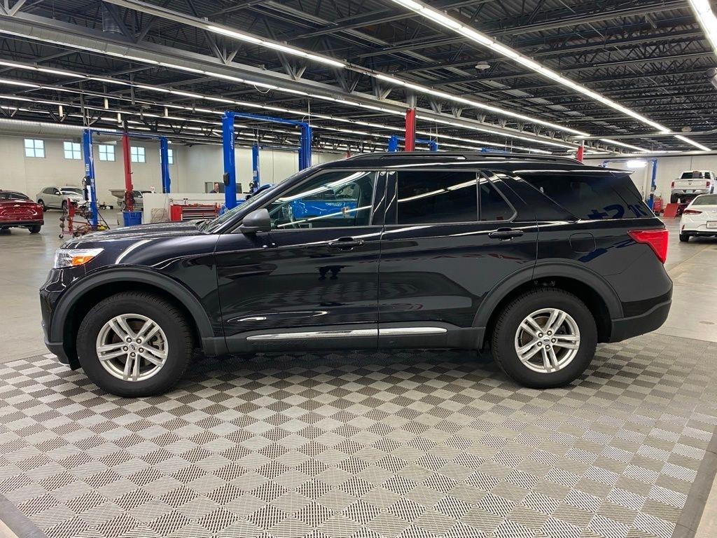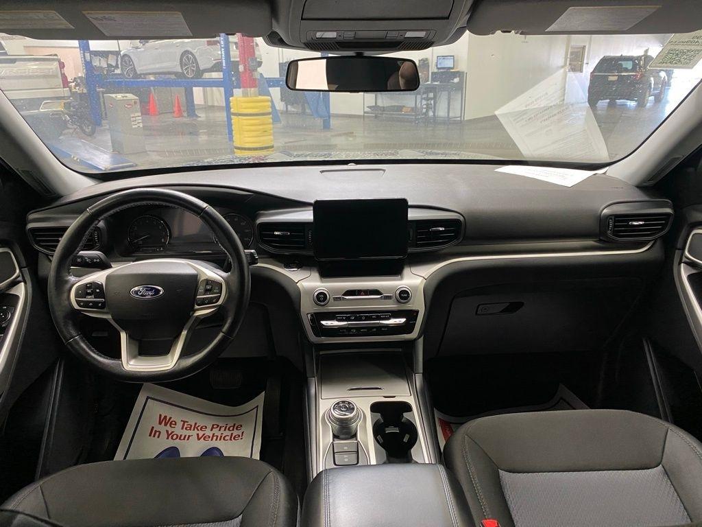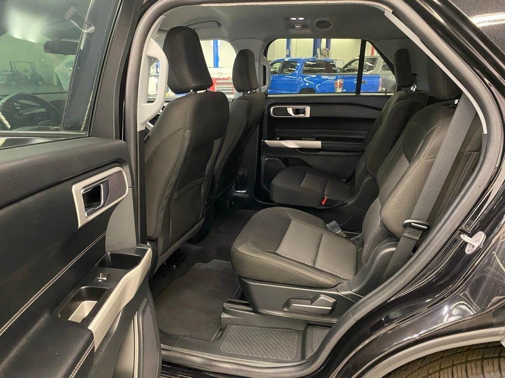 CARFAX One-Owner. THIS VEHICLE IS EQUIPPED WITH THE FOLLOWING FEATURES AND OPTIONS Equipment Group 200A, 1st Row Heated Seats, 3.58 Non-Limited-Slip Rear Axle Ratio, 3rd row seats: bench, 4-Wheel Disc Brakes, 6 Speakers, ABS brakes, Air Conditioning, Alloy wheels, AM/FM radio: SiriusXM, AM/FM Stereo, Auto High-beam Headlights, Automatic temperature control, Brake assist, Bumpers: body-color, Compass, Delay-off headlights, Driver door bin, Driver vanity mirror, Dual front impact airbags, Dual front side impact airbags, Electronic Stability Control, Emergency communication system: SYNC 3 911 Assist, Engine Block Heater, Exterior Parking Camera Rear, FordPass Connect, Four wheel independent suspension, Front & Second Row Floor Liners (16B), Front anti-roll bar, Front Bucket Seats, Front Center Armrest, Front dual zone A/C, Front License Plate Bracket, Front reading lights, Fully automatic headlights, Heated door mirrors, Heated front seats, Illuminated entry, Knee airbag, Leather steering wheel, Low tire pressure warning, Occupant sensing airbag, Outside temperature display, Overhead airbag, Overhead console, Panic alarm, Passenger door bin, Passenger vanity mirror, Power door mirrors, Power driver seat, Power Liftgate, Power passenger seat, Power steering, Power windows, Rear air conditioning, Rear anti-roll bar, Rear reading lights, Rear window defroster, Rear window wiper, Remote keyless entry, Roof rack: rails only, Security system, Speed control, Speed-sensing steering, Speed-Sensitive Wipers, Split folding rear seat, Spoiler, Steering wheel mounted audio controls, SYNC 3 Communications & Entertainment System, SYNC 3/Apple CarPlay/Android Auto, Tachometer, Telescoping steering wheel, Tilt steering wheel, Traction control, Trip computer, Unique Cloth Captain's Chairs, Variably intermittent wipers, and Wheels: 18" 5-Spoke Silver-Painted Aluminum. Black Metallic 2022 Ford Explorer XLT 4WD 10-Speed Automatic 2.3L EcoBoost I-4