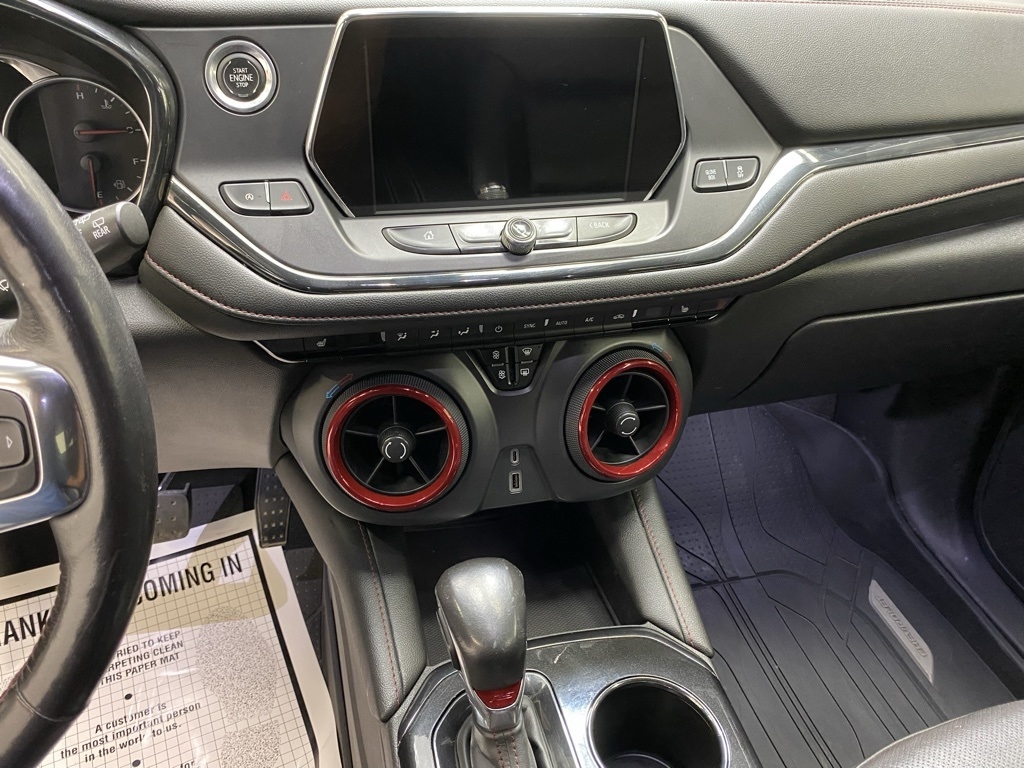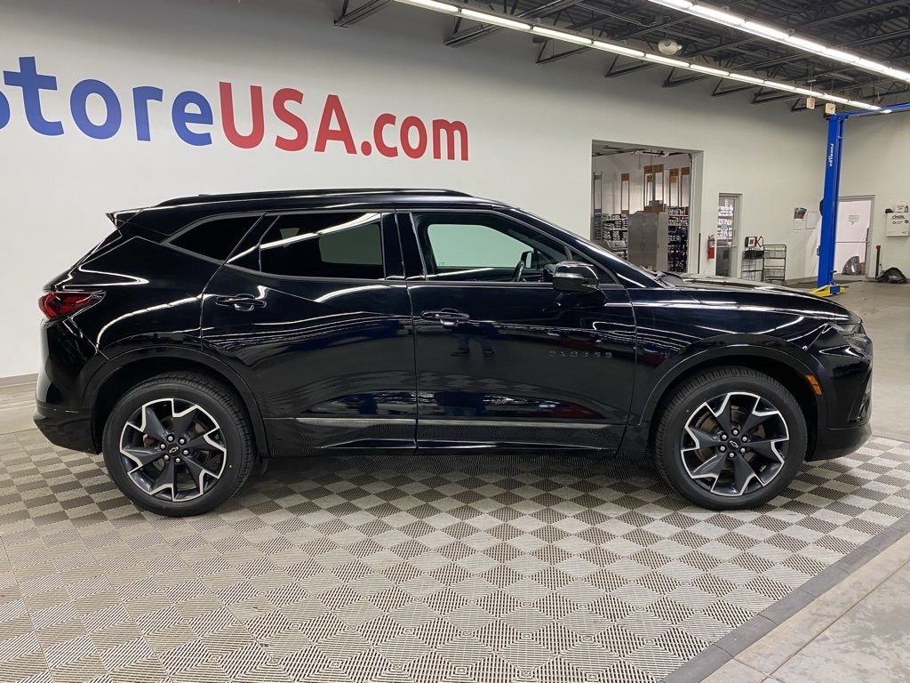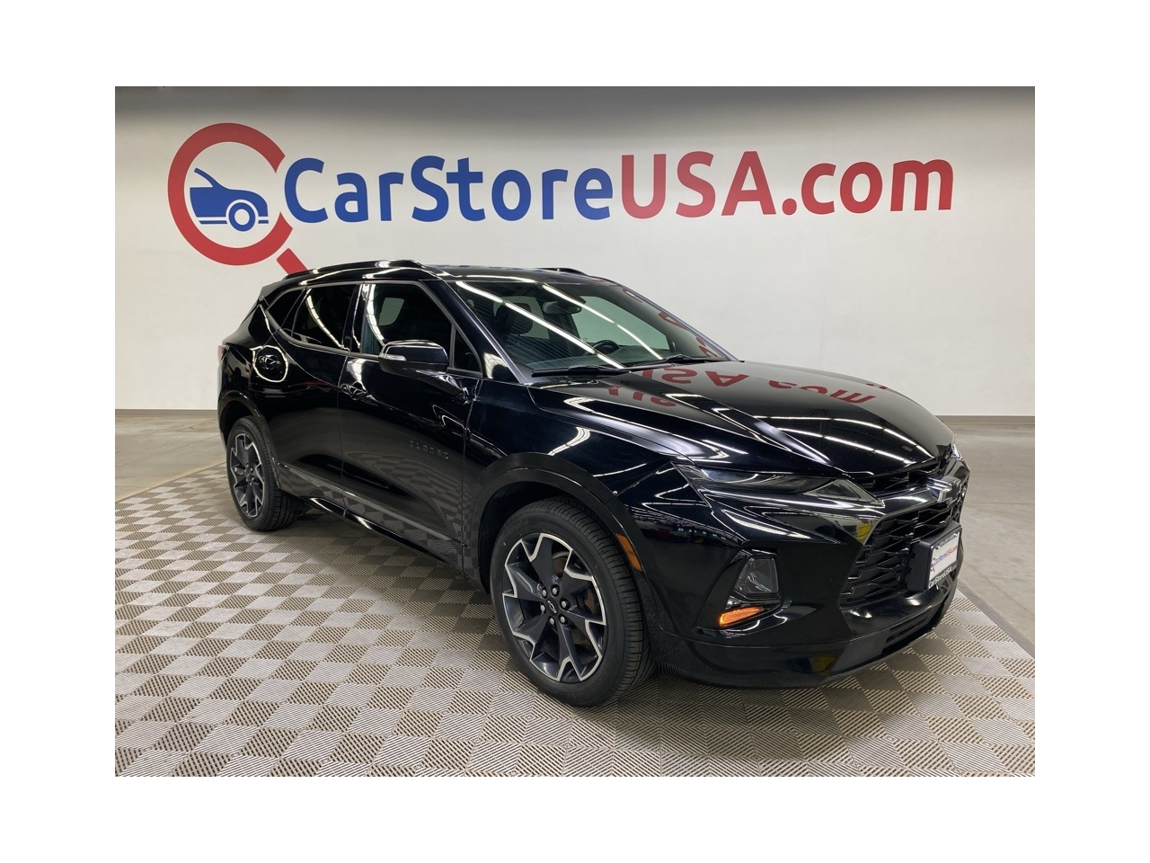 CARFAX One-Owner. THIS VEHICLE IS EQUIPPED WITH THE FOLLOWING FEATURES AND OPTIONS Preferred Equipment Group 1RS, 155 Amp Alternator, 3.49 Final Drive Axle Ratio, 4-Wheel Disc Brakes, 6 Speakers, 6-Speaker Audio System Feature, 6-Way Power Front Passenger Seat Adjuster, ABS brakes, Air Conditioning, Alloy wheels, AM/FM radio: SiriusXM, Apple CarPlay/Android Auto, Auto-dimming door mirrors, Auto-dimming Rear-View mirror, Automatic temperature control, Brake assist, Bumpers: body-color, Child-Seat-Sensing Airbag, Compass, Delay-off headlights, Driver door bin, Driver vanity mirror, Dual front impact airbags, Dual front side impact airbags, Electronic Stability Control, Emergency communication system: OnStar and Chevrolet connected services capable, Exterior Parking Camera Rear, Four wheel independent suspension, Front anti-roll bar, Front Bucket Seats, Front Center Armrest, Front dual zone A/C, Front reading lights, Fully automatic headlights, Garage door transmitter, Heated door mirrors, Heated Driver & Front Passenger Seats, Heated front seats, Heated steering wheel, High-Intensity Discharge Headlights, Illuminated entry, Knee airbag, Leather Shift Knob, Low tire pressure warning, Navigation System, Occupant sensing airbag, Outside temperature display, Overhead airbag, Overhead console, Panic alarm, Passenger door bin, Passenger vanity mirror, Perforated Leather-Appointed Seat Trim, Power door mirrors, Power driver seat, Power Liftgate, Power passenger seat, Power steering, Power windows, Radio data system, Radio: Chevrolet Infotainment 3 Plus System, Rear anti-roll bar, Rear reading lights, Rear seat center armrest, Rear window defroster, Rear window wiper, Remote keyless entry, Ride & Handling Suspension, Security system, SiriusXM w/360L, Speed control, Speed-sensing steering, Split folding rear seat, Spoiler, Steering wheel mounted audio controls, Tachometer, Telescoping steering wheel, Tilt steering wheel, Traction control, Trip computer, Turn signal indicator mirrors, Variably intermittent wipers, Voltmeter, and Wheels: 20" Dark Android Machined-Face Aluminum. Clean CARFAX. Black 2020 Chevrolet Blazer RS FWD 9-Speed Automatic 3.6L V6 SIDI DOHC VVT