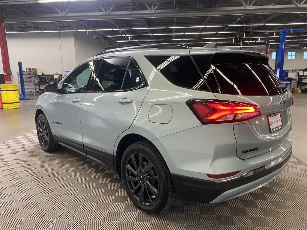 CARFAX One-Owner. THIS VEHICLE IS EQUIPPED WITH THE FOLLOWING FEATURES AND OPTIONS Preferred Equipment Group 1RS, 19" Aluminum Wheels, 2 Rear USB Charging-Only Ports, 2 USB Ports & Auxiliary Input Jack, 2-Way Power Driver Lumbar Control Seat Adjuster, 3.87 Final Drive Axle Ratio, 4-Wheel Disc Brakes, 6 Speaker Audio System Feature, 6 Speakers, 8-Way Power Driver Seat Adjuster, ABS brakes, Air Conditioning, Alloy wheels, AM/FM radio: SiriusXM, Auto High-beam Headlights, Automatic temperature control, Bluetooth® For Phone, Brake assist, Bumpers: body-color, Compass, Delay-off headlights, Driver door bin, Driver vanity mirror, Dual front impact airbags, Dual front side impact airbags, Electronic Stability Control, Emergency communication system: OnStar and Chevrolet connected services capable, Four wheel independent suspension, Front anti-roll bar, Front Bucket Seats, Front Center Armrest, Front dual zone A/C, Front Passenger 4-Way Manual Seat Adjuster, Front reading lights, Fully automatic headlights, Heated door mirrors, Heated Driver & Front Passenger Seats, Heated front seats, Illuminated entry, Leather steering wheel, Low tire pressure warning, Not Equipped w/Driver & Fr Pass Heated Seats, Occupant sensing airbag, Outside temperature display, Overhead airbag, Overhead console, Panic alarm, Passenger door bin, Passenger vanity mirror, Power door mirrors, Power driver seat, Power Liftgate, Power steering, Power windows, Premium audio system: Chevrolet Infotainment 3, Premium Cloth Seat Trim, Radio data system, Radio: Chevrolet Infotainment 3 System w/AM/FM, Rear anti-roll bar, Rear reading lights, Rear seat center armrest, Rear window defroster, Rear window wiper, Remote keyless entry, Roof rack: rails only, Security system, SiriusXM Radio, Speed control, Speed-sensing steering, Split folding rear seat, Spoiler, Steering wheel mounted audio controls, Tachometer, Telescoping steering wheel, Tilt steering wheel, Traction control, Trip computer, Variably intermittent wipers, and Wireless Apple CarPlay/Wireless Android Auto. Clean CARFAX. Seaglass Blue Metallic 2022 Chevrolet Equinox RS AWD 6-Speed Automatic Electronic with Overdrive 1.5L DOHC