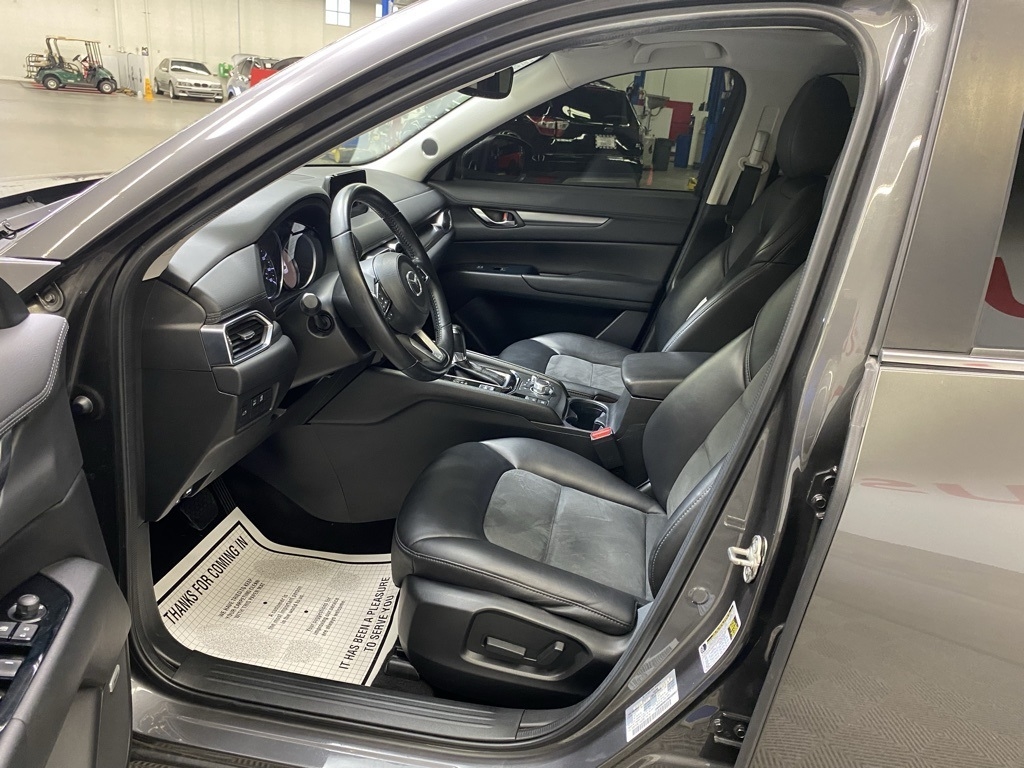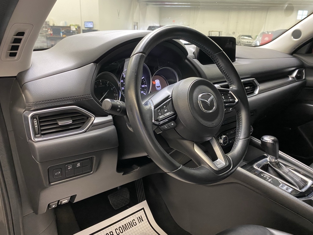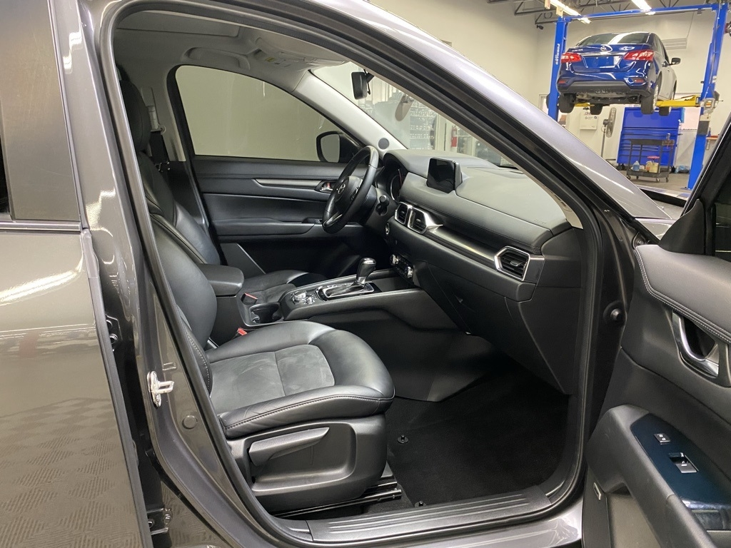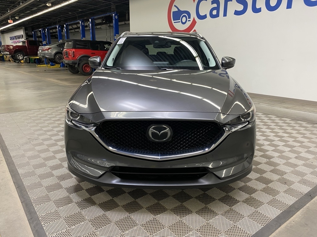 THIS VEHICLE IS EQUIPPED WITH THE FOLLOWING FEATURES AND OPTIONS Preferred Equipment Package (Auto Dimming Rearview Mirror w/HomeLink, Bose 10-Speaker Audio Sound System, Mazda Navigation System, Power Rear Liftgate, and Power Sliding-Glass Moonroof w/Interior Sunshade), 19 x 7J Aluminum Alloy Wheels, 4-Wheel Disc Brakes, 4.325 Axle Ratio, 6 Speakers, ABS brakes, Air Conditioning, Alloy wheels, AM/FM radio, Auto High-beam Headlights, Automatic temperature control, Brake assist, Bumpers: body-color, Delay-off headlights, Driver door bin, Driver vanity mirror, Dual front impact airbags, Dual front side impact airbags, Electronic Stability Control, Emergency communication system, Exterior Parking Camera Rear, Four wheel independent suspension, Front anti-roll bar, Front Bucket Seats, Front Center Armrest, Front dual zone A/C, Front reading lights, Fully automatic headlights, Heated front seats, Heated Front Sport Shape Seats, Illuminated entry, Leather Shift Knob, Leatherette Seat Trim, Low tire pressure warning, Machine Gray Metallic Paint, Occupant sensing airbag, Outside temperature display, Overhead airbag, Overhead console, Panic alarm, Passenger door bin, Passenger vanity mirror, Power door mirrors, Power driver seat, Power steering, Power windows, Radio data system, Radio: AM/FM/HD Audio System, Rain sensing wipers, Rear anti-roll bar, Rear reading lights, Rear seat center armrest, Rear window defroster, Rear window wiper, Remote keyless entry, Roof Rack Side Rails, Speed control, Speed-sensing steering, Split folding rear seat, Spoiler, Steering wheel mounted audio controls, Tachometer, Telescoping steering wheel, Tilt steering wheel, Traction control, Trip computer, Turn signal indicator mirrors, and Variably intermittent wipers. Clean CARFAX. Machine Gray Metallic 2018 Mazda CX-5 Touring FWD 6-Speed Automatic SKYACTIV® 2.5L 4-Cylinder DOHC 16V