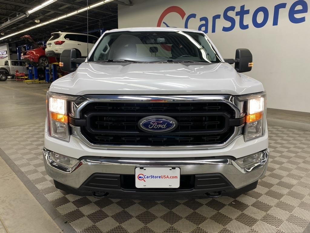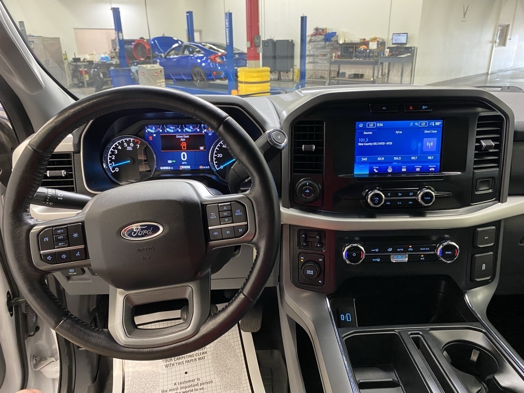THIS VEHICLE IS EQUIPPED WITH THE FOLLOWING FEATURES AND OPTIONS Equipment Group 301A Mid (8-Way Power Driver's Seat w/Power Lumbar, 8" Productivity Screen in Instrument Cluster, Class IV Trailer Hitch Receiver, Dual Zone Electronic Automatic Temperature Control, Leather-Wrapped Steering Wheel, Radio: AM/FM SiriusXM w/360L, Rear Under-Seat Storage, SecuriCode Drivers Side Keyless-Entry Keypad, and SYNC 4 w/Enhanced Voice Recognition), Trailer Tow Package (Integrated Trailer Brake Controller and Pro Trailer Backup Assist), 3.31 Axle Ratio, 4-Wheel Disc Brakes, 6 Speakers, ABS brakes, Air Conditioning, Alloy wheels, AM/FM radio, Auto High-beam Headlights, Auto Start-Stop Removal, Black Platform Running Boards, Brake assist, Bumpers: chrome, Cloth 40/20/40 Front Seat, Compass, Delay-off headlights, Driver door bin, Driver vanity mirror, Dual front impact airbags, Dual front side impact airbags, Electronic Stability Control, Emergency communication system: SYNC 4 911 Assist, Engine Block Heater, Extended Range 36 Gallon Fuel Tank, Exterior Parking Camera Rear, Front anti-roll bar, Front Center Armrest w/Storage, Front fog lights, Front License Plate Bracket, Front reading lights, Front wheel independent suspension, Fully automatic headlights, Heated door mirrors, Illuminated entry, LED Sideview Mirror Spotlights, Low tire pressure warning, Manual-Folding Heated Pwr Glass Trailer Tow Mirror, Occupant sensing airbag, Outside temperature display, Overhead airbag, Overhead console, Panic alarm, Passenger door bin, Passenger vanity mirror, Power door mirrors, Power steering, Power windows, Power-Adjustable Pedals, Radio data system, Radio: AM/FM Stereo w/6 Speakers, Rear reading lights, Rear step bumper, Rear window defroster, Remote keyless entry, Security system, Speed control, Speed-sensing steering, Split folding rear seat, Steering wheel mounted audio controls, SYNC 4, Tachometer, Telescoping steering wheel, Tilt steering wheel, Traction control, Tray Style Floor Liner, Trip computer, Variably intermittent wipers, Voltmeter, and Wheels: 17" Silver Painted Aluminum. Oxford White 2022 Ford F-150 XLT 4WD 10-Speed Automatic 3.5L V6 EcoBoost