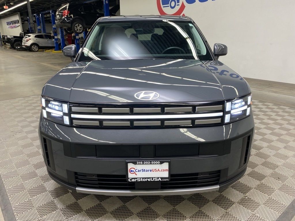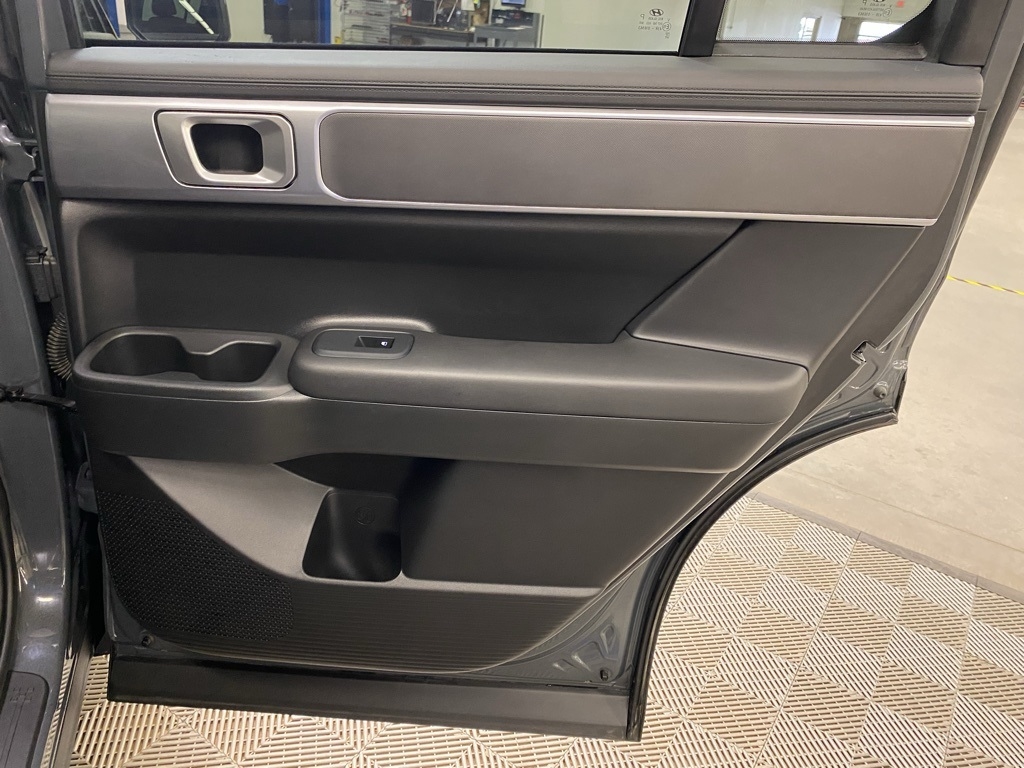 THIS VEHICLE IS EQUIPPED WITH THE FOLLOWING FEATURES AND OPTIONS Option Group 01, 18" x 7.5J Alloy Wheels, 3rd row seats: bench, 4-Wheel Disc Brakes, 6 Speakers, ABS brakes, Air Conditioning, Alloy wheels, AM/FM radio: SiriusXM, Apple CarPlay & Android Auto, Auto High-beam Headlights, Axle Ratio: 3.316, Brake assist, Bumpers: body-color, Delay-off headlights, Driver door bin, Driver vanity mirror, Dual front impact airbags, Dual front side impact airbags, Electronic Stability Control, Emergency communication system, Exterior Parking Camera Rear, Four wheel independent suspension, Front anti-roll bar, Front Bucket Seats, Front Center Armrest, Front reading lights, Fully automatic headlights, Heated door mirrors, Illuminated entry, Knee airbag, Leather steering wheel, Low tire pressure warning, Occupant sensing airbag, Outside temperature display, Overhead airbag, Overhead console, Panic alarm, Passenger door bin, Passenger vanity mirror, Power door mirrors, Power Liftgate, Power steering, Power windows, Radio: AM/FM/HD Display Audio, Rear anti-roll bar, Rear seat center armrest, Rear side impact airbag, Rear window defroster, Rear window wiper, Remote keyless entry, Security system, Speed control, Speed-sensing steering, Split folding rear seat, Spoiler, Steering wheel mounted audio controls, Tachometer, Telescoping steering wheel, Tilt steering wheel, Traction control, Trip computer, Variably intermittent wipers, and YES Essentials Stain-Resistant Cloth Seat Trim. Clean CARFAX. Ecotronic Gray 2024 Hyundai Santa Fe SE AWD Shiftronic 2.5L I4