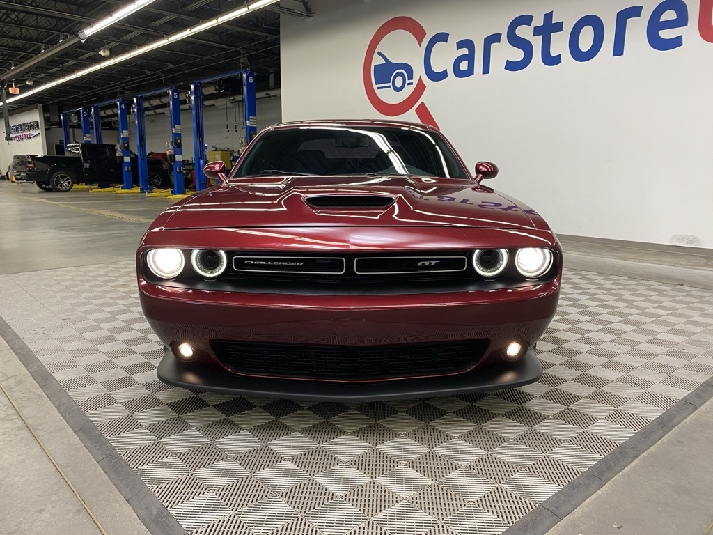THIS VEHICLE IS EQUIPPED WITH THE FOLLOWING FEATURES AND OPTIONS Quick Order Package 2EL GT, 4-Wheel Disc Brakes, 6 Speakers, ABS brakes, Air Conditioning, Alloy wheels, AM/FM radio, Anti-whiplash front head restraints, Apple CarPlay, Apple CarPlay/Android Auto, Auto-dimming Rear-View mirror, Automatic temperature control, Brake assist, Bumpers: body-color, Compass, Delay-off headlights, Driver door bin, Driver vanity mirror, Dual front impact airbags, Dual front side impact airbags, Electronic Stability Control, Four wheel independent suspension, Front anti-roll bar, Front Bucket Seats, Front Center Armrest, Front dual zone A/C, Front fog lights, Front License Plate Bracket, Front reading lights, Fully automatic headlights, Garage door transmitter, Google Android Auto, GPS Antenna Input, Heated door mirrors, Houndstooth Cloth Performance Seats, Illuminated entry, Integrated Center Stack Radio, Integrated Voice Command w/Bluetooth, Leather Shift Knob, Low tire pressure warning, Media Hub (2 USB, AUX), Outside temperature display, Overhead airbag, Overhead console, Panic alarm, ParkView Rear Back-Up Camera, Passenger door bin, Passenger vanity mirror, Performance Steering, Power door mirrors, Power driver seat, Power steering, Power windows, Radio data system, Radio: Uconnect 4 w/7" Display, Rear anti-roll bar, Rear reading lights, Rear seat center armrest, Rear window defroster, Remote keyless entry, Security system, Speed control, Speed-sensing steering, Split folding rear seat, Spoiler, Sport steering wheel, Steering wheel mounted audio controls, Tachometer, Telescoping steering wheel, Tilt steering wheel, Traction control, Trip computer, USB Host Flip, Variably intermittent wipers, and Wheels: 20" x 8.0" Satin Carbon Painted. Clean CARFAX. Octane Red Pearlcoat 2020 Dodge Challenger GT RWD 8-Speed Automatic 3.6L V6 24V VVT
