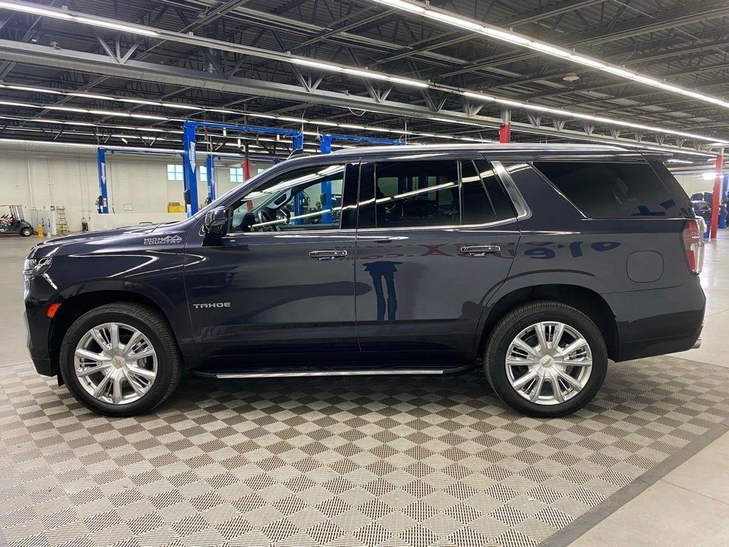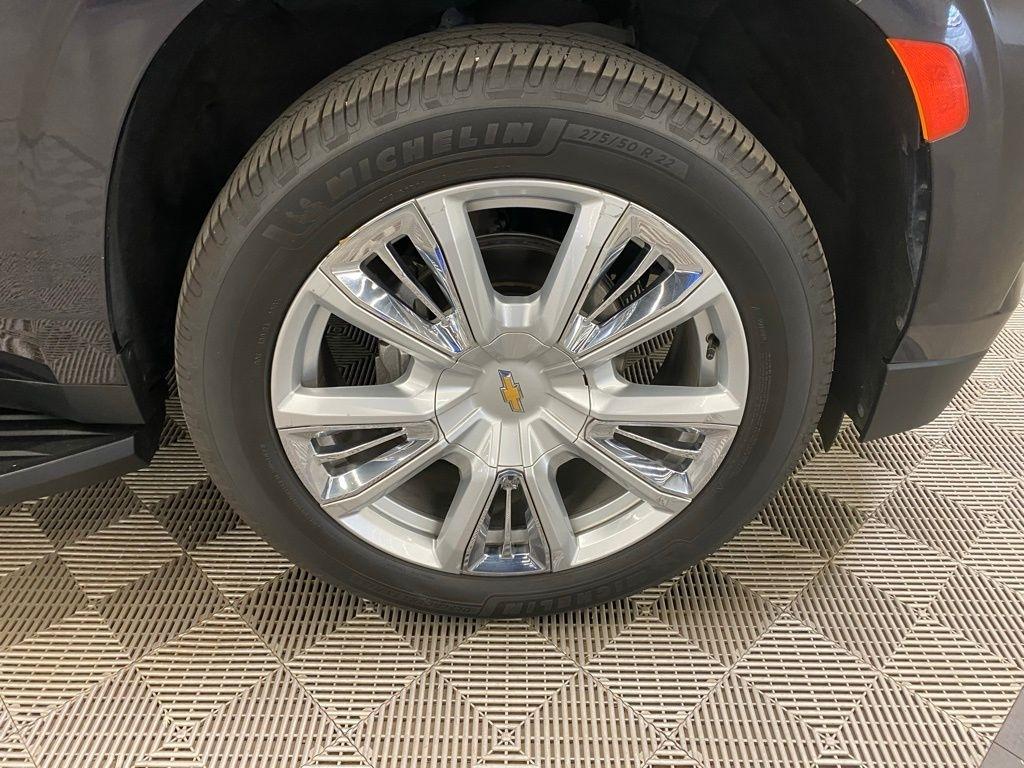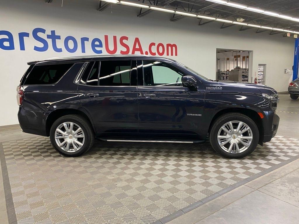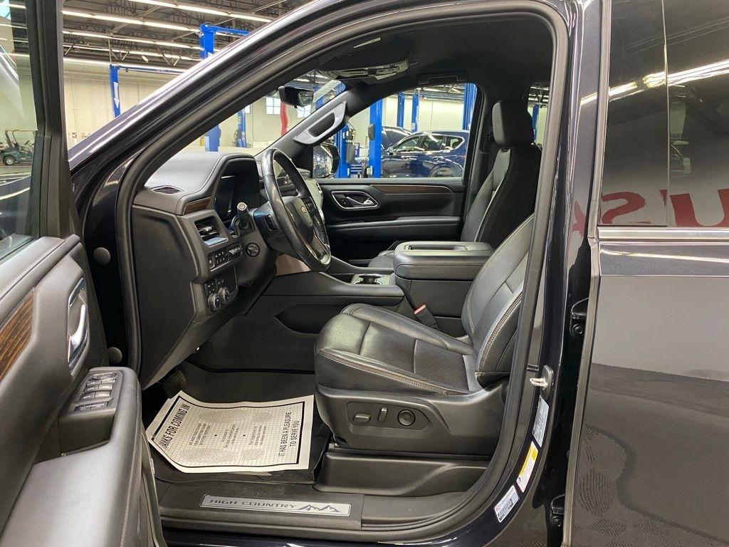 CARFAX One-Owner. THIS VEHICLE IS EQUIPPED WITH THE FOLLOWING FEATURES AND OPTIONS License Plate Front Mounting Package, Preferred Equipment Group 3LZ (15" Diagonal Multi-Color Head-Up Display, 1st & 2nd Row Color-Keyed Carpeted Floor Mats, 2-Speed Active Electronic AutoTrac Transfer Case, 3rd Row 60/40 Power-Folding Split-Bench Seat, Automatic Stop/Start, Bose 10-Speaker Centerpoint Surround Audio Sys Ft, Bright Front & Rear Door Sill Plates, Chrome Door Handles w/Body-Color Strip, Color-Keyed Carpeting Floor Covering, Driver & Front Outboard Passenger Airbags, Dual Exhaust System, Enhanced Driver Information Center, Floor Console, Hands-Free Rear Power Programmable Liftgate, HD Surround Vision, Heated 2nd Row Outboard Seats, Heated Steering Wheel, Hill Descent Control, Infotainment Display, Inside Rearview Auto-Dimming Rear Camera Mirror, Lane Change Alert w/Side Blind Zone Alert, Leather-Wrapped Steering Wheel, LED Daytime Running Lamps, Memory Settings, Outside Heated Power-Adjustable Mirrors, Power Release 2nd Row Bucket Seats, Power Tilt & Telescopic Steering Column, Rear Camera Mirror Washer, Rear Cross Traffic Alert, Rear Pedestrian Alert, Remote Start, Safety Alert Seat, SiriusXM Radio w/360L, Start/Stop System Disable Button, Universal Home Remote, and Wireless Charging), 10 Speakers, 3.23 Rear Axle Ratio, 3rd row seats: split-bench, 4-Wheel Disc Brakes, ABS brakes, Adaptive suspension, Air Conditioning, Alloy wheels, AM/FM radio: SiriusXM with 360L, Apple CarPlay/Android Auto, Auto High-beam Headlights, Auto-dimming door mirrors, Auto-dimming Rear-View mirror, Auto-leveling suspension, Automatic temperature control, Brake assist, Bumpers: body-color, Compass, Delay-off headlights, Driver door bin, Driver vanity mirror, Dual front impact airbags, Dual front side impact airbags, Electronic Stability Control, Emergency communication system: OnStar and Chevrolet connected services capable, Four wheel independent suspension, Front & Rear Black Bowtie Emblems (LPO), Front anti-roll bar, Front Bucket Seats, Front Center Armrest, Front dual zone A/C, Front High-Back Reclining Bucket Seats, Front reading lights, Fully automatic headlights, Garage door transmitter, Heads-Up Display, Heated & Ventilated Driver & Front Passenger Seats, Heated door mirrors, Heated Driver & Front Passenger Seats, Heated front seats, Heated rear seats, Heated steering wheel, Illuminated entry, Leather steering wheel, Low tire pressure warning, Magnetic Ride Control Suspension, Memory seat, Navigation System, Not Equipped w/4-Way Driver & Fr Pass Pwr Lumbar, Not Equipped w/Steering Column Lock, Occupant sensing airbag, Outside temperature display, Overhead airbag, Overhead console, Panic alarm, Passenger door bin, Passenger vanity mirror, Perforated Leather Seat Trim, Power door mirrors, Power driver seat, Power Liftgate, Power passenger seat, Power steering, Power windows, Premium audio system: Chevrolet Infotainment System 3, Radio: Chevrolet Infotainment 3 Premium System, Rain sensing wipers, Rear air conditioning, Rear anti-roll bar, Rear reading lights, Rear window defroster, Rear window wiper, Remote keyless entry, Roof rack: rails only, Security system, Set of 4 Wheel Locks (LPO), Speed control, Speed-sensing steering, Split folding rear seat, Spoiler, Steering wheel memory, Steering wheel mounted audio controls, Tachometer, Telescoping steering wheel, Tilt steering wheel, Traction control, Trip computer, Turn signal indicator mirrors, Variably intermittent wipers, Ventilated front seats, Voltmeter, and Wheels: 22" x 9" Sterling Silver Premium Painted. Dark Ash Metallic 2022 Chevrolet Tahoe High Country 4WD 10-Speed Automatic with Overdrive EcoTec3 6.2L V8