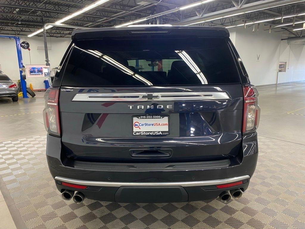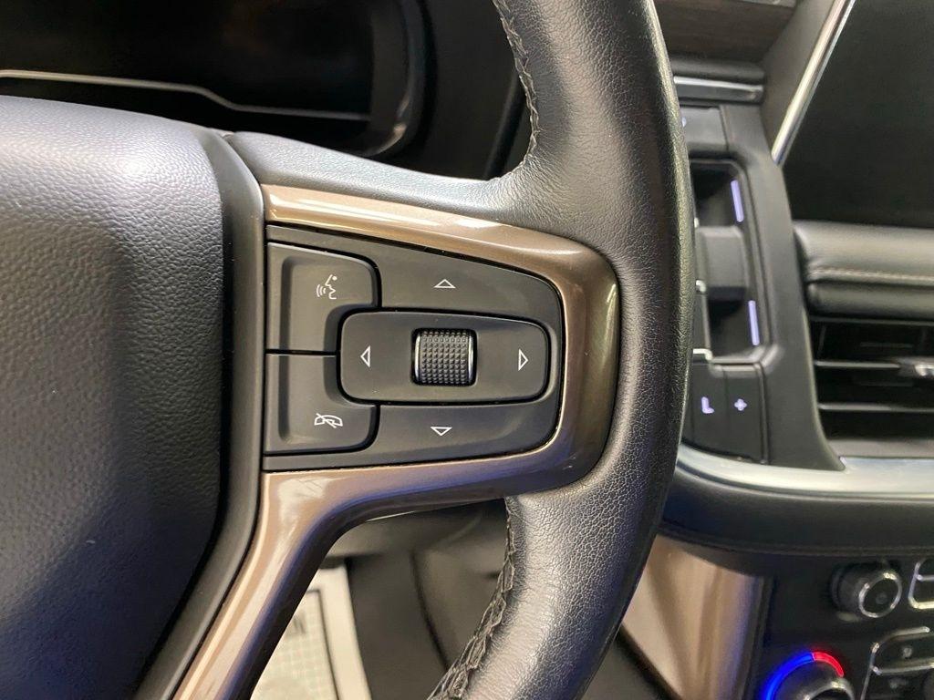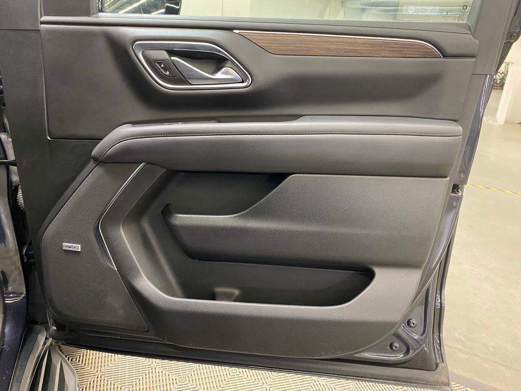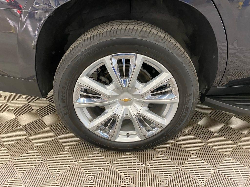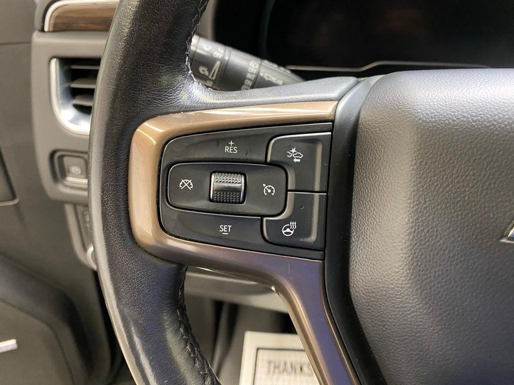CARFAX One-Owner. THIS VEHICLE IS EQUIPPED WITH THE FOLLOWING FEATURES AND OPTIONS License Plate Front Mounting Package, Preferred Equipment Group 3LZ (15" Diagonal Multi-Color Head-Up Display, 1st & 2nd Row Color-Keyed Carpeted Floor Mats, 2-Speed Active Electronic AutoTrac Transfer Case, 3rd Row 60/40 Power-Folding Split-Bench Seat, Automatic Stop/Start, Bose 10-Speaker Centerpoint Surround Audio Sys Ft, Bright Front & Rear Door Sill Plates, Chrome Door Handles w/Body-Color Strip, Color-Keyed Carpeting Floor Covering, Driver & Front Outboard Passenger Airbags, Dual Exhaust System, Enhanced Driver Information Center, Floor Console, Hands-Free Rear Power Programmable Liftgate, HD Surround Vision, Heated 2nd Row Outboard Seats, Heated Steering Wheel, Hill Descent Control, Infotainment Display, Inside Rearview Auto-Dimming Rear Camera Mirror, Lane Change Alert w/Side Blind Zone Alert, Leather-Wrapped Steering Wheel, LED Daytime Running Lamps, Memory Settings, Outside Heated Power-Adjustable Mirrors, Power Release 2nd Row Bucket Seats, Power Tilt & Telescopic Steering Column, Rear Camera Mirror Washer, Rear Cross Traffic Alert, Rear Pedestrian Alert, Remote Start, Safety Alert Seat, SiriusXM Radio w/360L, Start/Stop System Disable Button, Universal Home Remote, and Wireless Charging), 10 Speakers, 3.23 Rear Axle Ratio, 3rd row seats: split-bench, 4-Wheel Disc Brakes, ABS brakes, Adaptive suspension, Air Conditioning, Alloy wheels, AM/FM radio: SiriusXM with 360L, Apple CarPlay/Android Auto, Auto High-beam Headlights, Auto-dimming door mirrors, Auto-dimming Rear-View mirror, Auto-leveling suspension, Automatic temperature control, Brake assist, Bumpers: body-color, Compass, Delay-off headlights, Driver door bin, Driver vanity mirror, Dual front impact airbags, Dual front side impact airbags, Electronic Stability Control, Emergency communication system: OnStar and Chevrolet connected services capable, Four wheel independent suspension, Front & Rear Black Bowtie Emblems (LPO), Front anti-roll bar, Front Bucket Seats, Front Center Armrest, Front dual zone A/C, Front High-Back Reclining Bucket Seats, Front reading lights, Fully automatic headlights, Garage door transmitter, Heads-Up Display, Heated & Ventilated Driver & Front Passenger Seats, Heated door mirrors, Heated Driver & Front Passenger Seats, Heated front seats, Heated rear seats, Heated steering wheel, Illuminated entry, Leather steering wheel, Low tire pressure warning, Magnetic Ride Control Suspension, Memory seat, Navigation System, Not Equipped w/4-Way Driver & Fr Pass Pwr Lumbar, Not Equipped w/Steering Column Lock, Occupant sensing airbag, Outside temperature display, Overhead airbag, Overhead console, Panic alarm, Passenger door bin, Passenger vanity mirror, Perforated Leather Seat Trim, Power door mirrors, Power driver seat, Power Liftgate, Power passenger seat, Power steering, Power windows, Premium audio system: Chevrolet Infotainment System 3, Radio: Chevrolet Infotainment 3 Premium System, Rain sensing wipers, Rear air conditioning, Rear anti-roll bar, Rear reading lights, Rear window defroster, Rear window wiper, Remote keyless entry, Roof rack: rails only, Security system, Set of 4 Wheel Locks (LPO), Speed control, Speed-sensing steering, Split folding rear seat, Spoiler, Steering wheel memory, Steering wheel mounted audio controls, Tachometer, Telescoping steering wheel, Tilt steering wheel, Traction control, Trip computer, Turn signal indicator mirrors, Variably intermittent wipers, Ventilated front seats, Voltmeter, and Wheels: 22" x 9" Sterling Silver Premium Painted. Dark Ash Metallic 2022 Chevrolet Tahoe High Country 4WD 10-Speed Automatic with Overdrive EcoTec3 6.2L V8