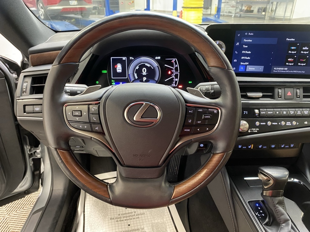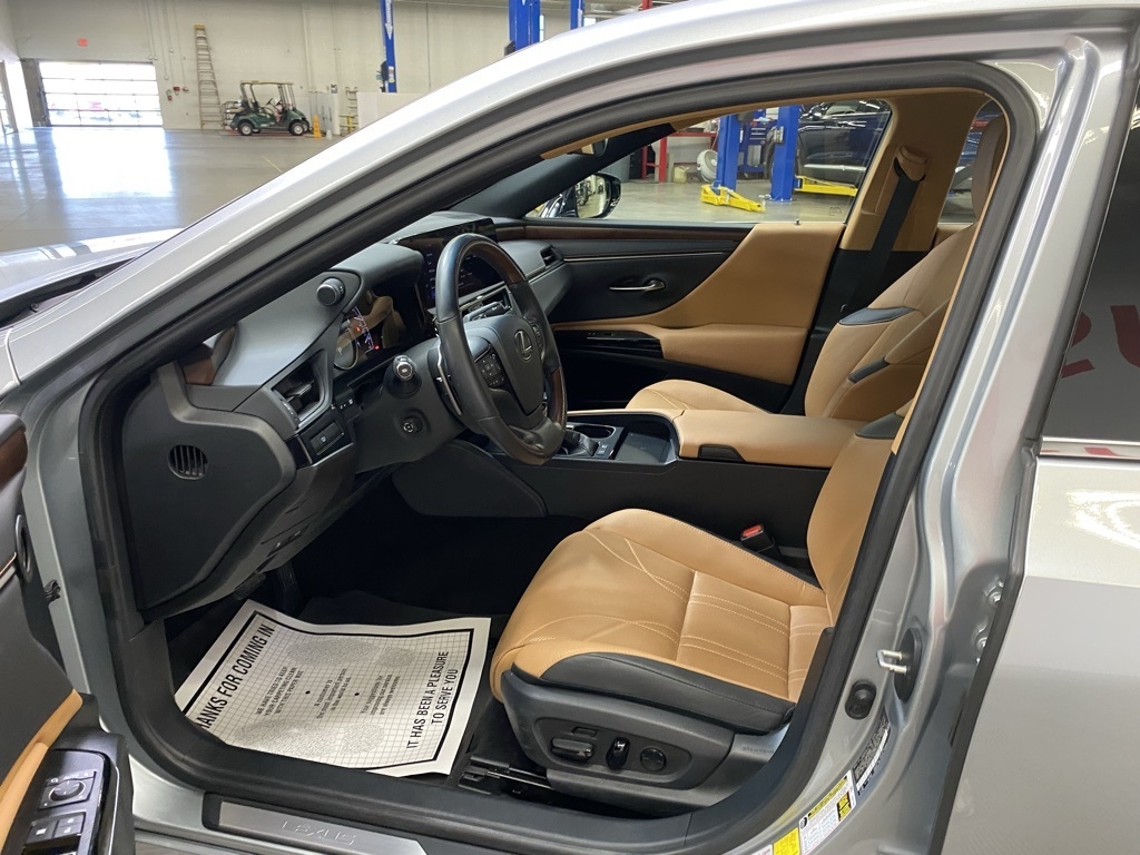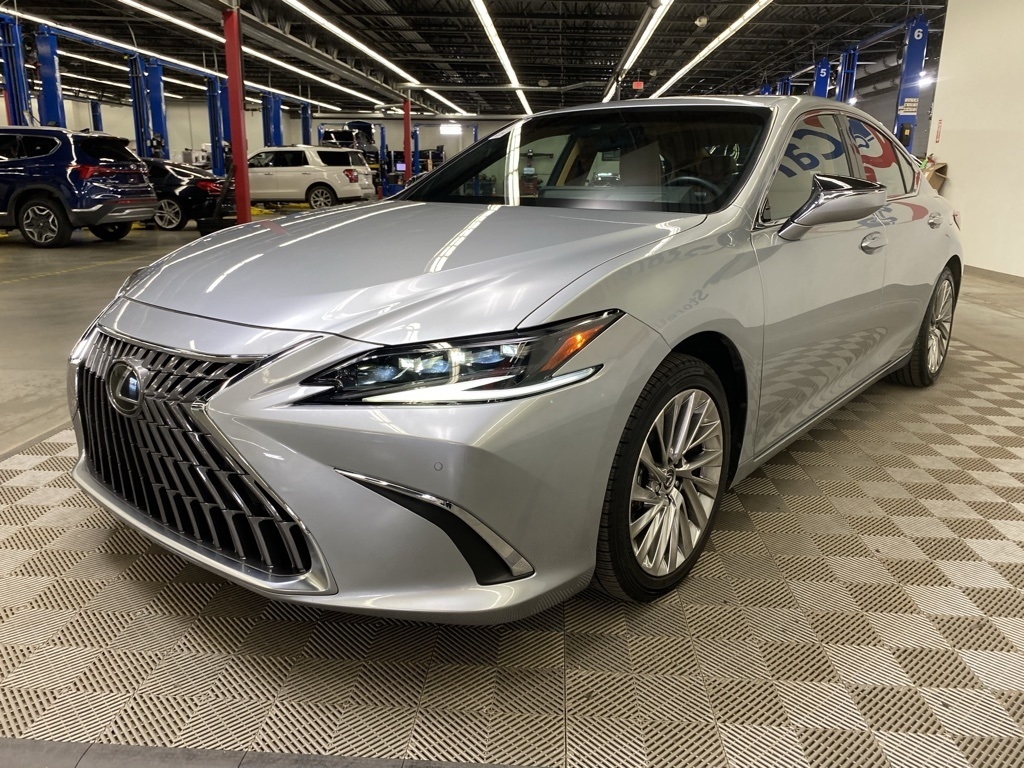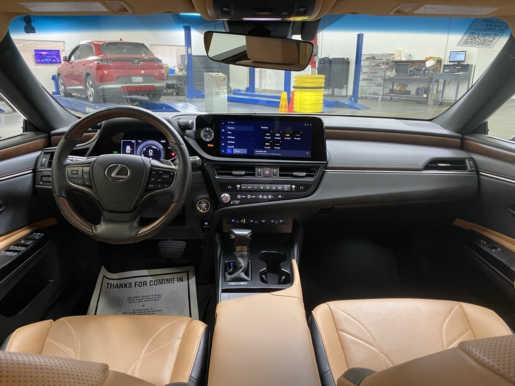 CARFAX One-Owner. THIS VEHICLE IS EQUIPPED WITH THE FOLLOWING FEATURES AND OPTIONS 10 Speakers, 14-Way Power Adjustable Heated & Vent Front Seats, 4-Wheel Disc Brakes, ABS brakes, Acoustic Side Glass, Air Conditioning, Alloy wheels, AM/FM radio: SiriusXM, Auto High-beam Headlights, Auto tilt-away steering wheel, Auto-dimming door mirrors, Auto-dimming Rear-View mirror, Automatic temperature control, Brake assist, Bumpers: body-color, Compass, Delay-off headlights, Driver door bin, Driver vanity mirror, Dual front impact airbags, Dual front side impact airbags, Electronic Stability Control, Emergency communication system, Exterior Parking Camera Rear, Four wheel independent suspension, Front & Rear Performance Rods, Front anti-roll bar, Front Bucket Seats, Front Center Armrest, Front dual zone A/C, Front reading lights, Fully automatic headlights, Garage door transmitter: HomeLink, Genuine wood dashboard insert, Genuine wood door panel insert, Heated door mirrors, Heated front seats, Heated Leather & Wood 3-Spoke Steering Wheel, Heated steering wheel, Illuminated entry, Knee airbag, Leather Shift Knob, Leather steering wheel, Low tire pressure warning, Memory seat, Occupant sensing airbag, Outside temperature display, Overhead airbag, Overhead console, Panic alarm, Passenger door bin, Passenger vanity mirror, Power door mirrors, Power driver seat, Power moonroof, Power passenger seat, Power Rear Sunshade, Power steering, Power Tilt/Telescoping Steering Wheel w/Memory, Power windows, Radio data system, Radio: Lexus Interface w/8" Multimedia Touch Scrn, Rain Sensing Wipers, Rain sensing wipers, Rear anti-roll bar, Rear reading lights, Rear seat center armrest, Rear side impact airbag, Rear Window Blind, Rear window defroster, Remote keyless entry, Security system, Semi-Aniline Leather Seat Trim, Speed control, Speed-sensing steering, Steering wheel memory, Steering wheel mounted audio controls, Tachometer, Telescoping steering wheel, Tilt steering wheel, Traction control, Trip computer, Turn signal indicator mirrors, Variably intermittent wipers, Ventilated front seats, Windshield De-Icer, Wireless Apple CarPlay/Wireless Android Auto, Wireless Charger, and Wood Trim w/Ambient Lighting. Clean CARFAX. Moonbeam Beige Metallic 2023 Lexus ES 300h Luxury FWD eCVT 2.5L I4 DOHC 16V