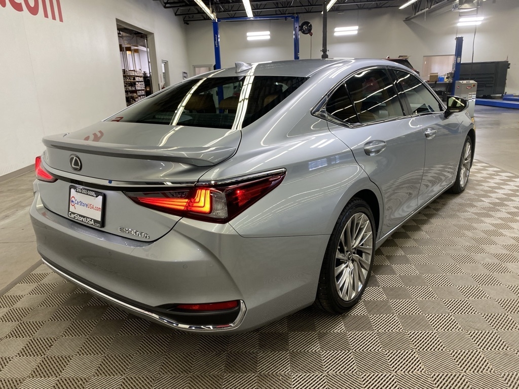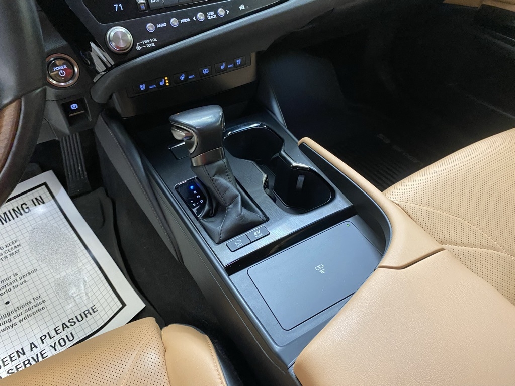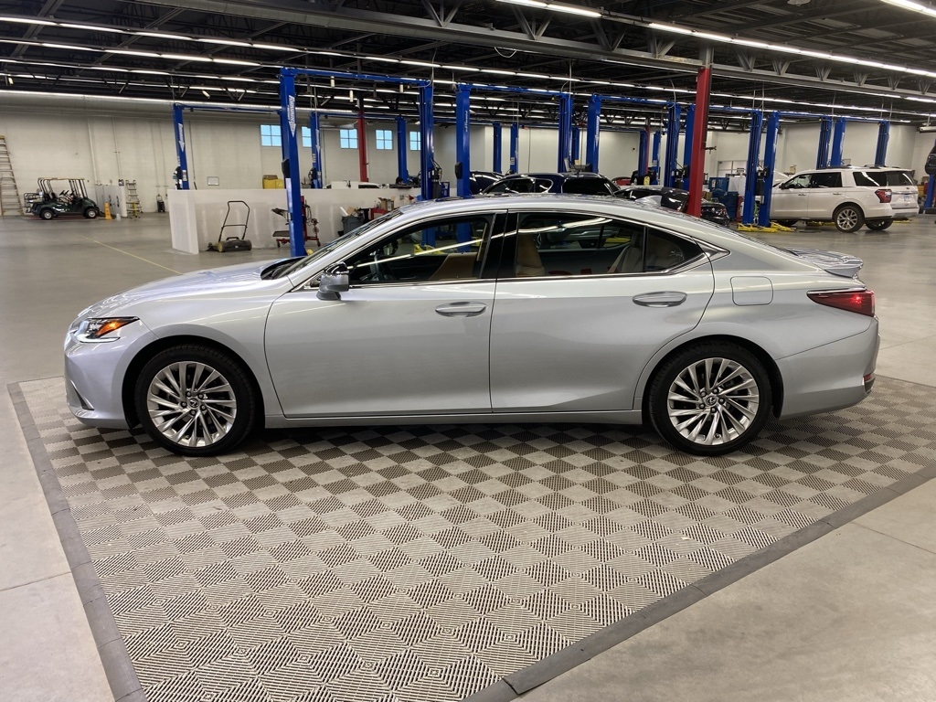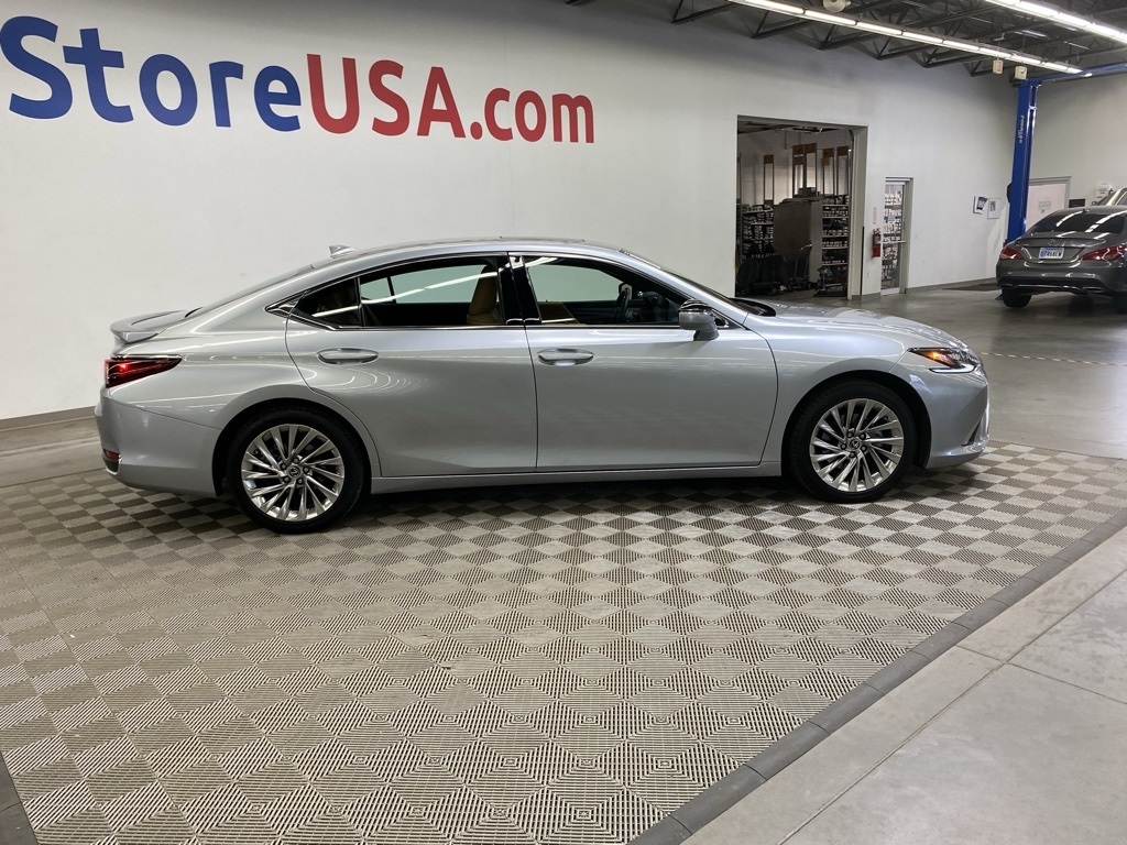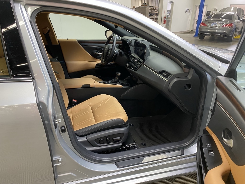 CARFAX One-Owner. THIS VEHICLE IS EQUIPPED WITH THE FOLLOWING FEATURES AND OPTIONS 10 Speakers, 14-Way Power Adjustable Heated & Vent Front Seats, 4-Wheel Disc Brakes, ABS brakes, Acoustic Side Glass, Air Conditioning, Alloy wheels, AM/FM radio: SiriusXM, Auto High-beam Headlights, Auto tilt-away steering wheel, Auto-dimming door mirrors, Auto-dimming Rear-View mirror, Automatic temperature control, Brake assist, Bumpers: body-color, Compass, Delay-off headlights, Driver door bin, Driver vanity mirror, Dual front impact airbags, Dual front side impact airbags, Electronic Stability Control, Emergency communication system, Exterior Parking Camera Rear, Four wheel independent suspension, Front & Rear Performance Rods, Front anti-roll bar, Front Bucket Seats, Front Center Armrest, Front dual zone A/C, Front reading lights, Fully automatic headlights, Garage door transmitter: HomeLink, Genuine wood dashboard insert, Genuine wood door panel insert, Heated door mirrors, Heated front seats, Heated Leather & Wood 3-Spoke Steering Wheel, Heated steering wheel, Illuminated entry, Knee airbag, Leather Shift Knob, Leather steering wheel, Low tire pressure warning, Memory seat, Occupant sensing airbag, Outside temperature display, Overhead airbag, Overhead console, Panic alarm, Passenger door bin, Passenger vanity mirror, Power door mirrors, Power driver seat, Power moonroof, Power passenger seat, Power Rear Sunshade, Power steering, Power Tilt/Telescoping Steering Wheel w/Memory, Power windows, Radio data system, Radio: Lexus Interface w/8" Multimedia Touch Scrn, Rain Sensing Wipers, Rain sensing wipers, Rear anti-roll bar, Rear reading lights, Rear seat center armrest, Rear side impact airbag, Rear Window Blind, Rear window defroster, Remote keyless entry, Security system, Semi-Aniline Leather Seat Trim, Speed control, Speed-sensing steering, Steering wheel memory, Steering wheel mounted audio controls, Tachometer, Telescoping steering wheel, Tilt steering wheel, Traction control, Trip computer, Turn signal indicator mirrors, Variably intermittent wipers, Ventilated front seats, Windshield De-Icer, Wireless Apple CarPlay/Wireless Android Auto, Wireless Charger, and Wood Trim w/Ambient Lighting. Clean CARFAX. Moonbeam Beige Metallic 2023 Lexus ES 300h Luxury FWD eCVT 2.5L I4 DOHC 16V