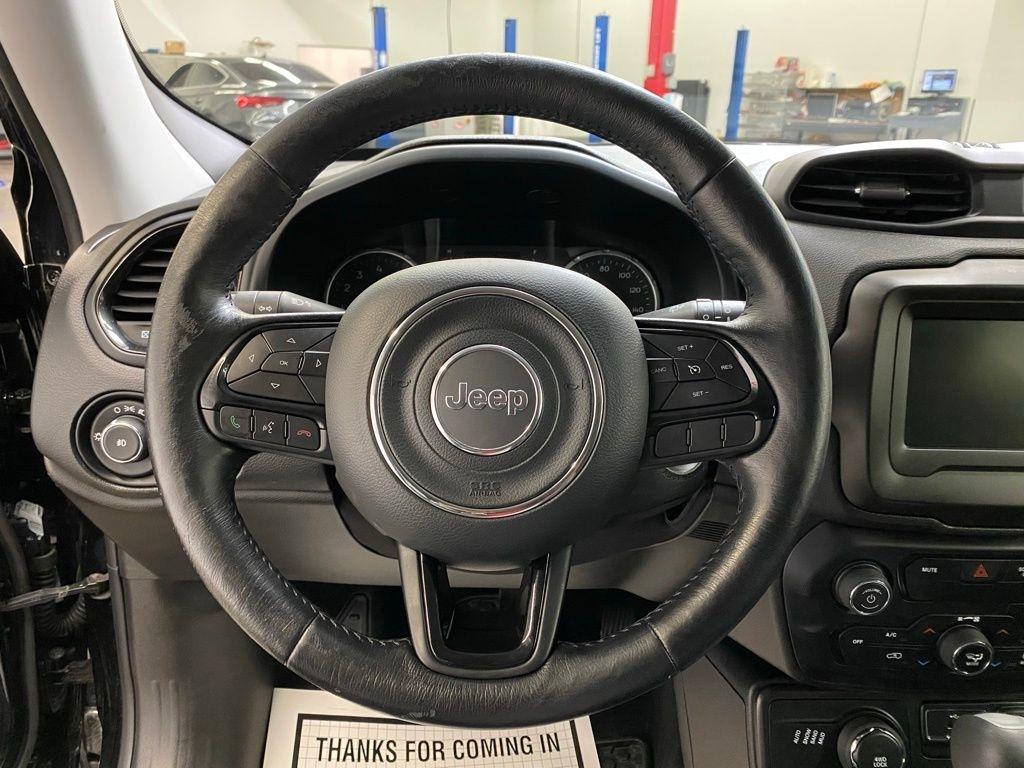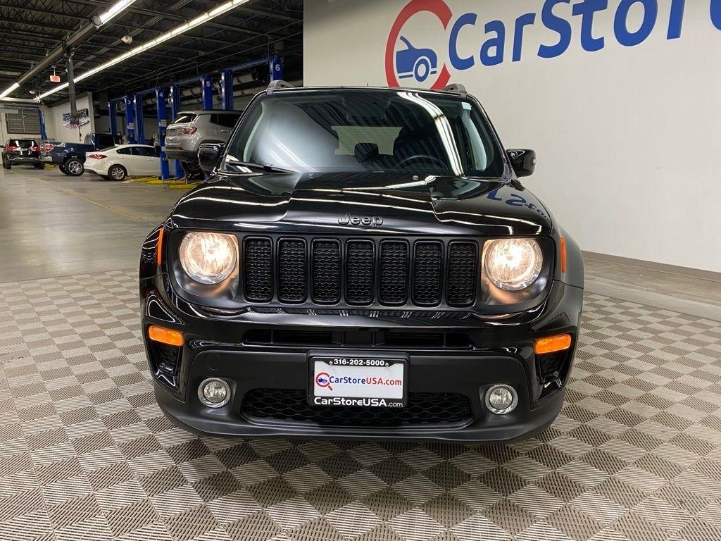 THIS VEHICLE IS EQUIPPED WITH THE FOLLOWING FEATURES AND OPTIONS Altitude Package, Cold Weather Group (All-Season Floor Mats, Heated Front Seats, Heated Steering Wheel, Leather Wrapped Steering Wheel, Rain Sensitive Windshield Wipers, and Windshield Wiper De-Icer), Passive Entry Remote Start Package (Keyless Entry w/Panic Alarm), Quick Order Package 2XM Altitude (Black Accent Stitching, Deluxe Cloth High-Back Bucket Seats, Exterior Mirrors w/Supplemental Signals, Gloss Black Exterior Accents, Vinyl Door Trim Panel, and Wheels: 17" x 7" Gloss Black), 17" x 7.0" Aluminum Wheels, 3.734 Final Drive Ratio, 4-Wheel Disc Brakes, 6 Speakers, ABS brakes, Air Conditioning, Alloy wheels, AM/FM radio: SiriusXM, Anti-whiplash front head restraints, Apple CarPlay/Android Auto, Automatic temperature control, Brake assist, Compass, Connectivity (Bridge Solution) (DISC), Delay-off headlights, Driver door bin, Driver vanity mirror, Dual front impact airbags, Dual front side impact airbags, Electronic Stability Control, Emergency communication system, Four wheel independent suspension, Front anti-roll bar, Front Bucket Seats, Front Center Armrest, Front dual zone A/C, Front fog lights, Front reading lights, Fully automatic headlights, Global Telematics Box Module (TBM) (DISC), Heated door mirrors, Illuminated entry, Knee airbag, Low tire pressure warning, Manual Adjust 4-Way Front Passenger Seat, Manufacturer's Statement of Origin, Normal Duty Suspension, Occupant sensing airbag, Outside temperature display, Overhead airbag, Panic alarm, ParkView Rear Back-Up Camera, Passenger door bin, Passenger vanity mirror, Power door mirrors, Power steering, Power windows, Premium Cloth Bucket Seats, Radio data system, Radio: Uconnect 4 w/7" Display, Rear anti-roll bar, Rear window defroster, Rear window wiper, Remote keyless entry, Roof rack: rails only, Speed control, Split folding rear seat, Spoiler, Steering wheel mounted audio controls, Tachometer, Telescoping steering wheel, Tilt steering wheel, Traction control, Trip computer, Variably intermittent wipers, and Voltmeter. Clean CARFAX. Black Clearcoat 2020 Jeep Renegade Altitude 4WD 9-Speed 948TE Automatic 2.4L I4