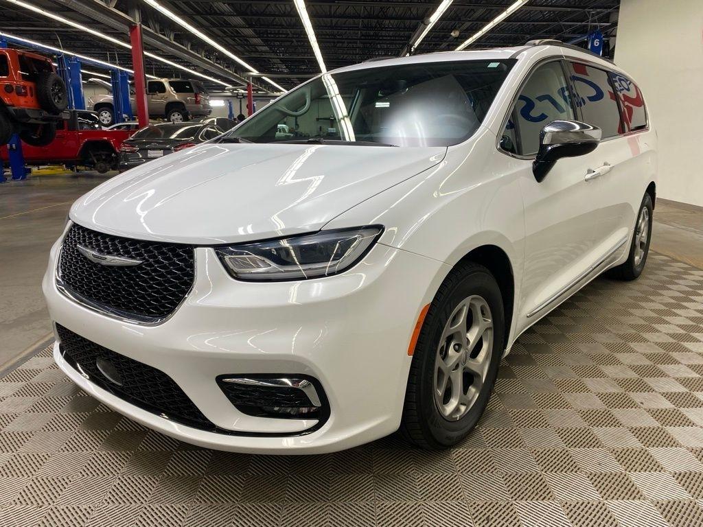 CARFAX One-Owner. THIS VEHICLE IS EQUIPPED WITH THE FOLLOWING FEATURES AND OPTIONS Quick Order Package 27P, 13 Speakers, 3.25 Axle Ratio, 3rd row seats: split-bench, 4-Wheel Disc Brakes, ABS brakes, Air Conditioning, Alloy wheels, AM/FM radio: SiriusXM 360L, Apple CarPlay/Android Auto, Audio memory, Auto-dimming Rear-View mirror, Automatic temperature control, Black Seats, Bodyside moldings, Brake assist, Bumpers: body-color, Compass, Delay-off headlights, Driver door bin, Driver vanity mirror, Driver's Seat Mounted Armrest, Dual front impact airbags, Dual front side impact airbags, Electronic Stability Control, Emergency communication system: SiriusXM Guardian, Four wheel independent suspension, Front anti-roll bar, Front Bucket Seats, Front dual zone A/C, Front fog lights, Front reading lights, Fully automatic headlights, Garage door transmitter, Heated door mirrors, Heated front seats, Heated rear seats, Heated steering wheel, Illuminated entry, Integrated Active Noise Cancellation, Knee airbag, Low tire pressure warning, Memory seat, Nappa Leather Bucket Seats, Navigation System, Occupant sensing airbag, Outside temperature display, Overhead airbag, Overhead console, Panic alarm, ParkView Rear Back-Up Camera, Passenger door bin, Passenger seat mounted armrest, Passenger vanity mirror, Power door mirrors, Power driver seat, Power Folding 3rd Row Seat, Power Liftgate, Power moonroof, Power passenger seat, Power steering, Power windows, Radio data system, Radio: Uconnect 5 Nav w/10.1" Display, Rain sensing wipers, Rear air conditioning, Rear reading lights, Rear window defroster, Rear window wiper, Reclining 3rd row seat, Remote keyless entry, Roof rack, Security system, Speed control, Split folding rear seat, Spoiler, Steering wheel mounted audio controls, Tachometer, Telescoping steering wheel, Tilt steering wheel, Touring Suspension, Traction control, Trip computer, Turn signal indicator mirrors, Variably intermittent wipers, Ventilated front seats, Voltmeter, and Wheels: 18" x 7.5" Painted Aluminum Design 2. Bright White Clearcoat 2023 Chrysler Pacifica Limited FWD 9-Speed 948TE Automatic 3.6L V6 24V VVT