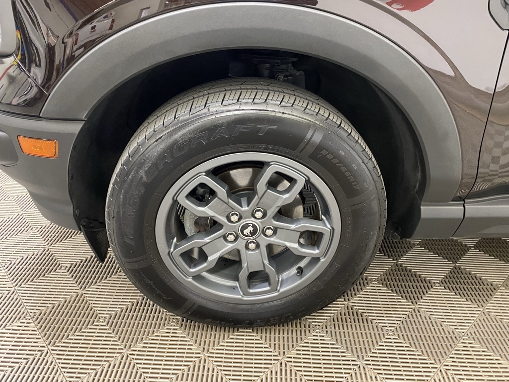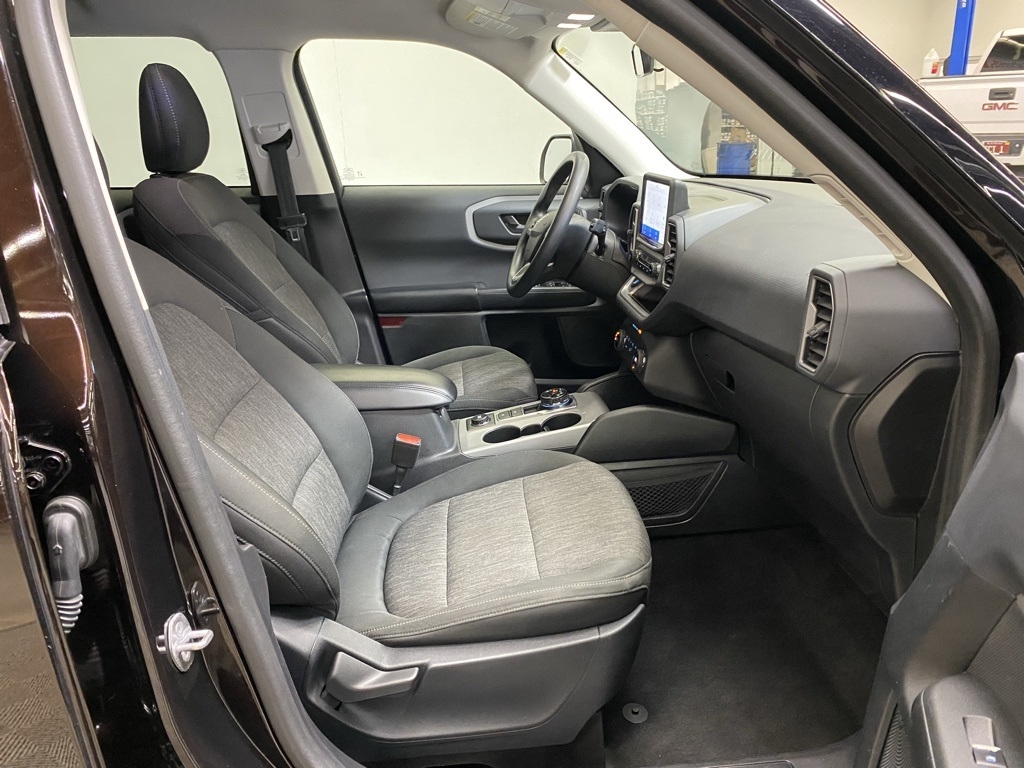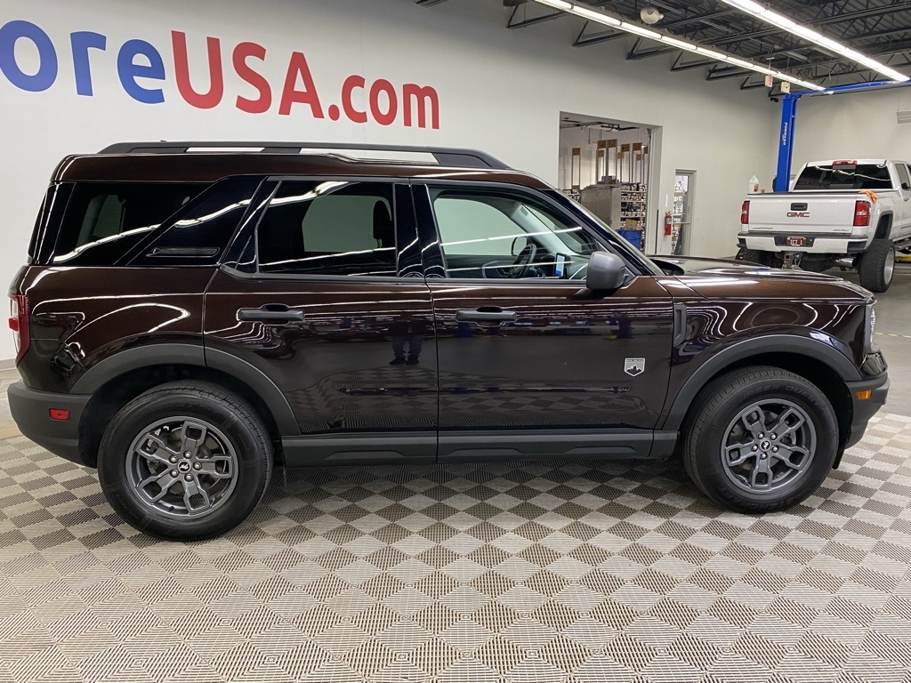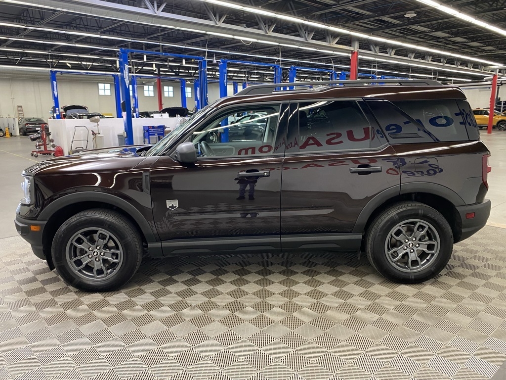 THIS VEHICLE IS EQUIPPED WITH THE FOLLOWING FEATURES AND OPTIONS Equipment Group 200A, 3.80 Axle Ratio, 4-Wheel Disc Brakes, 6 Speakers, ABS brakes, Air Conditioning, Alloy wheels, AM/FM radio: SiriusXM, AM/FM Stereo, Auto High-beam Headlights, Automatic temperature control, Brake assist, Compass, Delay-off headlights, Driver door bin, Driver vanity mirror, Dual front impact airbags, Dual front side impact airbags, Electronic Stability Control, Emergency communication system: SYNC 3 911 Assist, Exterior Parking Camera Rear, Four wheel independent suspension, Front anti-roll bar, Front Bucket Seats, Front Center Armrest, Front fog lights, Front reading lights, Fully automatic headlights, Heated door mirrors, Illuminated entry, Knee airbag, Low tire pressure warning, Occupant sensing airbag, Outside temperature display, Overhead airbag, Overhead console, Panic alarm, Passenger door bin, Passenger vanity mirror, Power door mirrors, Power steering, Power windows, Radio data system, Rear anti-roll bar, Rear reading lights, Rear seat center armrest, Rear window defroster, Rear window wiper, Remote keyless entry, Roof rack: rails only, Security system, SiriusXM Radio, Speed control, Speed-sensing steering, Speed-Sensitive Wipers, Split folding rear seat, Steering wheel mounted audio controls, SYNC 3 Communications & Entertainment System, SYNC 3/Apple CarPlay/Android Auto, Tachometer, Telescoping steering wheel, Tilt steering wheel, Traction control, Trip computer, Unique Cloth Front Bucket Seats, Variably intermittent wipers, and Wheels: 17" Carbonized Gray-Painted Aluminum. Brown 2021 Ford Bronco Sport Big Bend 4WD 8-Speed Automatic 1.5L EcoBoost