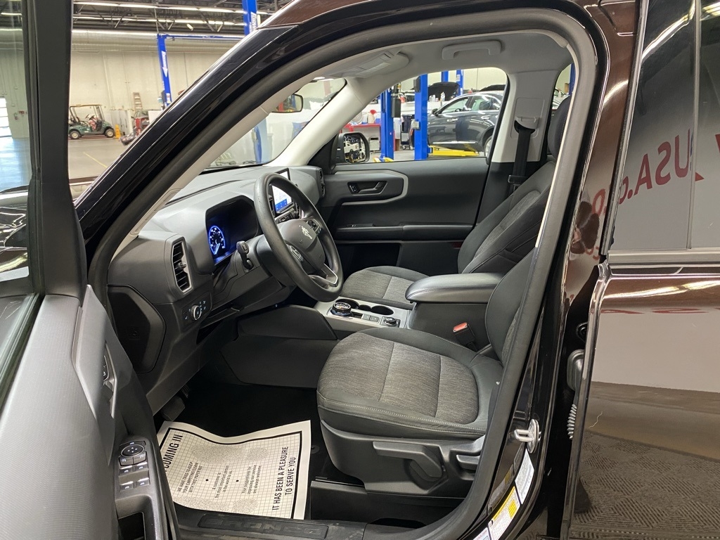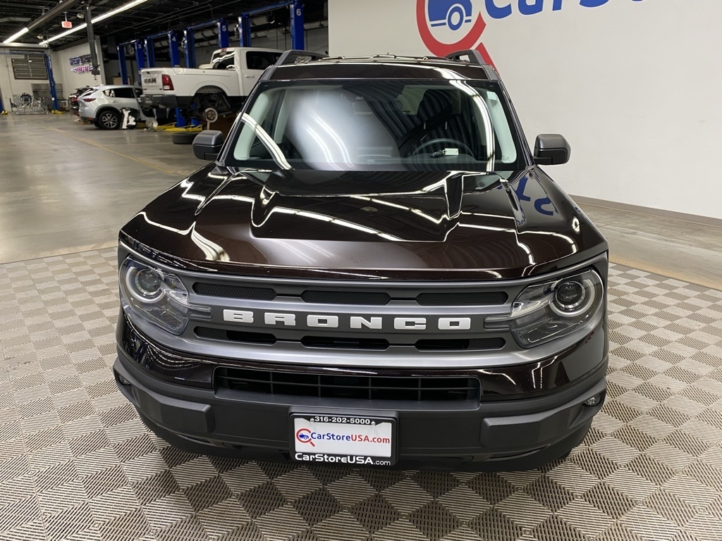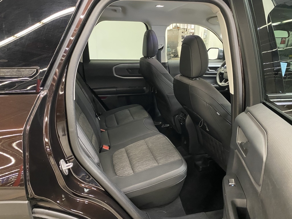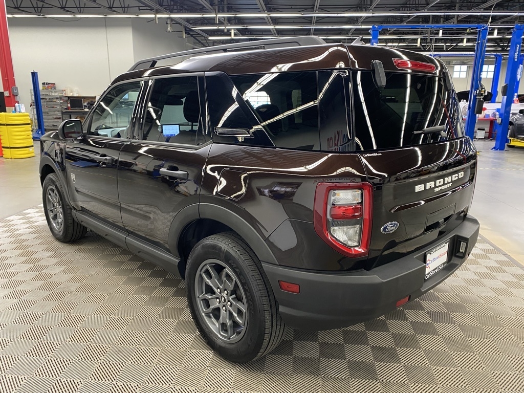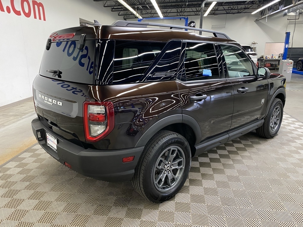 THIS VEHICLE IS EQUIPPED WITH THE FOLLOWING FEATURES AND OPTIONS Equipment Group 200A, 3.80 Axle Ratio, 4-Wheel Disc Brakes, 6 Speakers, ABS brakes, Air Conditioning, Alloy wheels, AM/FM radio: SiriusXM, AM/FM Stereo, Auto High-beam Headlights, Automatic temperature control, Brake assist, Compass, Delay-off headlights, Driver door bin, Driver vanity mirror, Dual front impact airbags, Dual front side impact airbags, Electronic Stability Control, Emergency communication system: SYNC 3 911 Assist, Exterior Parking Camera Rear, Four wheel independent suspension, Front anti-roll bar, Front Bucket Seats, Front Center Armrest, Front fog lights, Front reading lights, Fully automatic headlights, Heated door mirrors, Illuminated entry, Knee airbag, Low tire pressure warning, Occupant sensing airbag, Outside temperature display, Overhead airbag, Overhead console, Panic alarm, Passenger door bin, Passenger vanity mirror, Power door mirrors, Power steering, Power windows, Radio data system, Rear anti-roll bar, Rear reading lights, Rear seat center armrest, Rear window defroster, Rear window wiper, Remote keyless entry, Roof rack: rails only, Security system, SiriusXM Radio, Speed control, Speed-sensing steering, Speed-Sensitive Wipers, Split folding rear seat, Steering wheel mounted audio controls, SYNC 3 Communications & Entertainment System, SYNC 3/Apple CarPlay/Android Auto, Tachometer, Telescoping steering wheel, Tilt steering wheel, Traction control, Trip computer, Unique Cloth Front Bucket Seats, Variably intermittent wipers, and Wheels: 17" Carbonized Gray-Painted Aluminum. Brown 2021 Ford Bronco Sport Big Bend 4WD 8-Speed Automatic 1.5L EcoBoost