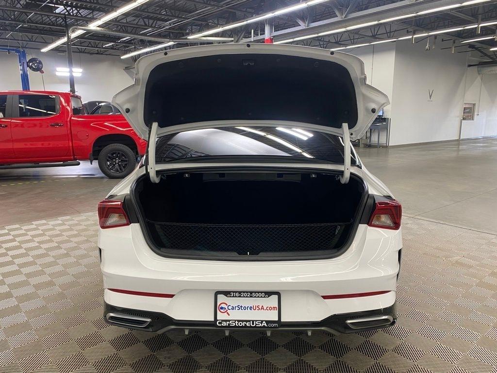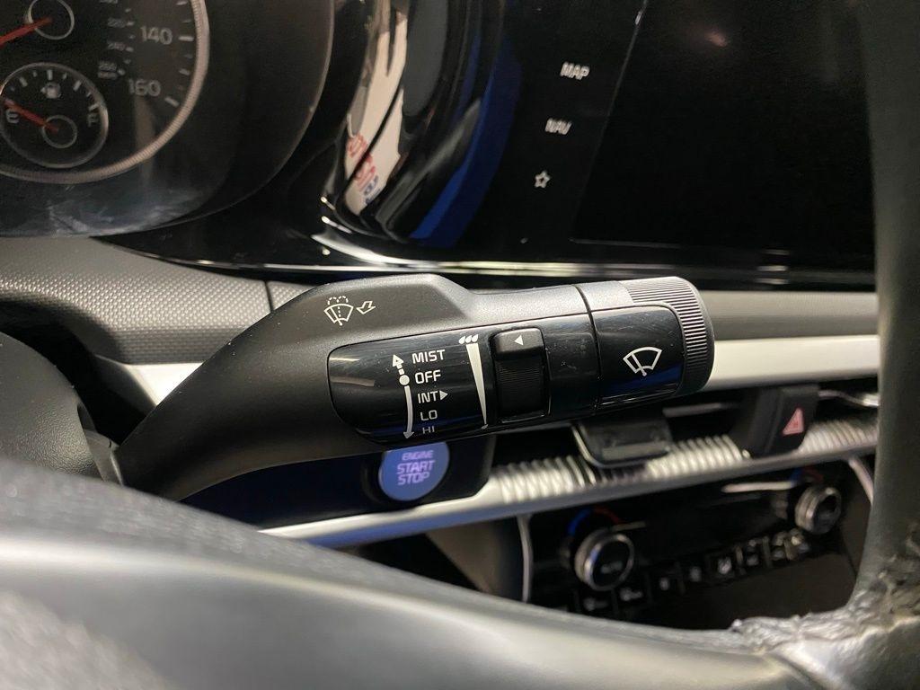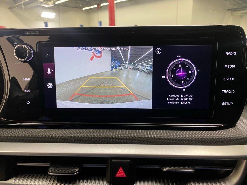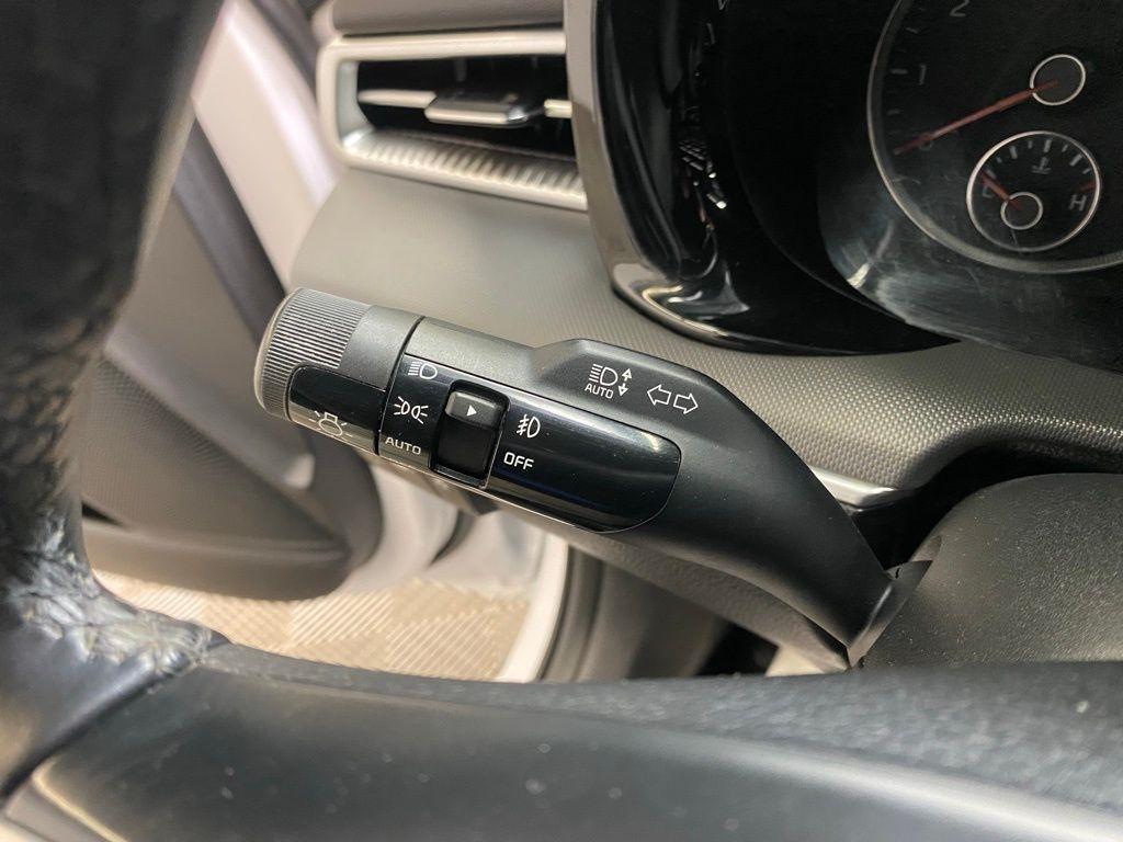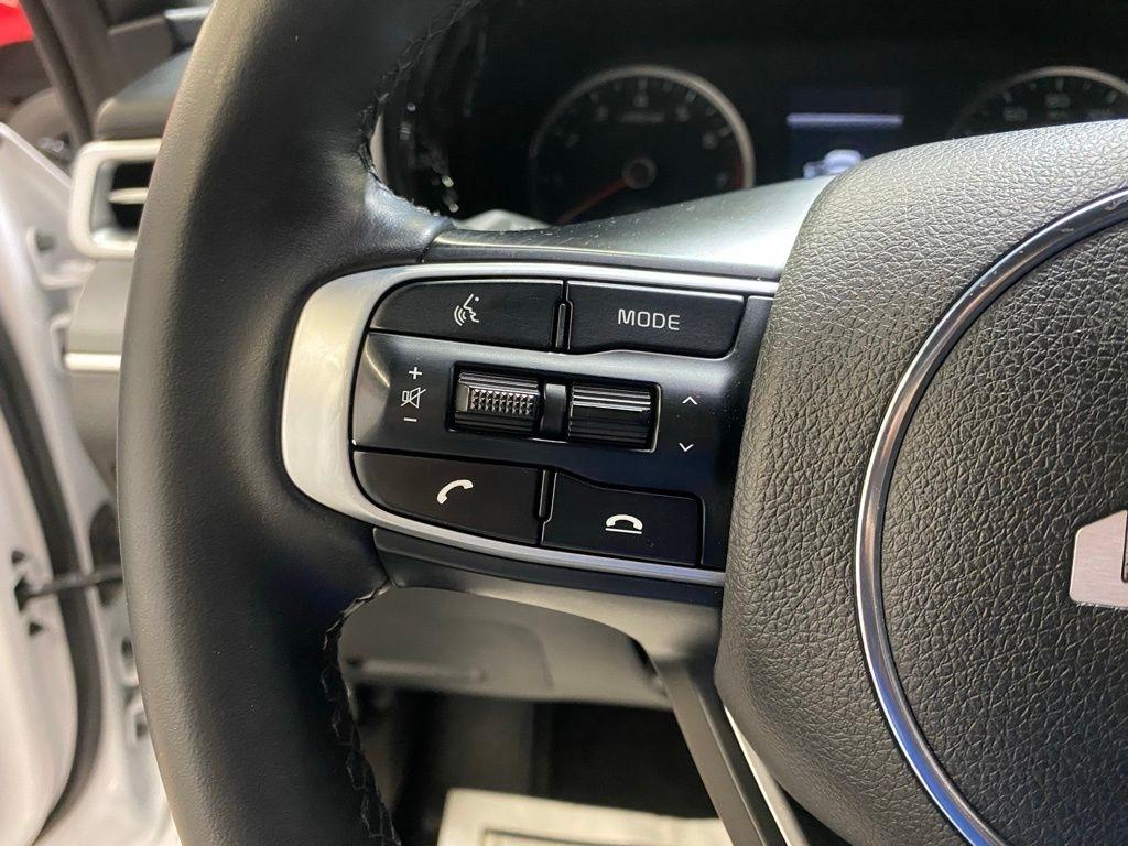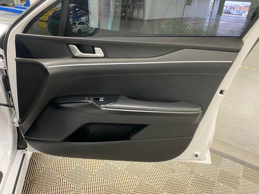 THIS VEHICLE IS EQUIPPED WITH THE FOLLOWING FEATURES AND OPTIONS 4-Wheel Disc Brakes, 6 Speakers, ABS brakes, Air Conditioning, Alloy wheels, AM/FM radio: SiriusXM, Apple CarPlay & Android Auto, Auto High-beam Headlights, Automatic temperature control, Brake assist, Bumpers: body-color, Cargo Net, Cloth/Leatherette Seat Trim, Delay-off headlights, Driver door bin, Driver vanity mirror, Dual front impact airbags, Dual front side impact airbags, EC Mirror w/Homelink, Electronic Stability Control, Four wheel independent suspension, Front anti-roll bar, Front Bucket Seats, Front Center Armrest, Front dual zone A/C, Front fog lights, Front reading lights, Fully automatic headlights, Heated door mirrors, Illuminated entry, Knee airbag, Low tire pressure warning, Navigation System, Occupant sensing airbag, Outside temperature display, Overhead airbag, Overhead console, Panic alarm, Passenger door bin, Passenger vanity mirror, Power door mirrors, Power driver seat, Power steering, Power windows, Radio data system, Radio: AM/FM/MP3 Audio System, Rear anti-roll bar, Rear seat center armrest, Rear side impact airbag, Rear window defroster, Remote keyless entry, Security system, Speed control, Speed-sensing steering, Split folding rear seat, Spoiler, Sport steering wheel, Steering wheel mounted audio controls, Tachometer, Telescoping steering wheel, Tilt steering wheel, Traction control, Trip computer, Turn signal indicator mirrors, Variably intermittent wipers, and Wheels: 7.5J x 18" Gloss Black Machined Finish Alloy. Glacial White Pearl 2022 Kia K5 GT-Line FWD 8-Speed Automatic I4