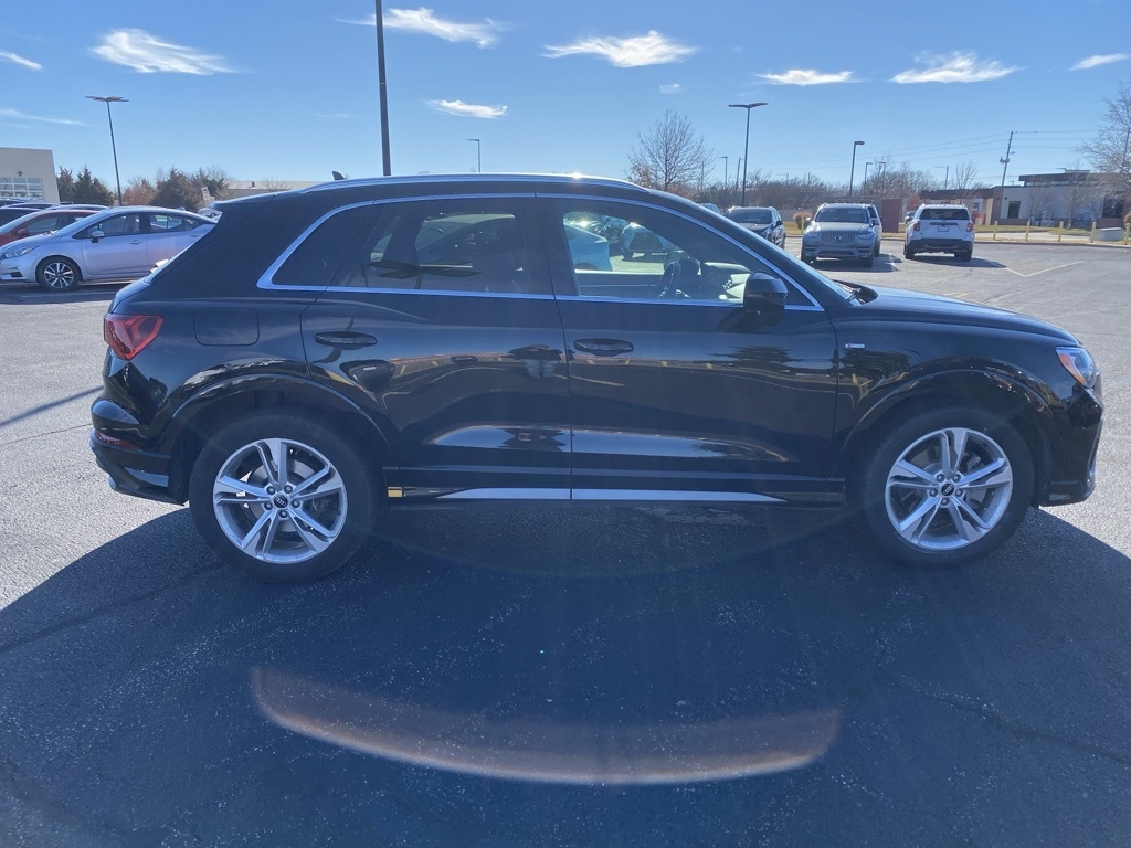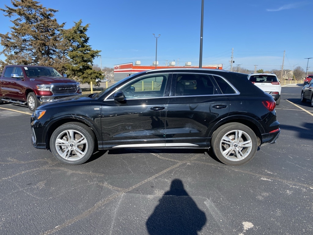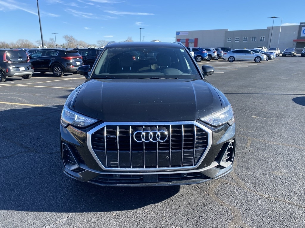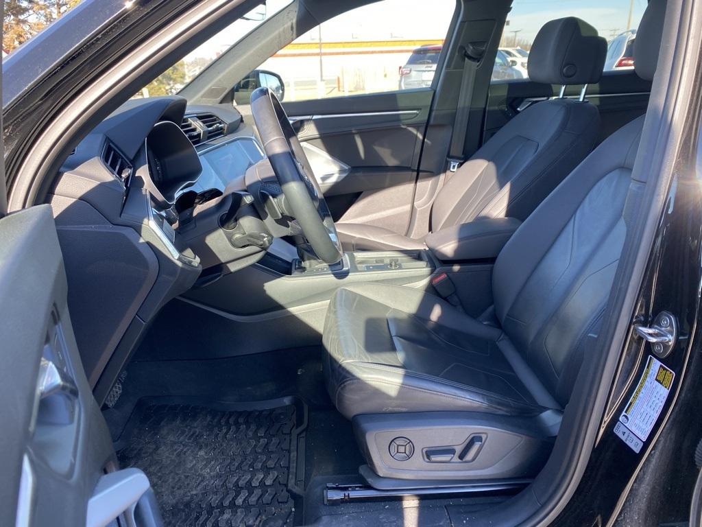 THIS VEHICLE IS EQUIPPED WITH THE FOLLOWING FEATURES AND OPTIONS 19" Wheel Package (Wheels: 19" 5-Twin-Arm Design), Convenience Package (Alarm w/Motion Sensor, Audi Advanced Key, Audi Parking System Plus, Audi Side Assist, Frameless Auto-Dimming Interior Mirror w/Compass, Heated Power-Folding Exterior Mirrors, and SiriusXM All Access Service), LED Interior Lighting Package, 10 Speakers, 3.533 Axle Ratio, 4-Wheel Disc Brakes, ABS brakes, Air Conditioning, Alloy wheels, Aluminum Spectrum Inlays, AM/FM radio, Audi Beam-Rings, Audi smartphone interface (Apple CarPlay/Android Auto), Auto High-beam Headlights, Automatic temperature control, Brake assist, Bumpers: body-color, Delay-off headlights, Driver door bin, Driver vanity mirror, Dual front impact airbags, Dual front side impact airbags, Electronic Stability Control, Exterior Parking Camera Rear, Four wheel independent suspension, Front anti-roll bar, Front Bucket Seats, Front Center Armrest, Front dual zone A/C, Front fog lights, Front reading lights, Fully automatic headlights, Heated door mirrors, Heated Front Bucket Seats, Heated front seats, Illuminated entry, Interior Protection Kit, Knee airbag, Leather Seating Surfaces, Leather Shift Knob, Leather steering wheel, Low tire pressure warning, Occupant sensing airbag, Outside temperature display, Overhead airbag, Overhead console, Panic alarm, Passenger door bin, Passenger vanity mirror, Power door mirrors, Power driver seat, Power Liftgate, Power moonroof, Power passenger seat, Power steering, Power windows, Radio data system, Radio: Audi Sound System, Rain sensing wipers, Rear air conditioning, Rear anti-roll bar, Rear fog lights, Rear reading lights, Rear seat center armrest, Rear window defroster, Rear window wiper, Remote keyless entry, Speed control, Speed-sensing steering, Split folding rear seat, Spoiler, Steering wheel mounted audio controls, Tachometer, Telescoping steering wheel, Tilt steering wheel, Traction control, Trip computer, Turn signal indicator mirrors, Variably intermittent wipers, and Wheels: 18" 5-Twin-Spoke Dynamic Design. Clean CARFAX. Black Metallic 2021 Audi Q3 Premium S Line quattro quattro 8-Speed Automatic with Tiptronic 2.0L 4-Cylinder TFSI