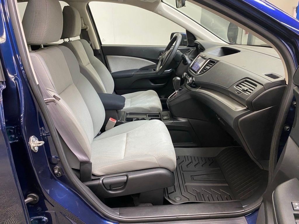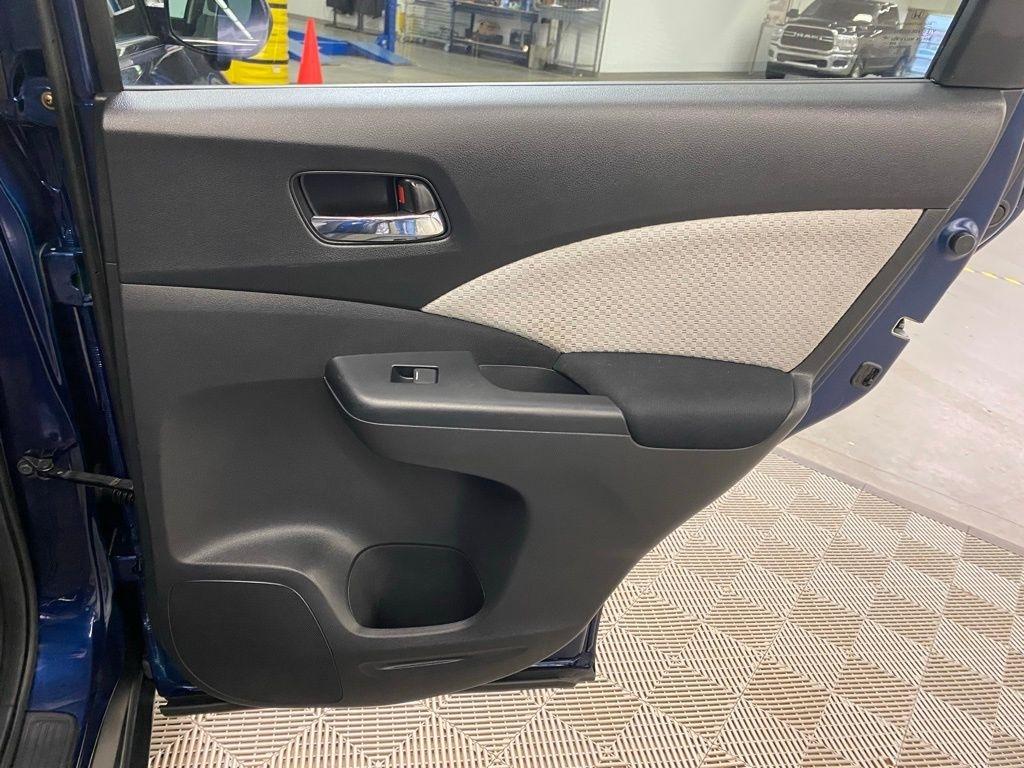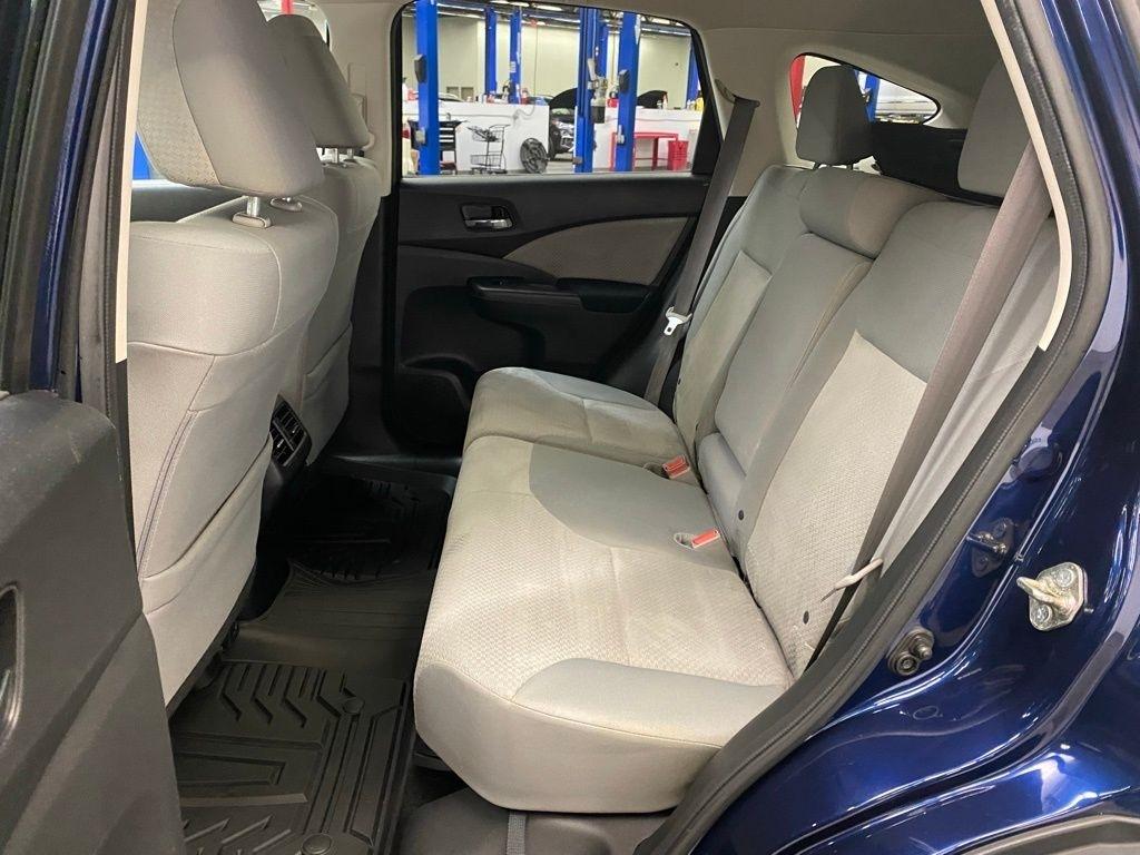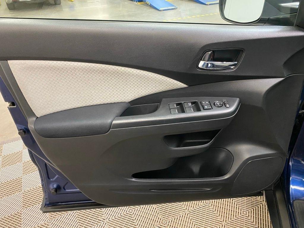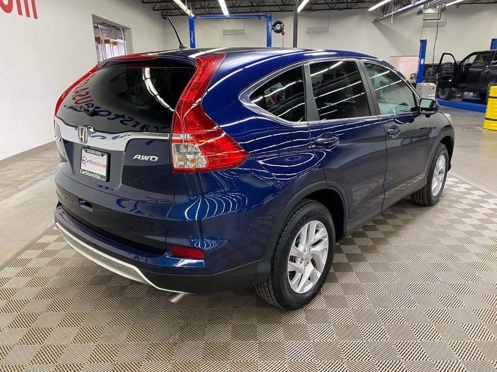 THIS VEHICLE IS EQUIPPED WITH THE FOLLOWING FEATURES AND OPTIONS 17" Alloy Wheels, 4-Wheel Disc Brakes, 5.048 Axle Ratio, 6 Speakers, ABS brakes, Air Conditioning, Alloy wheels, AM/FM radio, AM/FM/CD Audio System w/6 Speakers, Brake assist, Bumpers: body-color, CD player, Cloth Seat Trim, Compass, Delay-off headlights, Driver door bin, Driver vanity mirror, Dual front impact airbags, Dual front side impact airbags, Electronic Stability Control, Exterior Parking Camera Rear, Four wheel independent suspension, Front anti-roll bar, Front Bucket Seats, Front Center Armrest, Front fog lights, Front reading lights, Heated Front Bucket Seats, Heated front seats, Illuminated entry, Low tire pressure warning, Occupant sensing airbag, Outside temperature display, Overhead airbag, Overhead console, Panic alarm, Passenger door bin, Passenger vanity mirror, Power door mirrors, Power driver seat, Power moonroof, Power steering, Power windows, Radio data system, Rear anti-roll bar, Rear seat center armrest, Rear window defroster, Rear window wiper, Remote keyless entry, Security system, Speed control, Speed-sensing steering, Speed-Sensitive Wipers, Split folding rear seat, Steering wheel mounted audio controls, Tachometer, Telescoping steering wheel, Tilt steering wheel, Traction control, Trip computer, and Variably intermittent wipers. Clean CARFAX. Blue 2016 Honda CR-V EX AWD CVT 2.4L I4 DOHC 16V i-VTEC