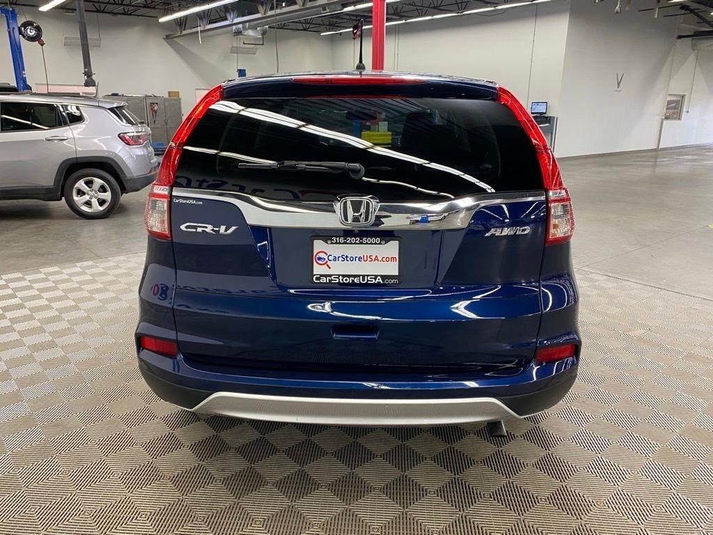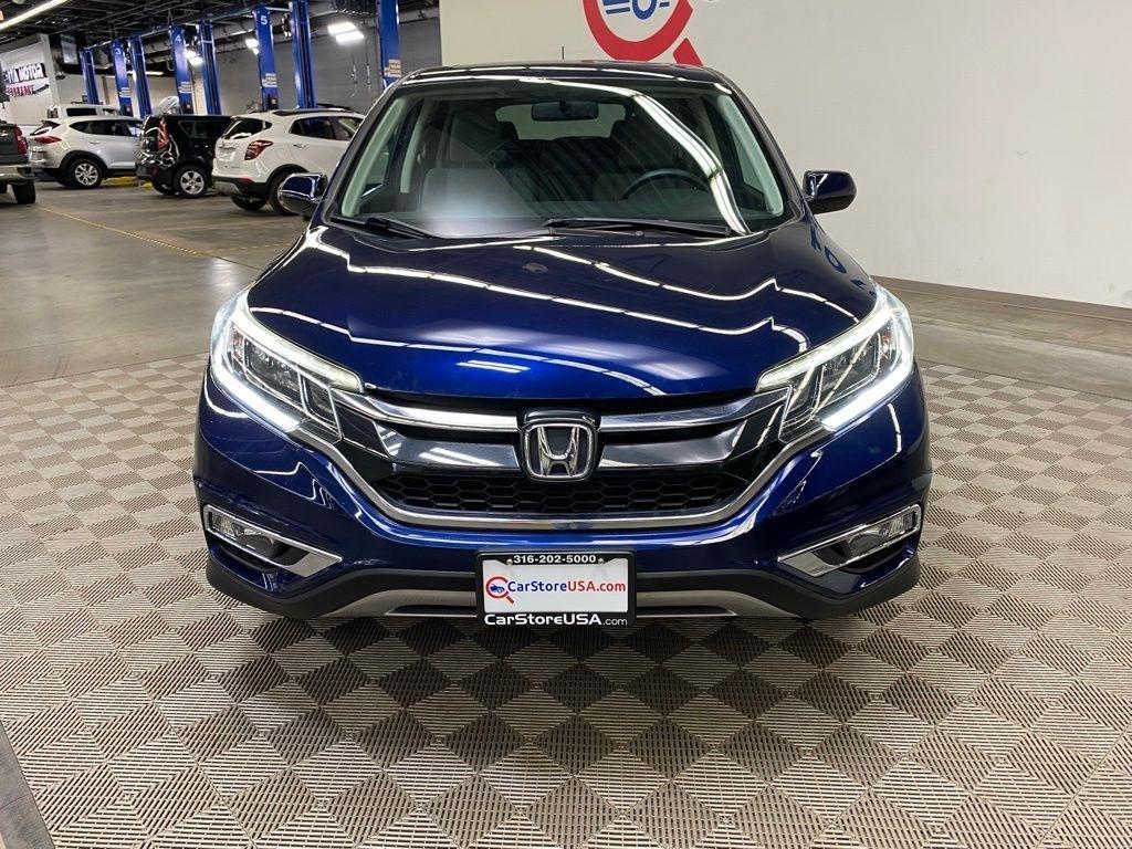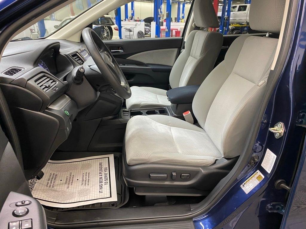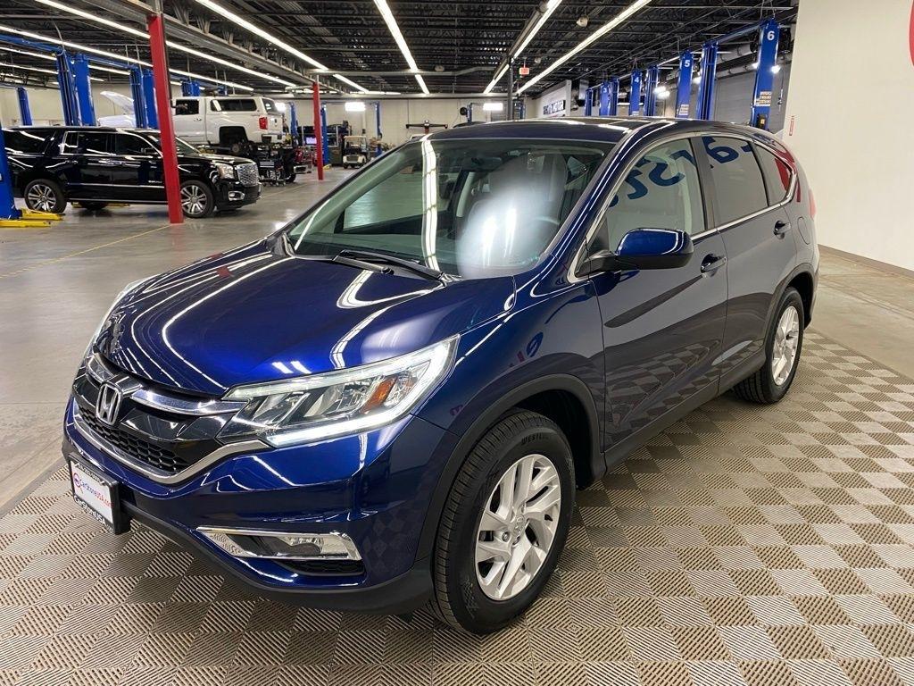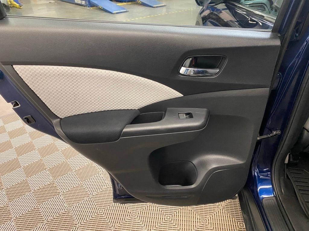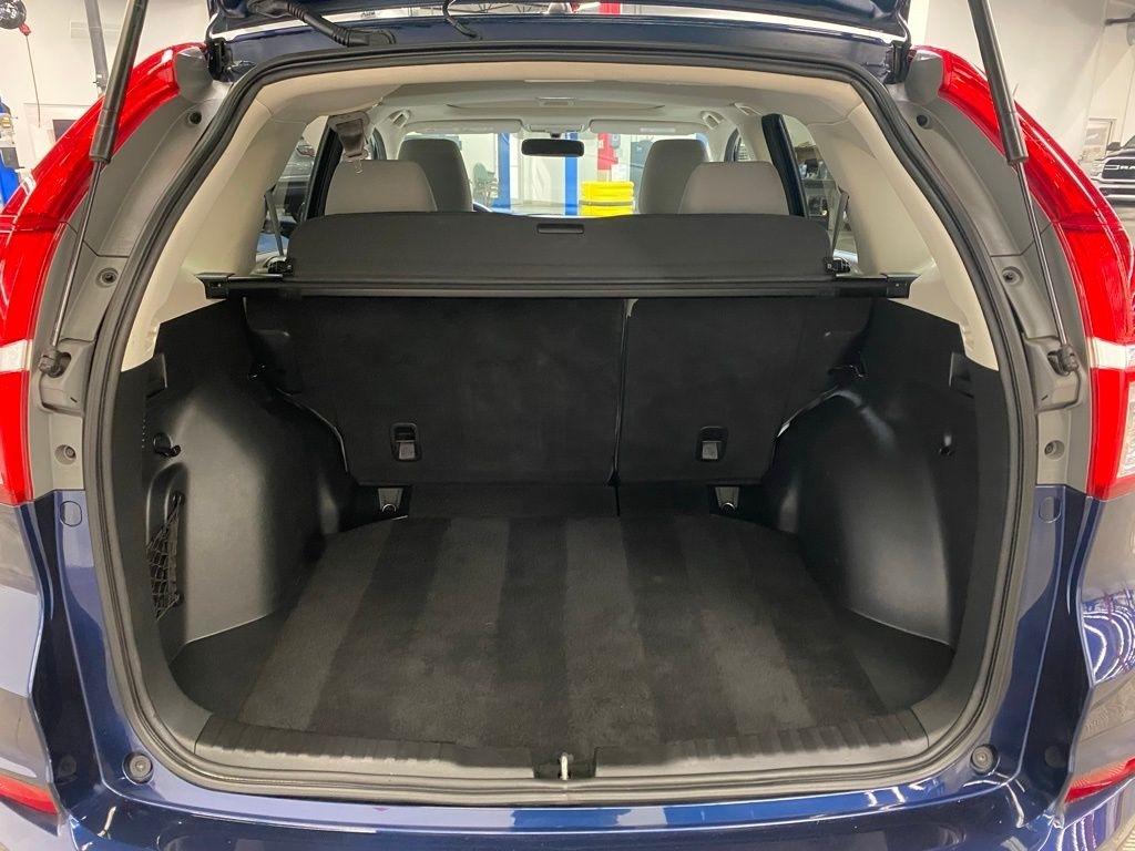THIS VEHICLE IS EQUIPPED WITH THE FOLLOWING FEATURES AND OPTIONS 17" Alloy Wheels, 4-Wheel Disc Brakes, 5.048 Axle Ratio, 6 Speakers, ABS brakes, Air Conditioning, Alloy wheels, AM/FM radio, AM/FM/CD Audio System w/6 Speakers, Brake assist, Bumpers: body-color, CD player, Cloth Seat Trim, Compass, Delay-off headlights, Driver door bin, Driver vanity mirror, Dual front impact airbags, Dual front side impact airbags, Electronic Stability Control, Exterior Parking Camera Rear, Four wheel independent suspension, Front anti-roll bar, Front Bucket Seats, Front Center Armrest, Front fog lights, Front reading lights, Heated Front Bucket Seats, Heated front seats, Illuminated entry, Low tire pressure warning, Occupant sensing airbag, Outside temperature display, Overhead airbag, Overhead console, Panic alarm, Passenger door bin, Passenger vanity mirror, Power door mirrors, Power driver seat, Power moonroof, Power steering, Power windows, Radio data system, Rear anti-roll bar, Rear seat center armrest, Rear window defroster, Rear window wiper, Remote keyless entry, Security system, Speed control, Speed-sensing steering, Speed-Sensitive Wipers, Split folding rear seat, Steering wheel mounted audio controls, Tachometer, Telescoping steering wheel, Tilt steering wheel, Traction control, Trip computer, and Variably intermittent wipers. Clean CARFAX. Blue 2016 Honda CR-V EX AWD CVT 2.4L I4 DOHC 16V i-VTEC
