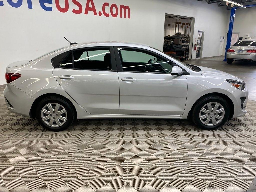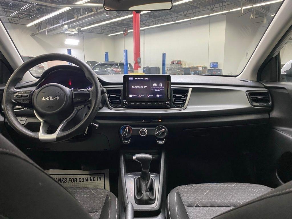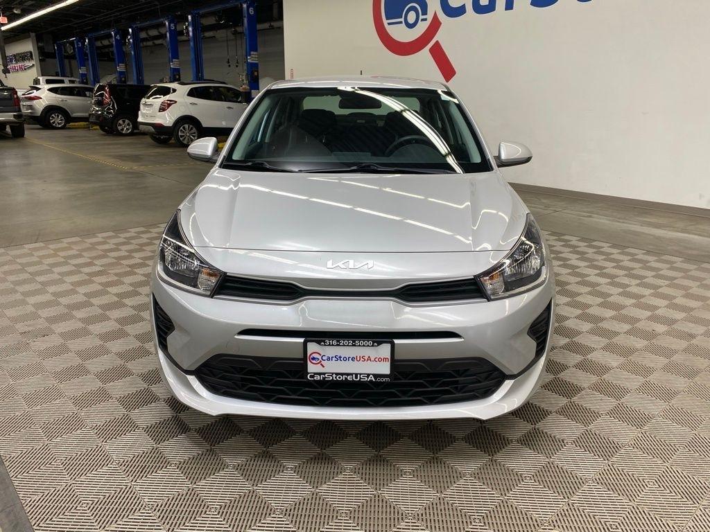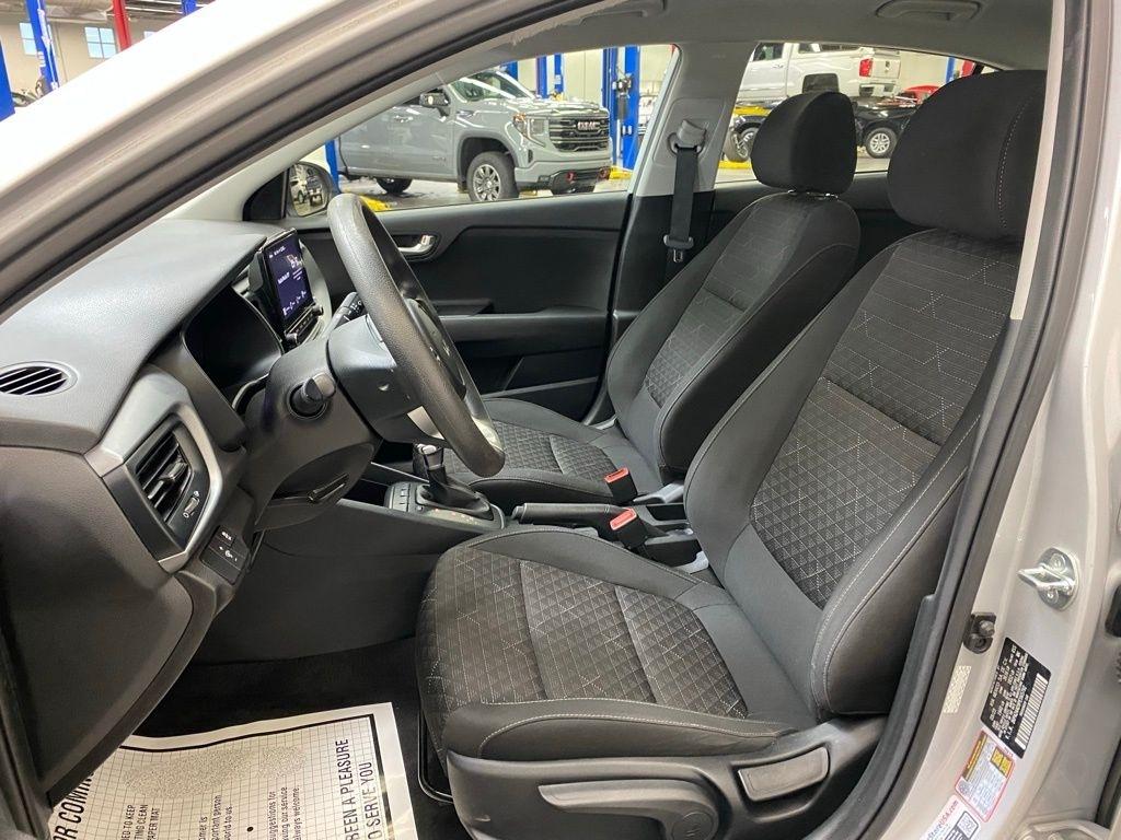 CARFAX One-Owner. THIS VEHICLE IS EQUIPPED WITH THE FOLLOWING FEATURES AND OPTIONS 6 Speakers, ABS brakes, Air Conditioning, AM/FM radio, Brake assist, Bumpers: body-color, Carpet Floor Mats, Driver door bin, Driver vanity mirror, Dual front impact airbags, Dual front side impact airbags, Electronic Stability Control, Front anti-roll bar, Front Bucket Seats, Front reading lights, Front wheel independent suspension, Fully automatic headlights, Heated door mirrors, Illuminated entry, Low tire pressure warning, Mud Guards, Occupant sensing airbag, Outside temperature display, Overhead airbag, Overhead console, Panic alarm, Passenger door bin, Passenger vanity mirror, Power door mirrors, Power steering, Power windows, Radio: AM/FM/MP3 Audio System, Rear window defroster, Speed-sensing steering, Steering wheel mounted audio controls, Tachometer, Tilt steering wheel, Traction control, Trip computer, Variably intermittent wipers, Wheels: 15" x 5.5J Steel w/Full Covers, and Woven & Tricot Cloth Seat Trim. Silky Silver 2023 Kia Rio LX FWD CVT 1.6L 4-Cylinder