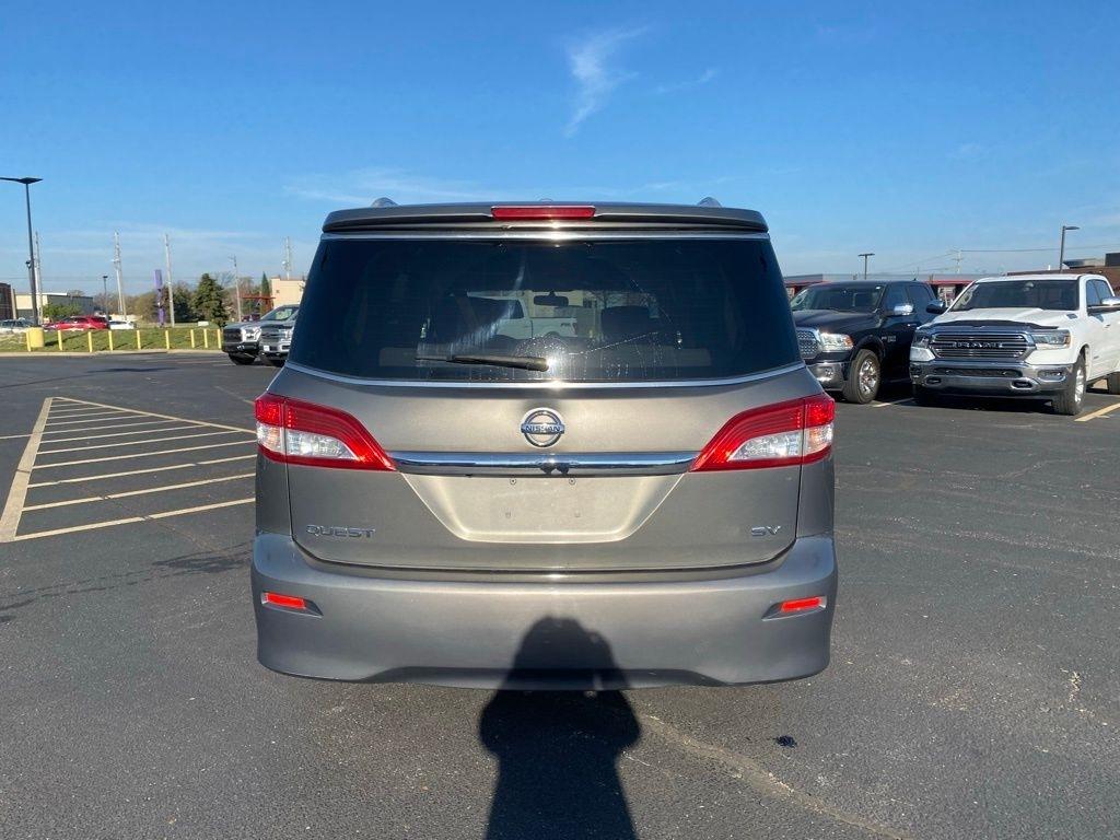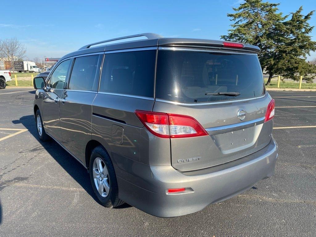 THIS VEHICLE IS EQUIPPED WITH THE FOLLOWING FEATURES AND OPTIONS 3rd row seats: split-bench, 4-Wheel Disc Brakes, 4.878 Axle Ratio, ABS brakes, Air Conditioning, Anti-whiplash front head restraints, Brake assist, Bumpers: body-color, Carpeted Floor Mats 1st/2nd/3rd Rows, CD player, Driver door bin, Driver vanity mirror, Driver's Seat Mounted Armrest, Dual front impact airbags, Dual front side impact airbags, Electronic Stability Control, Four wheel independent suspension, Front anti-roll bar, Front Bucket Seats, Front reading lights, Illuminated entry, Low tire pressure warning, Occupant sensing airbag, Outside temperature display, Overhead airbag, Overhead console, Panic alarm, Passenger door bin, Passenger seat mounted armrest, Passenger vanity mirror, Power door mirrors, Power steering, Power windows, Rear air conditioning, Rear reading lights, Rear window defroster, Rear window wiper, Reclining 3rd row seat, Remote keyless entry, Security system, Speed control, Speed-sensing steering, Speed-Sensitive Wipers, Split folding rear seat, Spoiler, Tachometer, Telescoping steering wheel, Tilt steering wheel, Traction control, Trip computer, and Variably intermittent wipers. Titanium 2016 Nissan Quest 3.5 SV FWD CVT with Xtronic 3.5L 6-Cylinder DOHC