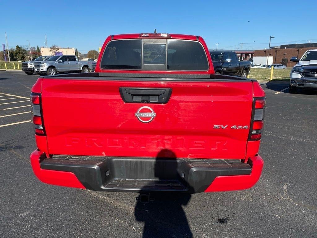 THIS VEHICLE IS EQUIPPED WITH THE FOLLOWING FEATURES AND OPTIONS 17" Alloy Wheels, 3.692 Axle Ratio, 4-Wheel Disc Brakes, 6 Speakers, ABS brakes, Air Conditioning, Alloy wheels, AM/FM radio: SiriusXM, Anti-whiplash front head restraints, Apple CarPlay/Android Auto, Auto High-beam Headlights, Brake assist, Bumpers: body-color, Delay-off headlights, Driver door bin, Driver vanity mirror, Dual front impact airbags, Dual front side impact airbags, Electronic Stability Control, Floor Mats, Front anti-roll bar, Front Bucket Seats, Front Center Armrest, Front reading lights, Front wheel independent suspension, Fully automatic headlights, Illuminated entry, Knee airbag, Low tire pressure warning, Occupant sensing airbag, Overhead airbag, Panic alarm, Passenger door bin, Passenger vanity mirror, Power door mirrors, Power driver seat, Power steering, Power windows, Premium Cloth Seat Trim, Radio data system, Radio: SXM/AM/FM/AUX/USB Audio System w/6 Speakers, Rear anti-roll bar, Rear seat center armrest, Rear step bumper, Remote keyless entry, Security system, Speed control, Speed-sensing steering, Split folding rear seat, Steering wheel mounted audio controls, Tachometer, Tilt steering wheel, Traction control, Trip computer, Variably intermittent wipers, and Voltmeter. Red Alert 2022 Nissan Frontier SV 4WD 9-Speed Automatic 3.8L DI DOHC 24V V6