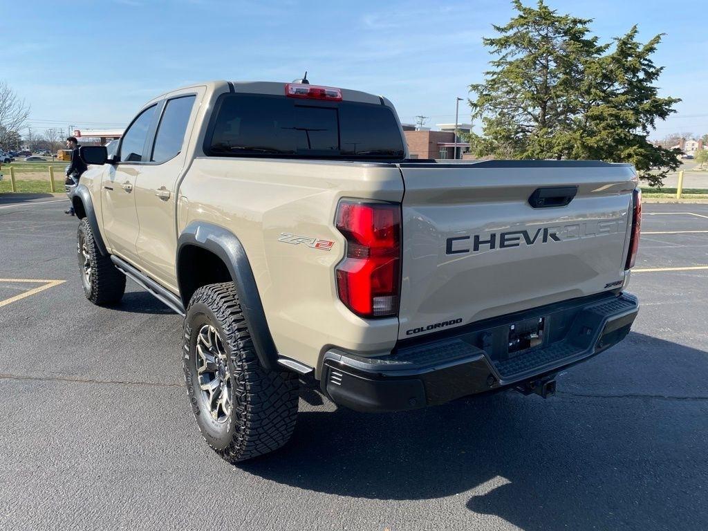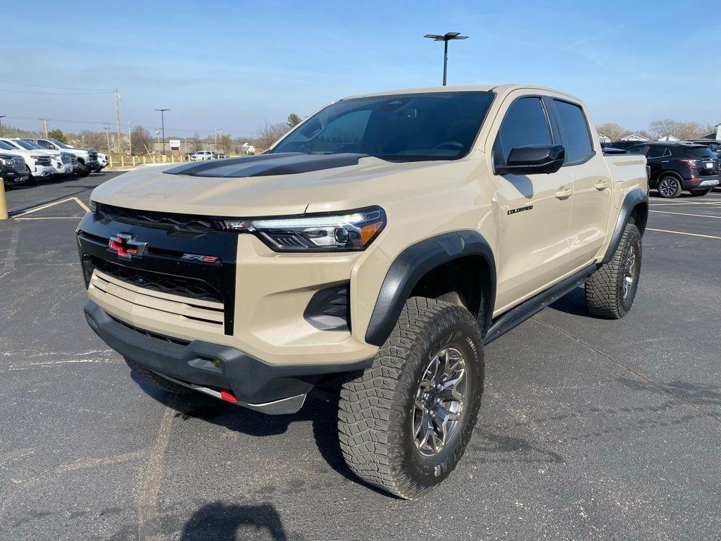 CARFAX One-Owner. THIS VEHICLE IS EQUIPPED WITH THE FOLLOWING FEATURES AND OPTIONS Preferred Equipment Group 4ZR (Automatic Emergency Braking, Chevy Safety Assist, Electronic Automatic Cruise Control, Following Distance Indicator, Forward Collision Alert, Front Pedestrian & Bicyclist Braking, IntelliBeam Automatic High Beam On/Off, Lane Keep Assist w/Lane Departure Warning, and Rear-Window Electric Defogger), Safety Package (Blind Zone Steering Assist, Rear Cross Traffic Braking, and Rear Park Assist), Technology Package (Adaptive Cruise Control, HD Surround Vision, and Rear Pedestrian Alert), ZR2 Convenience Package III (Driver & Front Passenger Ventilated Seats, Driver Memory Settings, Driver Seatback Map Pocket, Heated Steering Wheel, Perforated Leather-Appointed Seat Trim, Rear Center Armrest, and Wireless Charging), ZR2 Off-Road Package, 3.42 Rear Axle Ratio, 4-Way Manual Passenger Seat Adjuster, 4-Wheel Disc Brakes, 6 Speakers, 6-Speaker Audio System Feature, 8-Way Power Driver Seat Adjuster, ABS brakes, Air Conditioning, Alloy wheels, AM/FM radio: SiriusXM, Apple CarPlay/Android Auto, Auto High-beam Headlights, Auto-dimming Rear-View mirror, Automatic temperature control, Black Nameplates (LPO), Bose Premium 7-Speaker Audio System Feature, Brake assist, Cloth/Evotex Seat Trim, Compass, Delay-off headlights, Driver door bin, Driver vanity mirror, Dual front impact airbags, Dual front side impact airbags, Electronic Stability Control, Front anti-roll bar, Front Bucket Seats, Front Center Armrest, Front dual zone A/C, Front fog lights, Front reading lights, Front wheel independent suspension, Heated door mirrors, Heated Driver & Front Passenger Seats, Heated front seats, Illuminated entry, Low tire pressure warning, Navigation System, Occupant sensing airbag, Outside temperature display, Overhead airbag, Overhead console, Panic alarm, Passenger door bin, Passenger Seatback Map Pocket, Passenger vanity mirror, Power door mirrors, Power Driver Lumbar Control Seat Adjuster, Power driver seat, Power steering, Power windows, Radio data system, Radio: 11.3" Diagonal Advanced Color LCD Display, Rear reading lights, Rear step bumper, Rear window defroster, Remote keyless entry, Security system, SiriusXM Radio, Speed control, Speed-sensing steering, Split folding rear seat, Steering Wheel Mounted Audio Controls, Steering wheel mounted audio controls, Tachometer, Telescoping steering wheel, Tilt steering wheel, Traction control, Trip computer, Variably intermittent wipers, Wheels: 17" x 8" Graphite & Oxide Gold Aluminum, and Wireless Phone Projection. Clean CARFAX. Sand Dune Metallic 2023 Chevrolet Colorado ZR2 4WD 8-Speed Automatic 2.7L Turbo