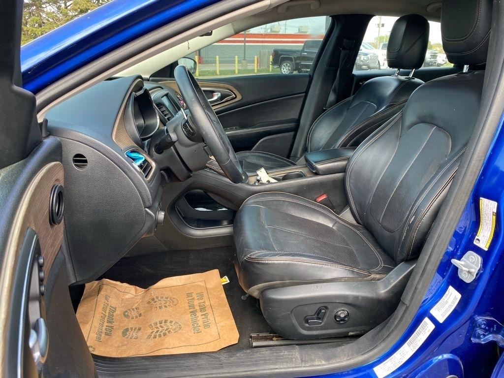 THIS VEHICLE IS EQUIPPED WITH THE FOLLOWING FEATURES AND OPTIONS Navigation & Sound Group I (1 Year Trial (Registration Required), 5-Year SiriusXM Traffic Service, 5-Year SiriusXM Travel Link Service, 506 Watt Amplifier, 8.4" Touch Screen Display, 9 Amplified Speakers w/Subwoofer, For Details Go To DriveUconnect.com, GPS Antenna Input, GPS Navigation, Harman Radio Manufacturer, HD Radio, Radio: Uconnect 8.4AN AM/FM/SXM/HD/BT/NAV, SIRIUSXM Traffic, SiriusXM Travel Link, and Uconnect Access), Premium Group (115V Auxiliary Power Outlet, Exterior Mirrors w/Memory, Heated 2 Tone Leather Steering Wheel, Luxury Door Trim Panel, Premium Leather Seat Cushion, Premium Leather Trimmed Ventilated Seats, Radio/Driver Seat/HVAC w/Memory, Real Wood/Bronze Chrome Interior, and Ventilated Front Seats), Premium Lighting Group (HID Headlamps w/LED Daytime Running Lamp and LED Fog Lamps), Quick Order Package 26N, 4-Wheel Disc Brakes, 6 Speakers, ABS brakes, Accessory Switch Bank, Air Conditioning, Alloy wheels, AM/FM radio: SiriusXM, Anti-whiplash front head restraints, Auto-dimming Rear-View mirror, Automatic temperature control, Brake assist, Bumpers: body-color, Compass, Delay-off headlights, Driver door bin, Driver vanity mirror, Dual front impact airbags, Dual front side impact airbags, Electronic Stability Control, Four wheel independent suspension, Front anti-roll bar, Front Bucket Seats, Front Center Armrest, Front dual zone A/C, Front fog lights, Front reading lights, Fully automatic headlights, Garage door transmitter, Heated door mirrors, Heated front seats, Illuminated entry, Integrated Voice Command w/Bluetooth, Knee airbag, Leather Trimmed Bucket Seats, Low tire pressure warning, Occupant sensing airbag, Outside temperature display, Overhead airbag, Overhead console, Panic alarm, ParkView Rear Back-Up Camera, Passenger door bin, Passenger vanity mirror, Power door mirrors, Power driver seat, Power passenger seat, Power steering, Power windows, Radio data system, Radio: Uconnect 5.0 AM/FM/BT, Rear anti-roll bar, Rear seat center armrest, Rear window defroster, Remote keyless entry, Security system, SIRIUSXM Satellite Radio, Speed control, Speed-sensing steering, Speed-Sensitive Wipers, Split folding rear seat, Steering wheel mounted audio controls, Tachometer, Telescoping steering wheel, Tilt steering wheel, Traction control, Trip computer, Turn signal indicator mirrors, Uconnect Voice Command w/Bluetooth, Variably intermittent wipers, and Wheels: 17" x 7.5" Satin Silver AluminuM. Vivid Blue Pearlcoat 2015 Chrysler 200 C FWD 9-Speed Automatic 3.6L V6 24V VVT