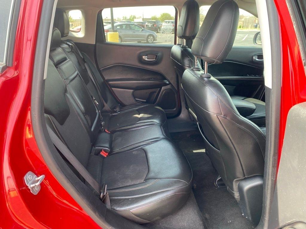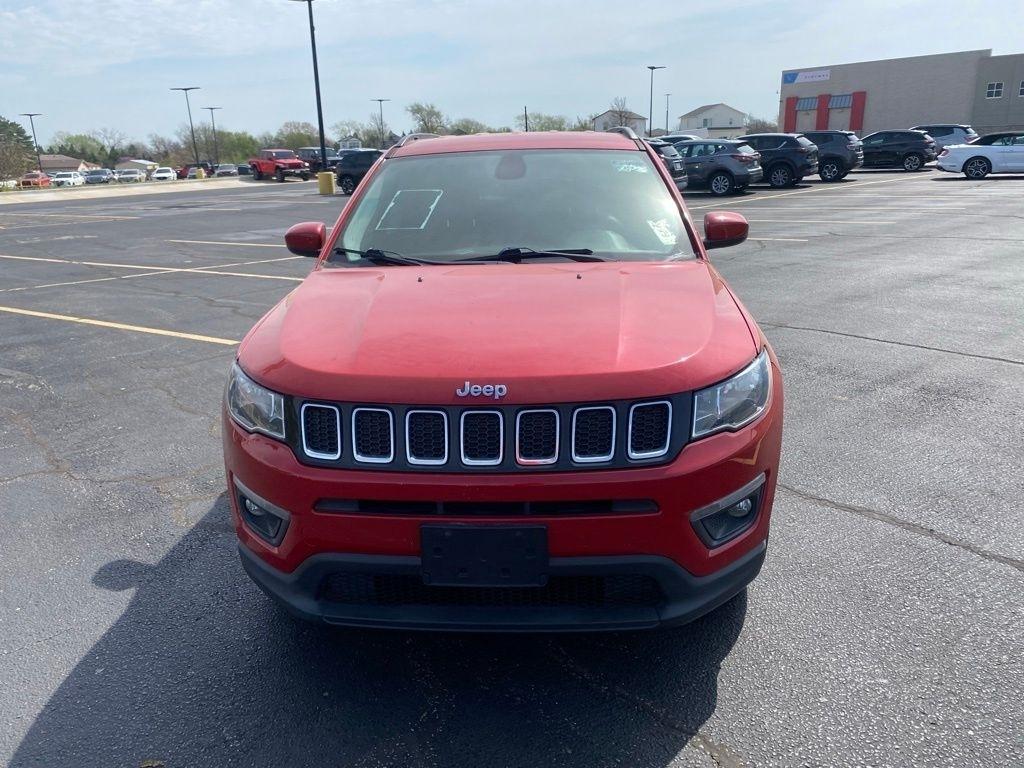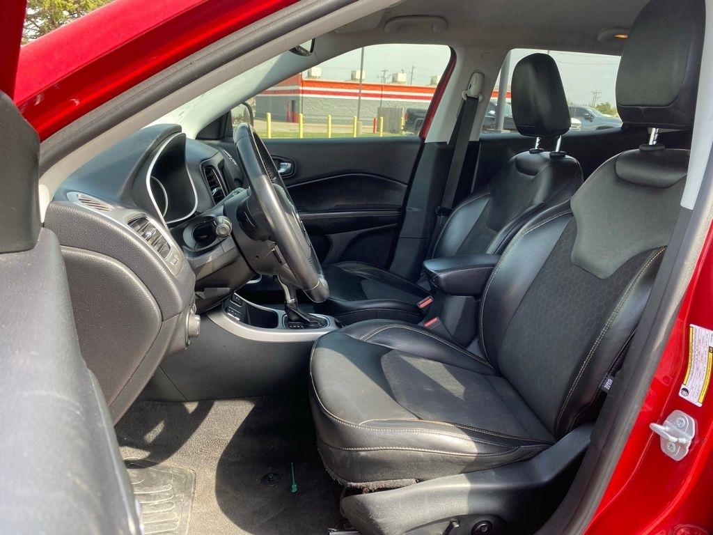 THIS VEHICLE IS EQUIPPED WITH THE FOLLOWING FEATURES AND OPTIONS Popular Equipment Group (115V Auxiliary Power Outlet, 4-Way Power Lumbar Adjust, 7.0" Touch Screen Display, Auto-Dimming Rear-View Mirror, Cluster 7.0" Color Driver Info Display, Power 8-Way Driver/Manual 6-Way Passenger Seats, and Remote Start System), Quick Order Package 28J, 3.502 Axle Ratio, 4-Wheel Disc Brakes, 6 Speakers, ABS brakes, Air Conditioning, Alloy wheels, AM/FM radio, Anti-whiplash front head restraints, Brake assist, Bumpers: body-color, Compass, Delay-off headlights, Driver door bin, Driver vanity mirror, Dual front impact airbags, Dual front side impact airbags, Electronic Stability Control, Four wheel independent suspension, Front anti-roll bar, Front Bucket Seats, Front Center Armrest w/Storage, Front fog lights, Front reading lights, Fully automatic headlights, Heated door mirrors, Illuminated entry, Knee airbag, Leather Shift Knob, Low tire pressure warning, Occupant sensing airbag, Outside temperature display, Overhead airbag, Overhead console, Panic alarm, ParkView Rear Back-Up Camera, Passenger door bin, Passenger vanity mirror, Power door mirrors, Power steering, Power windows, Premium Cloth/Vinyl Bucket Seats, Radio: Uconnect 3 w/5" Display, Radio: Uconnect 4 w/7" Display, Rear anti-roll bar, Rear seat center armrest, Rear window defroster, Rear window wiper, Remote keyless entry, Roof rack: rails only, Speed control, Split folding rear seat, Spoiler, Steering wheel mounted audio controls, Tachometer, Telescoping steering wheel, Tilt steering wheel, Traction control, Trip computer, Variably intermittent wipers, and Wheels: 17" x 7.0" Silver Painted Aluminum. Clean CARFAX. Redline Pearlcoat 2018 Jeep Compass Latitude FWD 6-Speed Aisin Automatic 2.4L I4