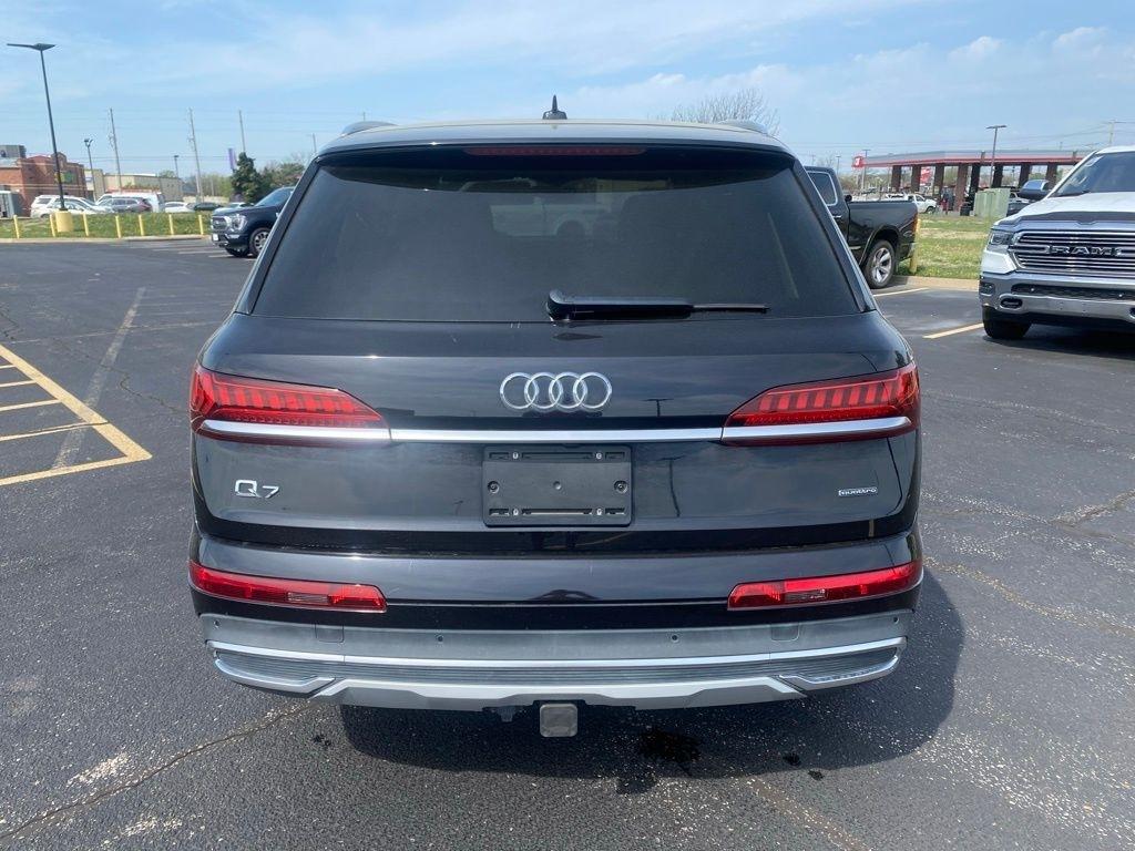 THIS VEHICLE IS EQUIPPED WITH THE FOLLOWING FEATURES AND OPTIONS Ambient Interior Lighting Package, Cold Weather Package (3-Spoke Multifunction Steering Wheel w/Paddles, Black Rubber All-Weather Floor Mats (Set of 4), and Heated Rear Seats), Convenience Package (Audi Phone Box w/Wireless Charging, Audi Side Assist w/Pre Sense Rear, and Heated Auto-Dimming Power Folding Exterior Mirrors), Premium Plus Package (3D Bose Surround Sound System, Illuminated Door Sills, Topview Camera System, and Wheels: 20" 5-Spoke Turbine-Design), Towing Package (Tow Hitch Receiver), Warm Weather Package (4-Zone Automatic Climate Control, Driver & Passenger Front Seats w/Ventilation, and Rear Door/Side Windows & Tailgate Sunshades), 10 Speakers, 3.204 Axle Ratio, 3rd row seats: bench, 4-Wheel Disc Brakes, ABS brakes, Air Conditioning, Alloy wheels, AM/FM radio: SiriusXM, Audi smartphone interface (Apple CarPlay/Android Auto), Auto High-beam Headlights, Auto-dimming Rear-View mirror, Automatic temperature control, Brake assist, Bumpers: body-color, Compass, Delay-off headlights, Driver door bin, Driver vanity mirror, Dual front impact airbags, Dual front side impact airbags, Electronic Stability Control, Emergency communication system: Audi connect CARE, PRIME & PLUS, Exterior Parking Camera Rear, Four wheel independent suspension, Front & Rear Doors Audi Beam-Rings, Front anti-roll bar, Front Bucket Seats, Front Center Armrest, Front dual zone A/C, Front fog lights, Front reading lights, Fully automatic headlights, Garage door transmitter: HomeLink, Genuine wood door panel insert, Heated door mirrors, Heated Front Bucket Seats, Heated front seats, Illuminated entry, Leather Seating Surfaces, Leather Shift Knob, Leather steering wheel, Low tire pressure warning, Memory seat, Navigation system: Audi MMI Navigation plus with Touch Response, Occupant sensing airbag, Outside temperature display, Overhead airbag, Overhead console, Panic alarm, Passenger door bin, Passenger vanity mirror, Power door mirrors, Power driver seat, Power Liftgate, Power moonroof, Power passenger seat, Power steering, Power windows, Privacy Trunk Cover, Radio data system, Radio: Audi Sound System, Rain sensing wipers, Rear air conditioning, Rear anti-roll bar, Rear fog lights, Rear reading lights, Rear seat center armrest, Rear window defroster, Rear window wiper, Reclining 3rd row seat, Remote keyless entry, Roof rack: rails only, Security system, Speed control, Speed-sensing steering, Split folding rear seat, Spoiler, Steering wheel memory, Steering wheel mounted audio controls, Tachometer, Telescoping steering wheel, Tilt steering wheel, Traction control, Trip computer, Turn signal indicator mirrors, Variably intermittent wipers, and Wheels: 19" 5-Arm Star Design. Orca Black Metallic 2020 Audi Q7 55 Premium Plus quattro quattro 8-Speed Automatic with Tiptronic 3.0L TFSI V6 DOHC