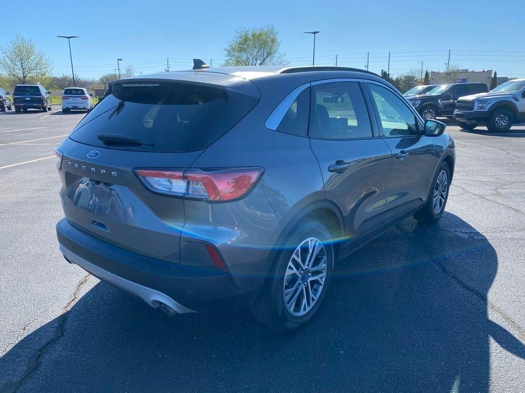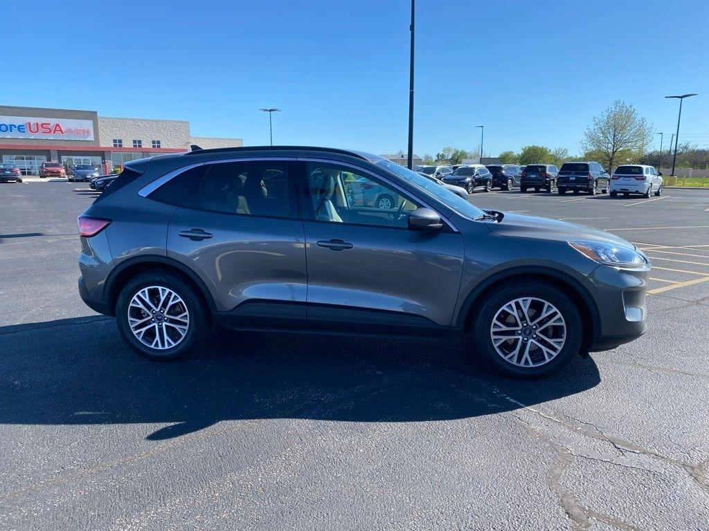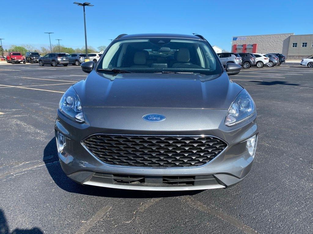 THIS VEHICLE IS EQUIPPED WITH THE FOLLOWING FEATURES AND OPTIONS Equipment Group 301A, 18" Machined-Face Aluminum Wheels, 3.52 Axle Ratio, 4-Wheel Disc Brakes, 6 Speakers, ABS brakes, Air Conditioning, Alloy wheels, AM/FM radio: SiriusXM, AM/FM Stereo, Auto High-beam Headlights, Automatic temperature control, Brake assist, Bumpers: body-color, Compass, Delay-off headlights, Driver door bin, Driver vanity mirror, Dual front impact airbags, Dual front side impact airbags, Electronic Stability Control, Emergency communication system: SYNC 3 911 Assist, Exterior Parking Camera Rear, FordPass Connect, Four wheel independent suspension, Front anti-roll bar, Front Bucket Seats, Front Center Armrest, Front dual zone A/C, Front fog lights, Front License Plate Bracket, Front reading lights, Fully automatic headlights, Heated ActiveX Front Sport Contour Bucket Seats, Heated door mirrors, Heated front seats, Heated steering wheel, Illuminated entry, Knee airbag, Low tire pressure warning, Occupant sensing airbag, Outside temperature display, Overhead airbag, Overhead console, Panic alarm, Passenger door bin, Passenger vanity mirror, Power door mirrors, Power driver seat, Power Liftgate, Power steering, Power windows, Radio data system, Rear anti-roll bar, Rear reading lights, Rear seat center armrest, Rear window defroster, Rear window wiper, Remote keyless entry, Roof rack: rails only, Speed control, Speed-sensing steering, Speed-Sensitive Wipers, Split folding rear seat, Spoiler, Steering wheel mounted audio controls, SYNC 3 Communications & Entertainment System, Tachometer, Telescoping steering wheel, Tilt steering wheel, Traction control, Trip computer, and Variably intermittent wipers. Gray Metallic 2021 Ford Escape SEL FWD 8-Speed Automatic 1.5L EcoBoost